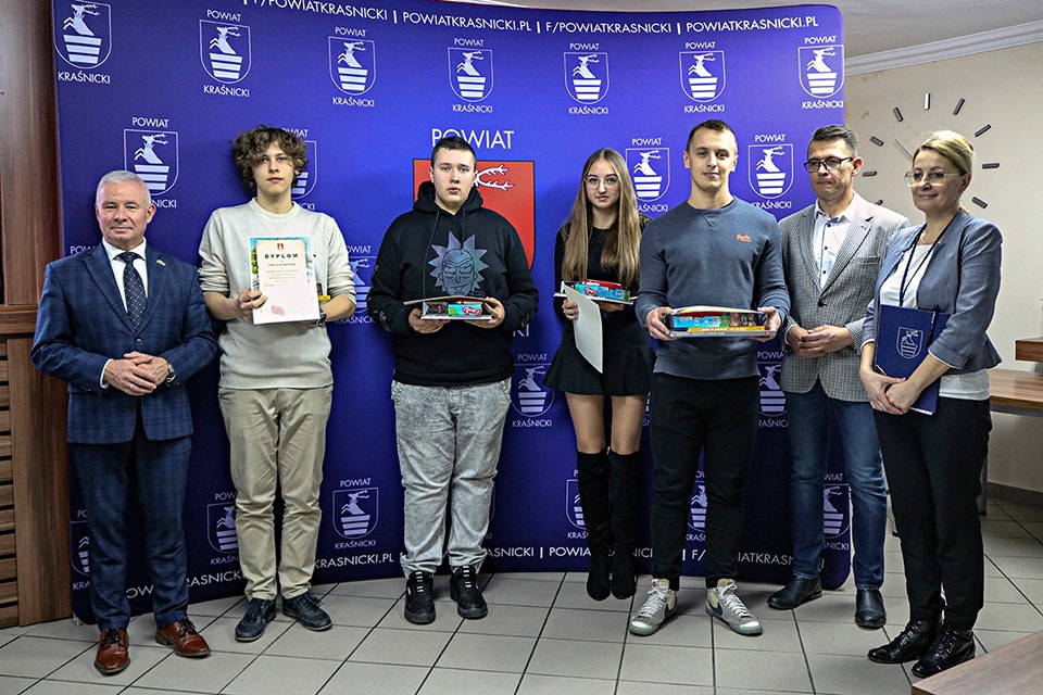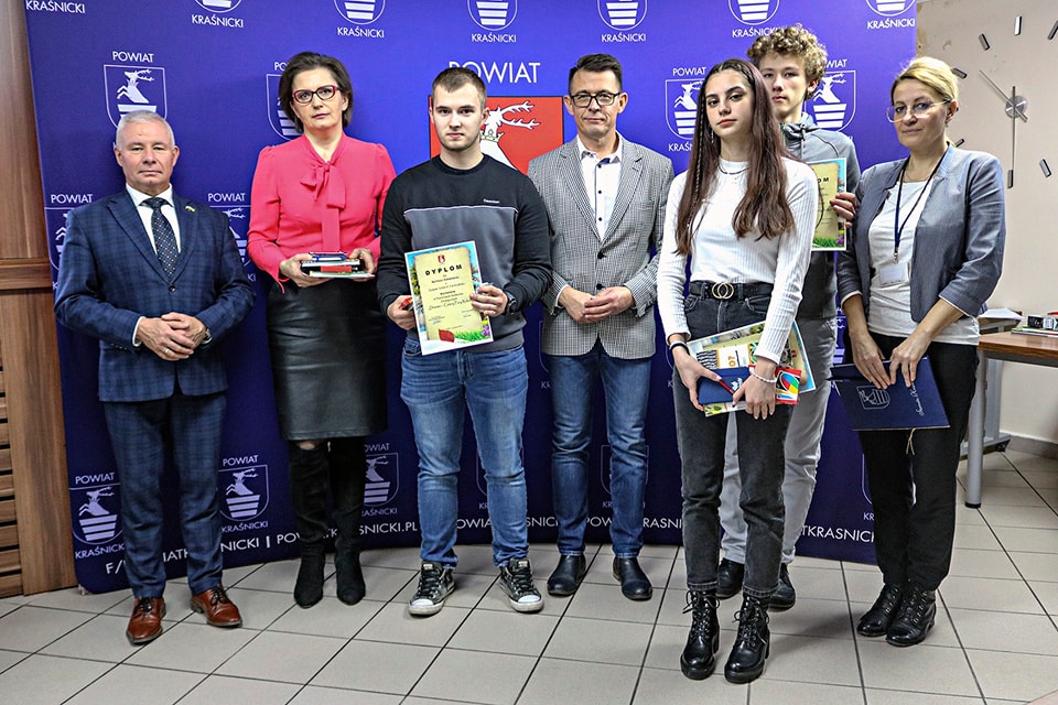 Wszyscy uczestnicy konkursu odebrali nagrody ufundowane przez powiat kraśnicki.