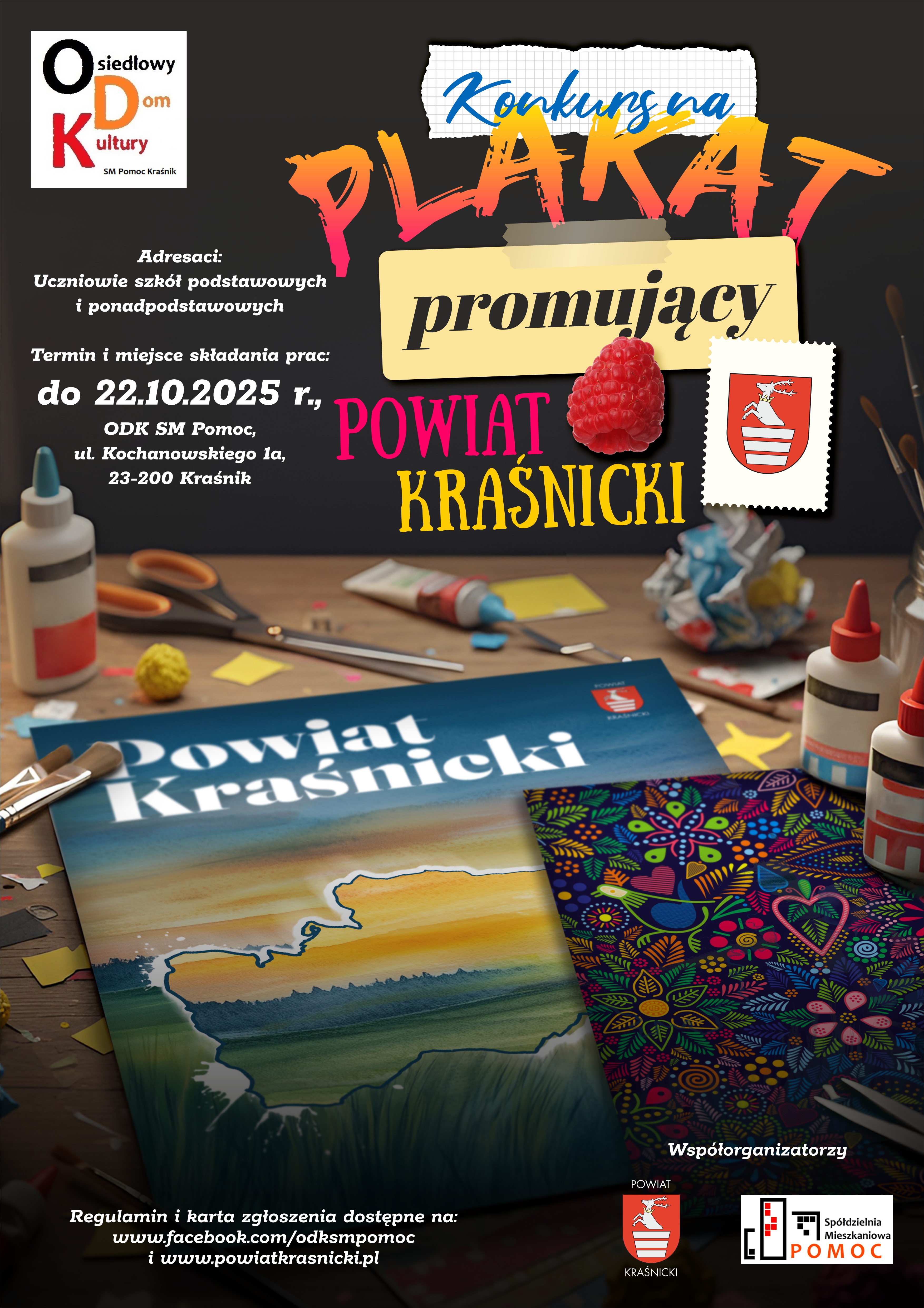 Osiedlowy Dom Kultury Spółdzielni Mieszkaniowej „Pomoc” oraz Starostwo Powiatowe w Kraśniku serdecznie zapraszają do udziału w konkursie. Szukamy kreatywnych i pełnych wyobraźni plakatów!