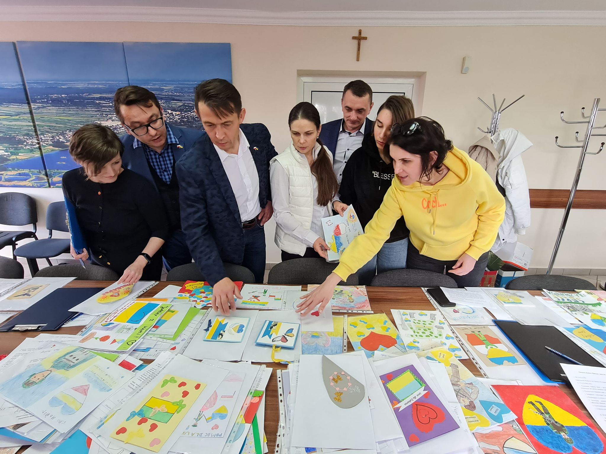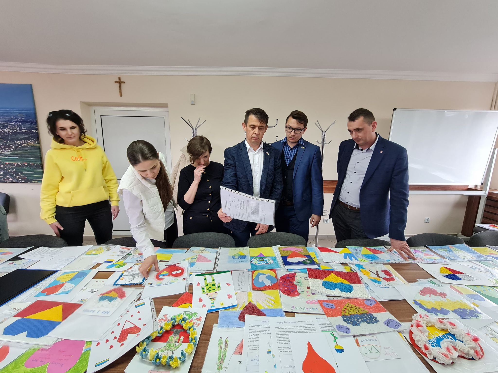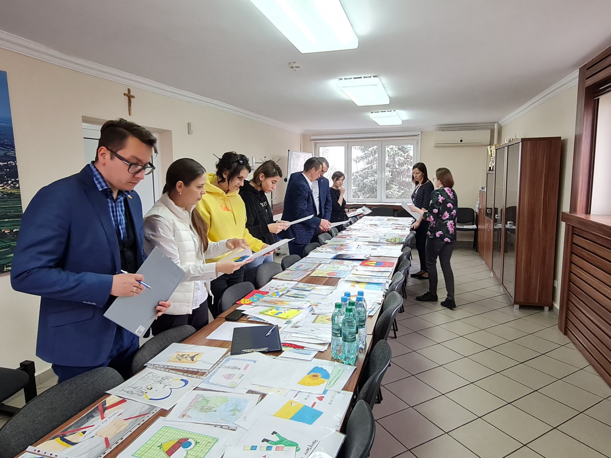 Komisja konkursowa w składzie: Wicestarosta Kraśnicki Paweł Kudrel, Przewodniczący Rady Powiatu Kraśnickiego Jacek Dubiel, Sekretarz Powiatu Łukasz Skokowski, Sekretarz Miasta Sławuta z Ukrainy Svitlana Fedorchuk i pracownik starostwa Agnieszka Gremlas, wybrała najciekawsze prace w kategoriach konkursowych.