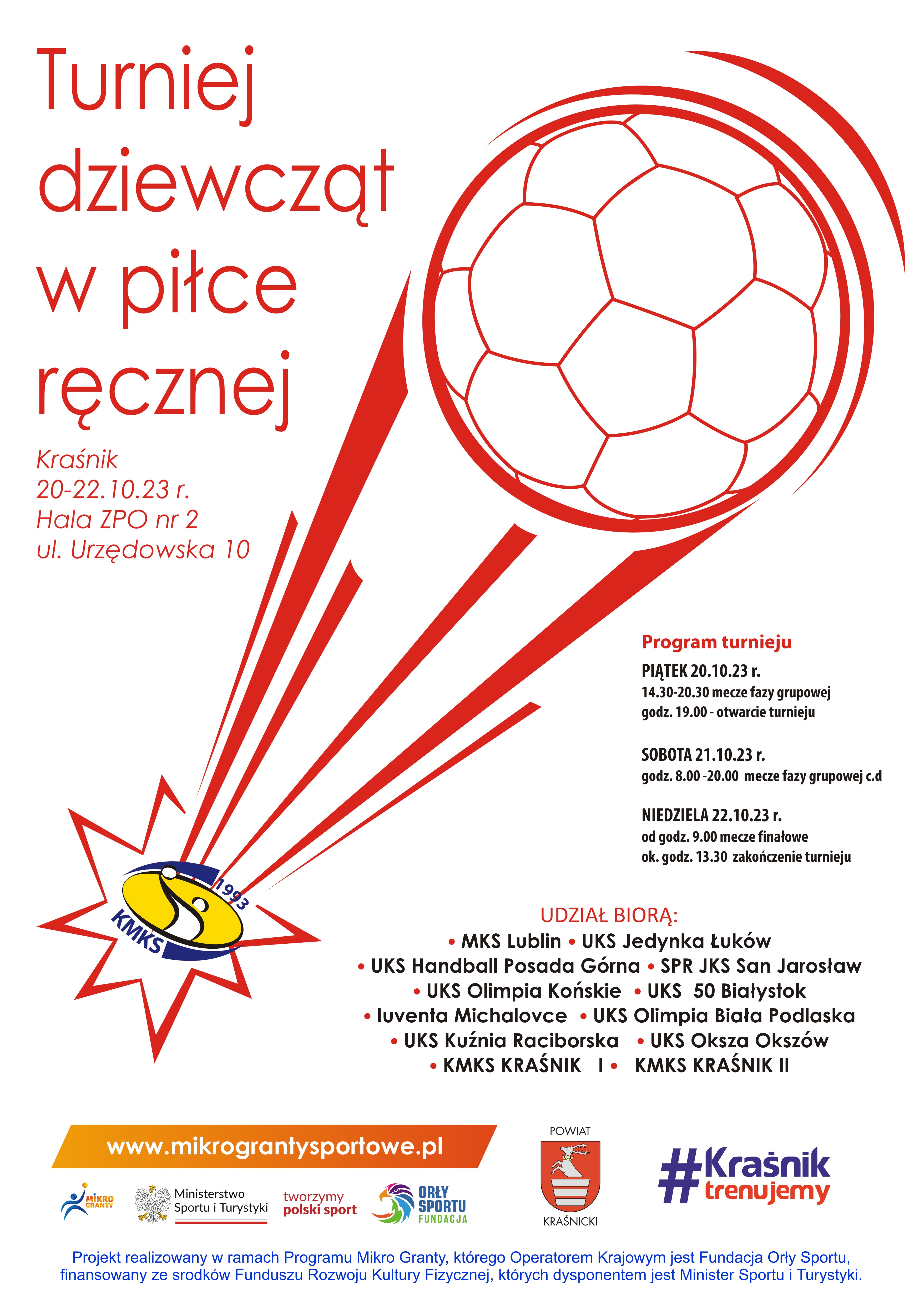 Oprócz dwóch drużyn, jakie wystawi organizator turnieju czyli Kraśnicki Międzyszkolny Klub Sportowy w Kraśniku, w zawodach zagrają także zawodniczki: MKS Lublin, UKS Jedynka Łuków, UKS Handball Posada Górna, SPR JKS San Jarosław, UKS Olimpia Końskie, UKS 50 Białystok, Iuventa Michalovce, UKS Olimpia Biała Podlaska, UKS Kuźnia Raciborska, UKS Oksza Okszów.