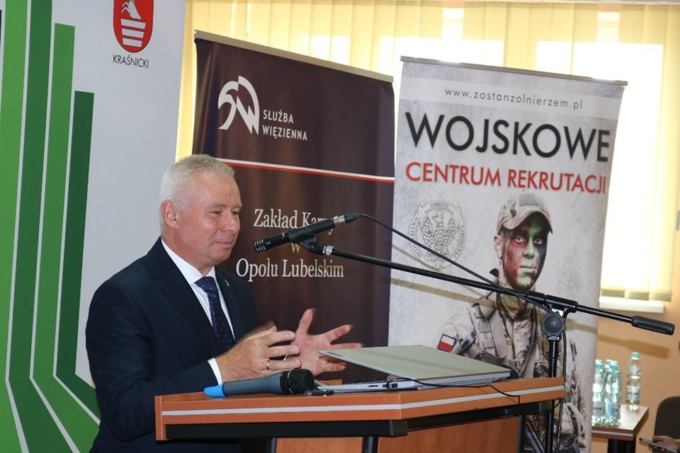Starosta Kraśnicki Andrzej Rolla oraz Przewodniczący Rady Powiatu Kraśnickiego Jacek Dubiel wzięli udział w Mundurowych Targach Pracy, które zorganizował Powiatowy Urząd Pracy w Kraśniku.