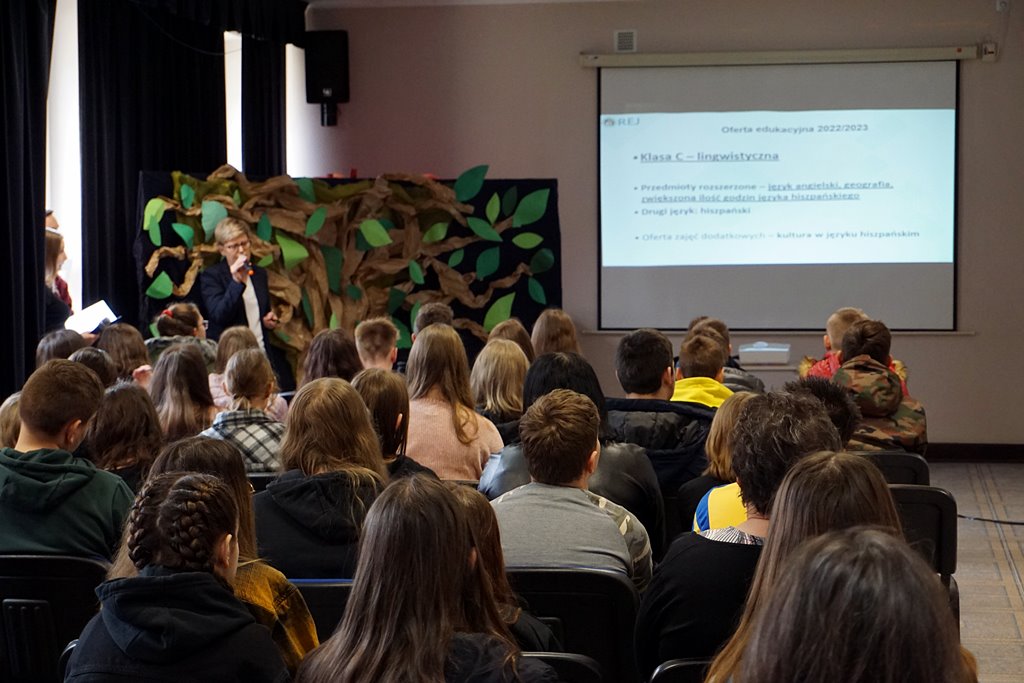 Na auli p. Dyrektor Grażyna Jach przedstawiła ofertę edukacyjną na rok szkolny 2022/2023,
