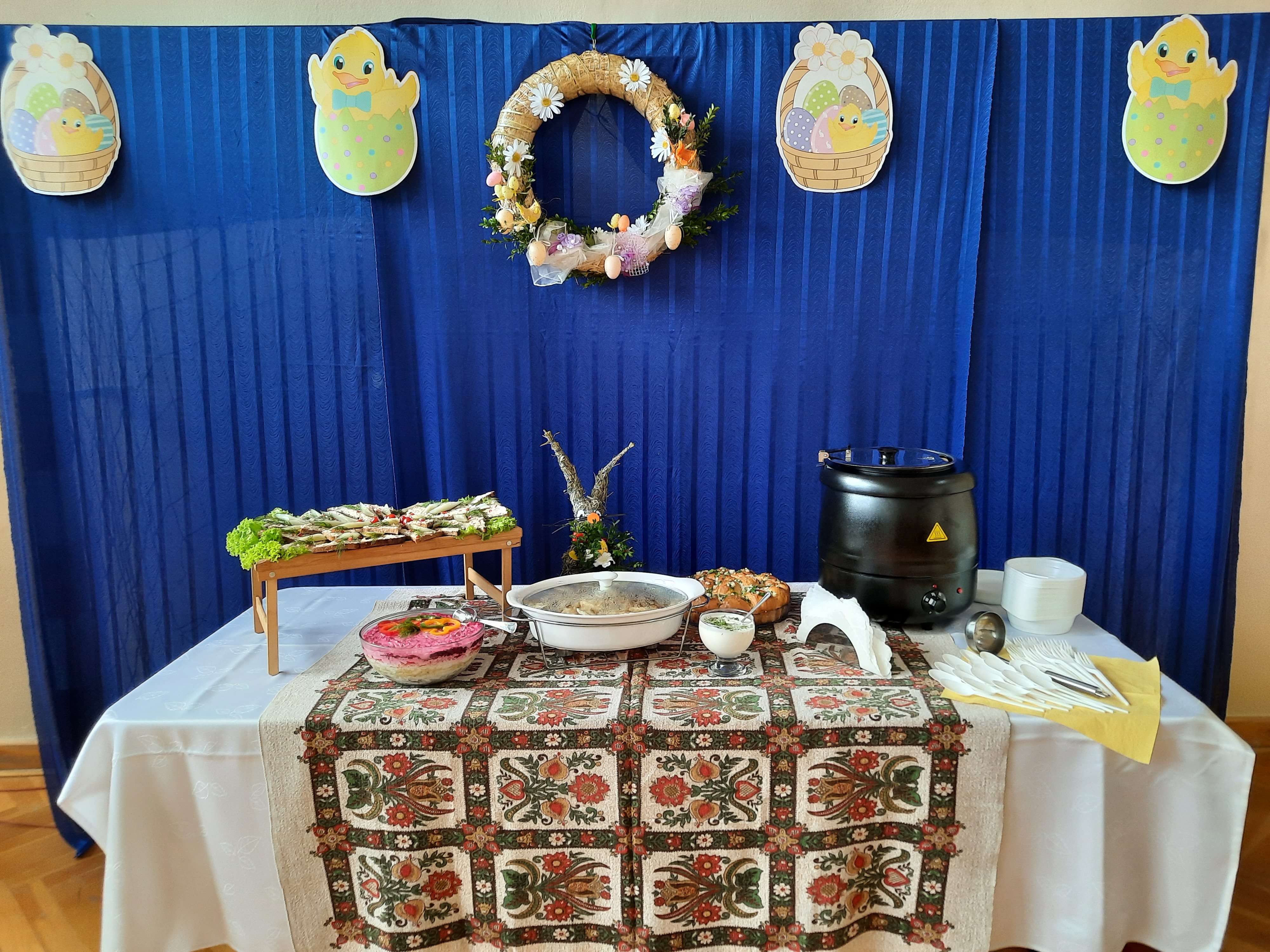 - degustację przekąsek i słodkości przygotowanych przez uczniów oraz potraw kuchni ukraińskiej przygotowanych przez Ukrainkę Janę.