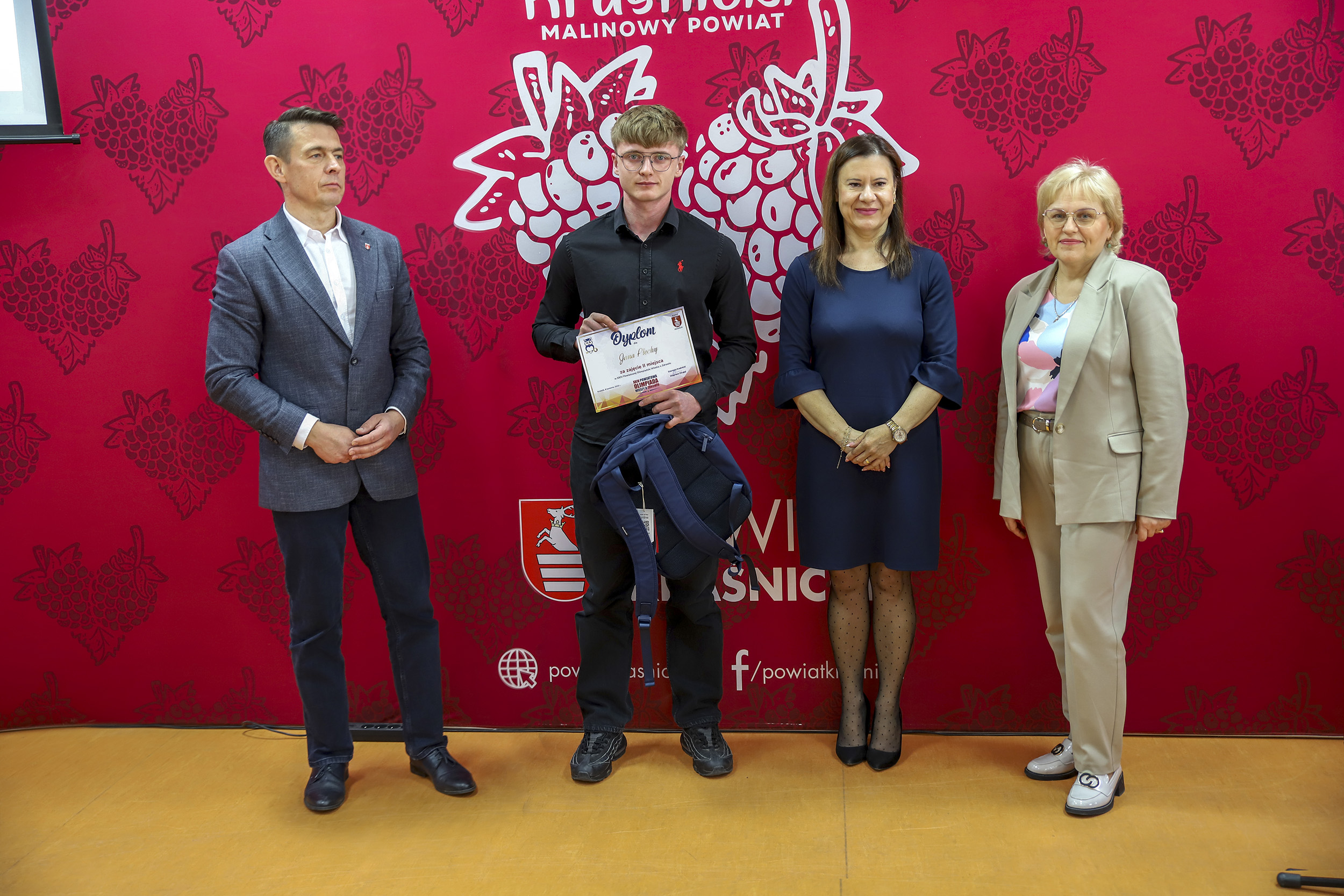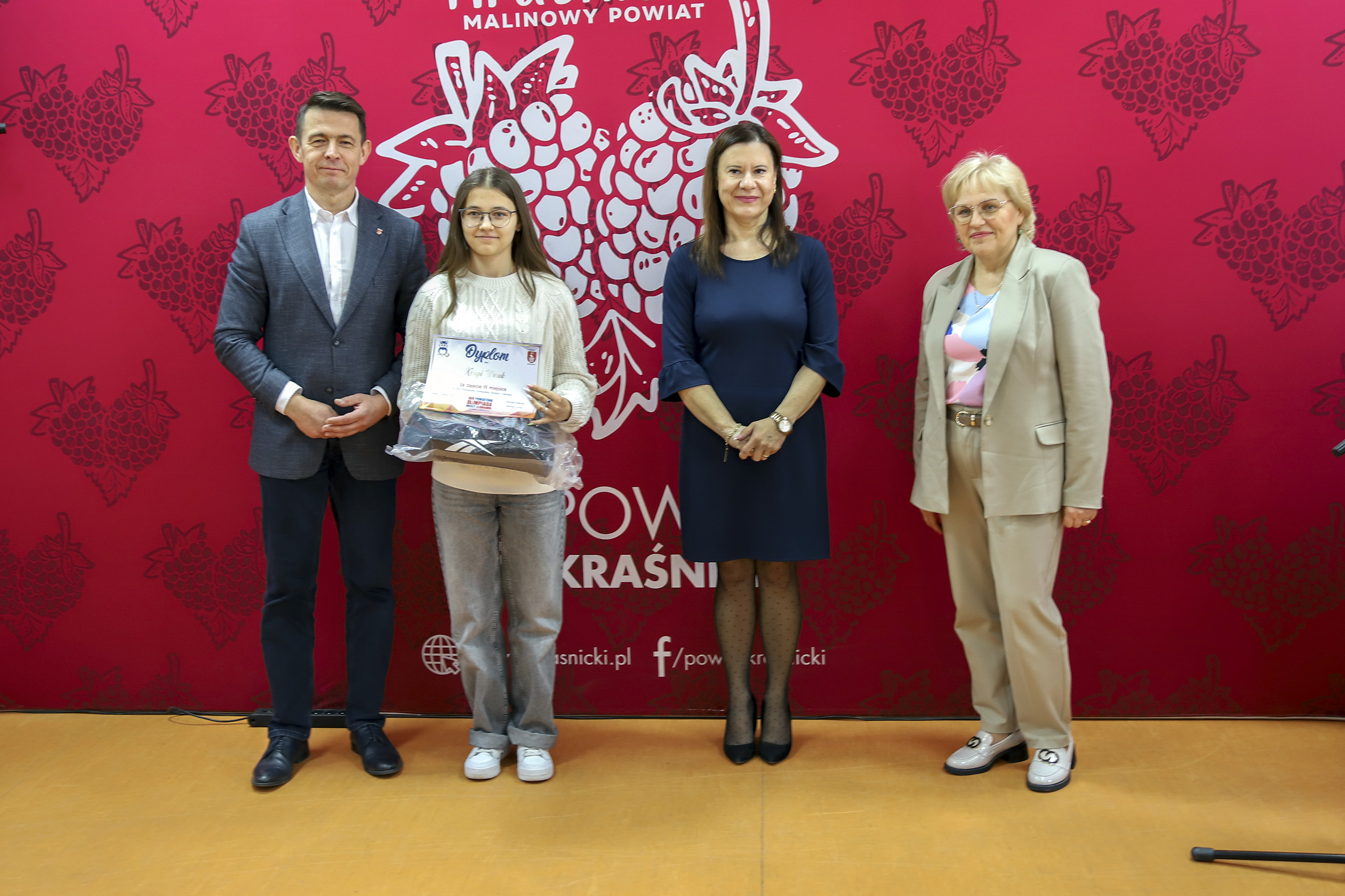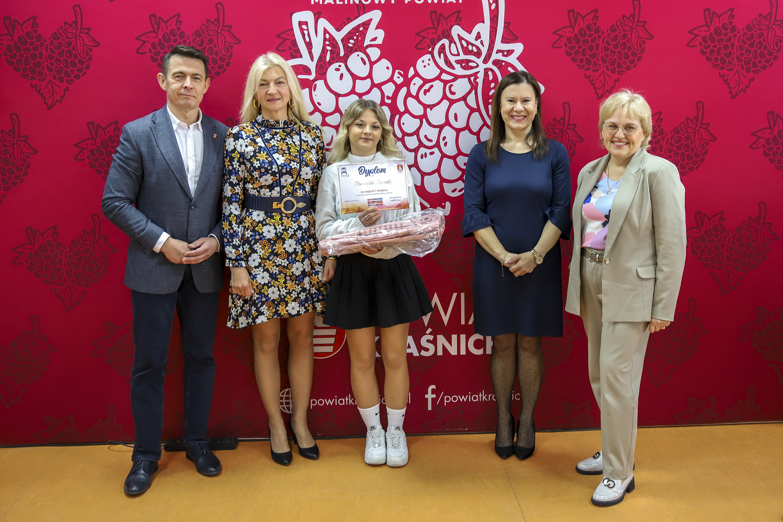 Nagrody ufundowane przez Starostwo Powiatowe w Kraśniku wręczyli: Pan Jacek Dubiel Przewodniczący Rady Powiatu w Kraśniku; Pani Joanna Sarzyńska Państwowy Powiatowy Inspektor Sanitarny w Kraśniku oraz Pani dr Małgorzata Orzeł Dyrektor Regionalnego Centrum Krwiodawstwa i Krwiolecznictwa w Lublinie.