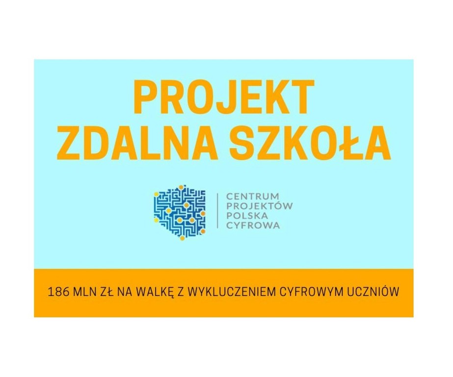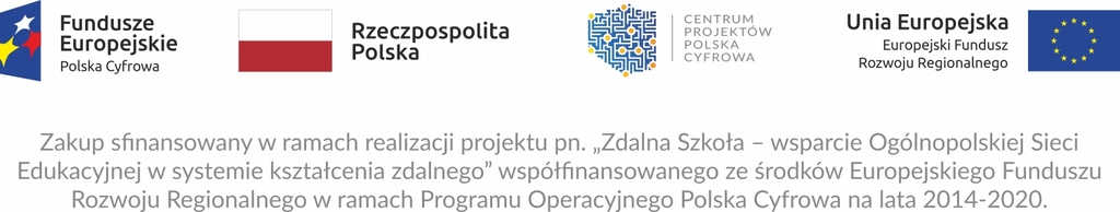 Chcąc zapewnić naszym uczniom niezbędny sprzęt, Starostwo Powiatowe w Kraśniku złożyło wniosek o dofinansowanie w ramach ogłoszonego przez Centrum Polskich Projektów Cyfrowych programu pn. „Zdalna Szkoła”– wsparcie Ogólnopolskiej Sieci Edukacyjnej w systemie kształcenia zdalnego Oś I Powszechny dostęp do szybkiego Internetu Działanie 1.1 Wyeliminowanie terytorialnych różnic w możliwości dostępu do szerokopasmowego Internetu o wysokich przepustowościach dla szkół i placówek oświatowych z przeznaczeniem na realizację zdalnego nauczania. W ramach tego konkursu kwota przydzielona do dofinansowania dla Powiatu Kraśnickiego to 100 000 złotych.