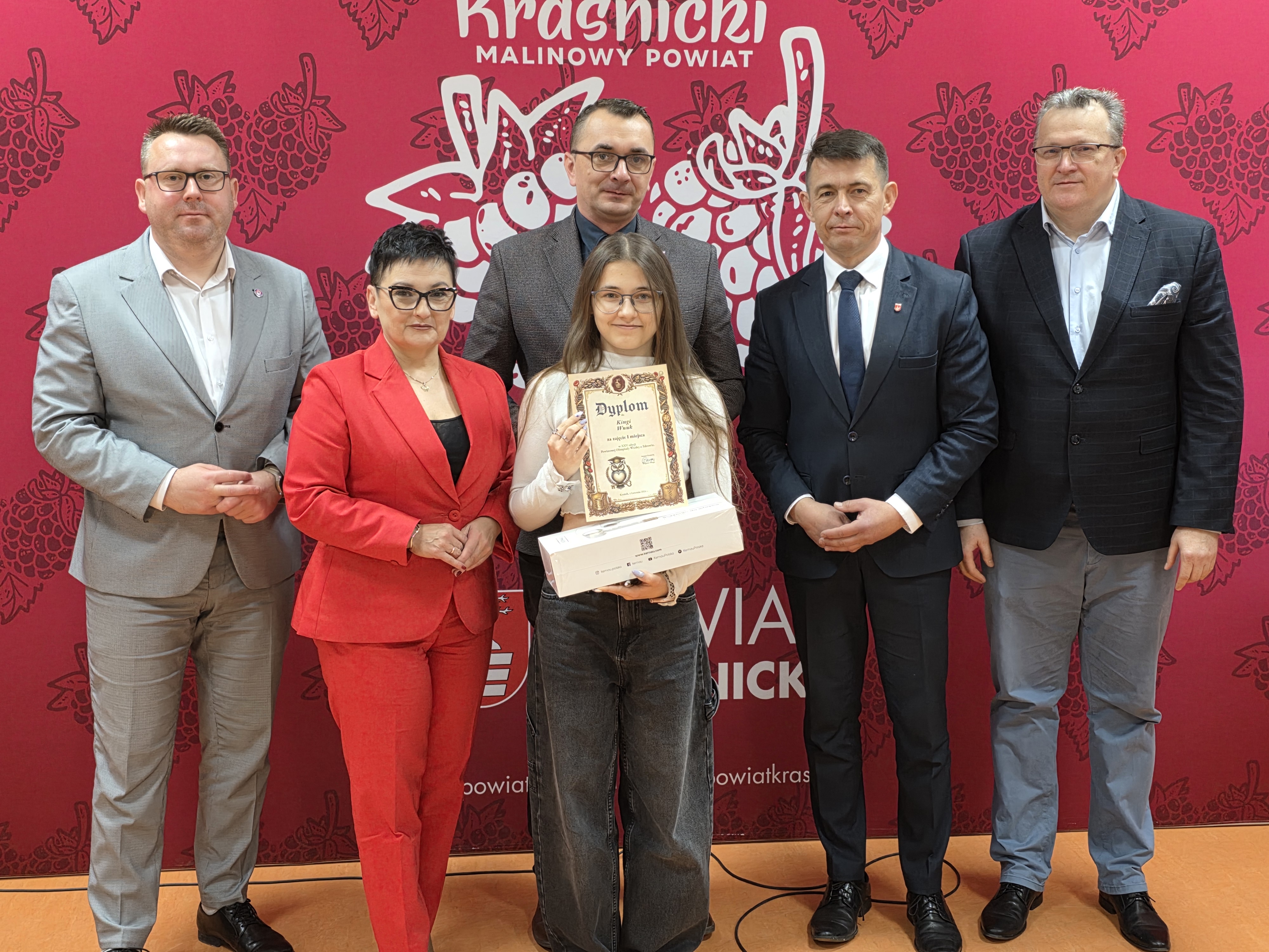 Uroczystego wręczenia nagród ufundowanych przez Starostwo Powiatowe w Kraśniku dokonali Pan Paweł Kudrel Wicestarosta Kraśnicki, Pan Jacek Dubiel Przewodniczący Rady Powiatu
