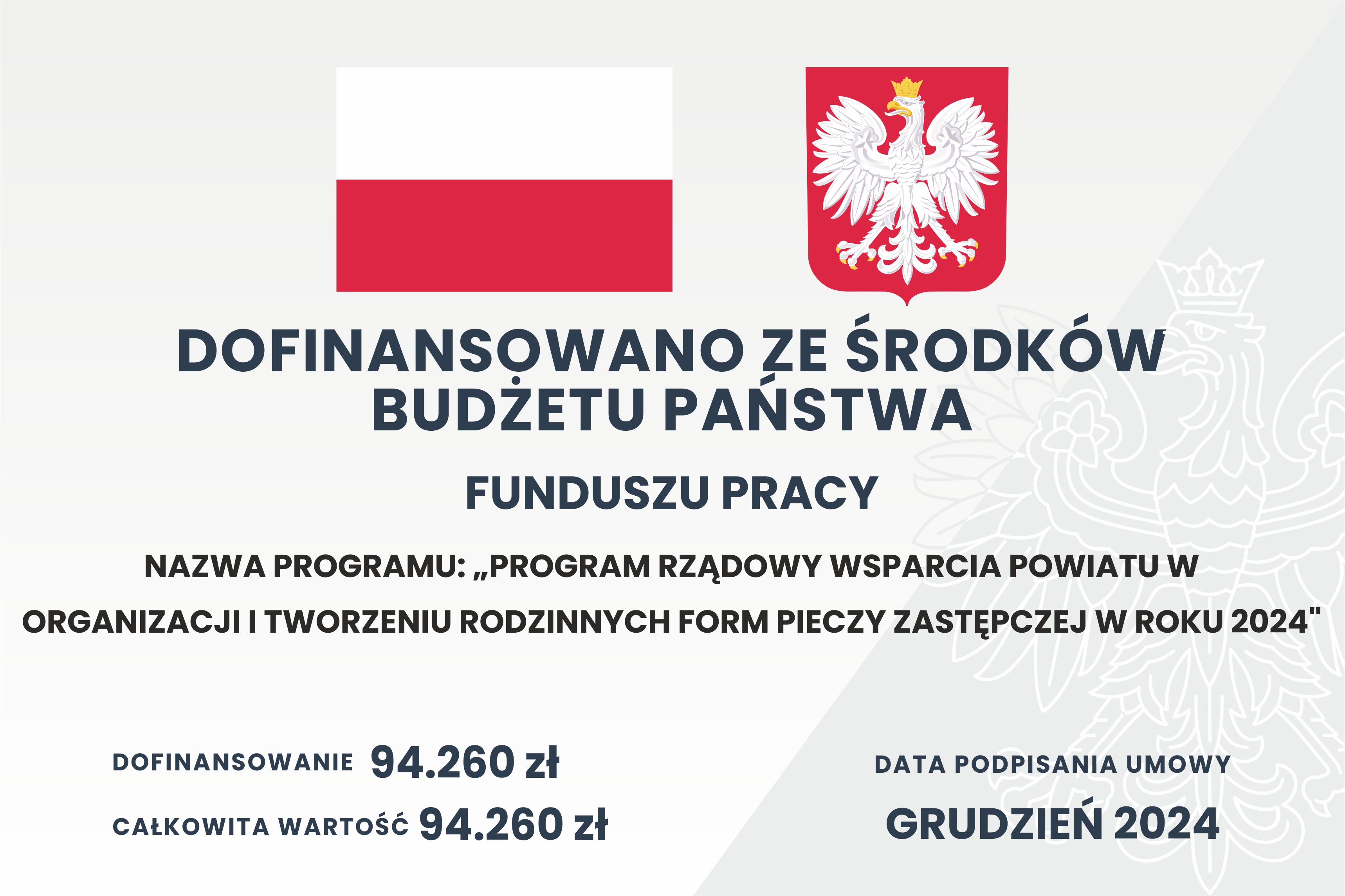 Nazwa programu: PROGRAM RZĄDOWY WSPARCIA POWIATU W ORGANIZACJI I TWORZENIU RODZINNYCH FORM PIECZY ZASTĘPCZEJ W ROKU 2024