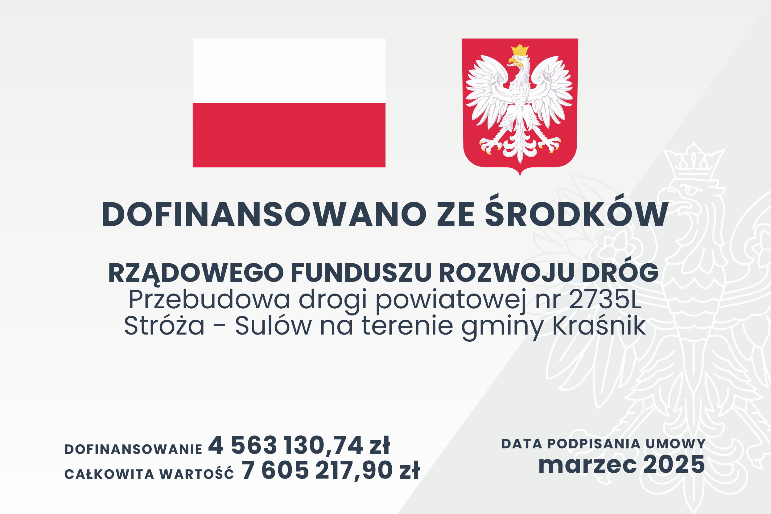 Przebudowa drogi powiatowej nr 2735L Stróża – Sulów na terenie gminy Kraśnik