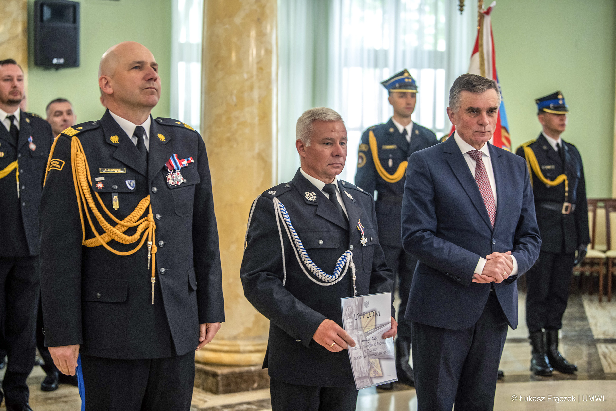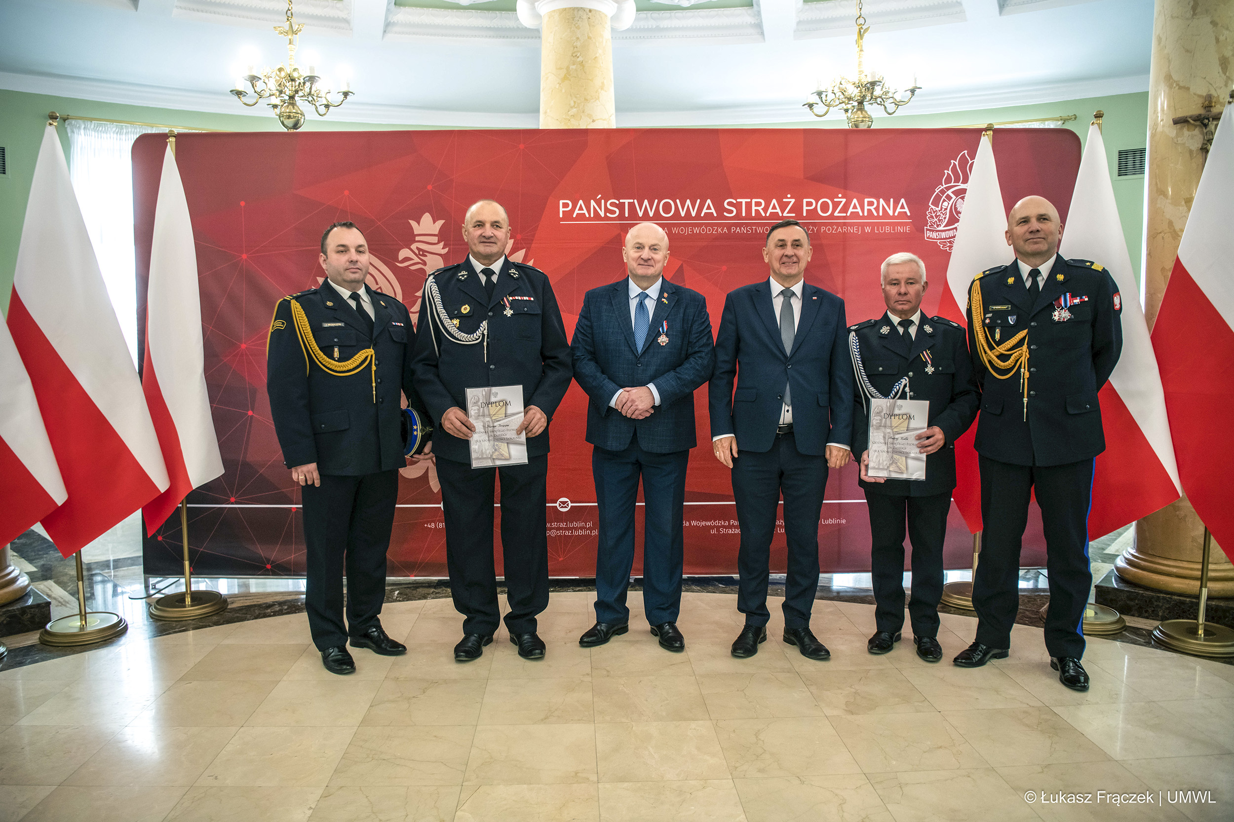 W trakcie uroczystości Wojewoda Lubelski Pan Lech Sprawka w asyście Lubelskiego Komendanta Wojewódzkiego PSP w Lublinie nadbryg. Grzegorza Alinowskiego wręczył odznaczenia państwowe i resortowe.