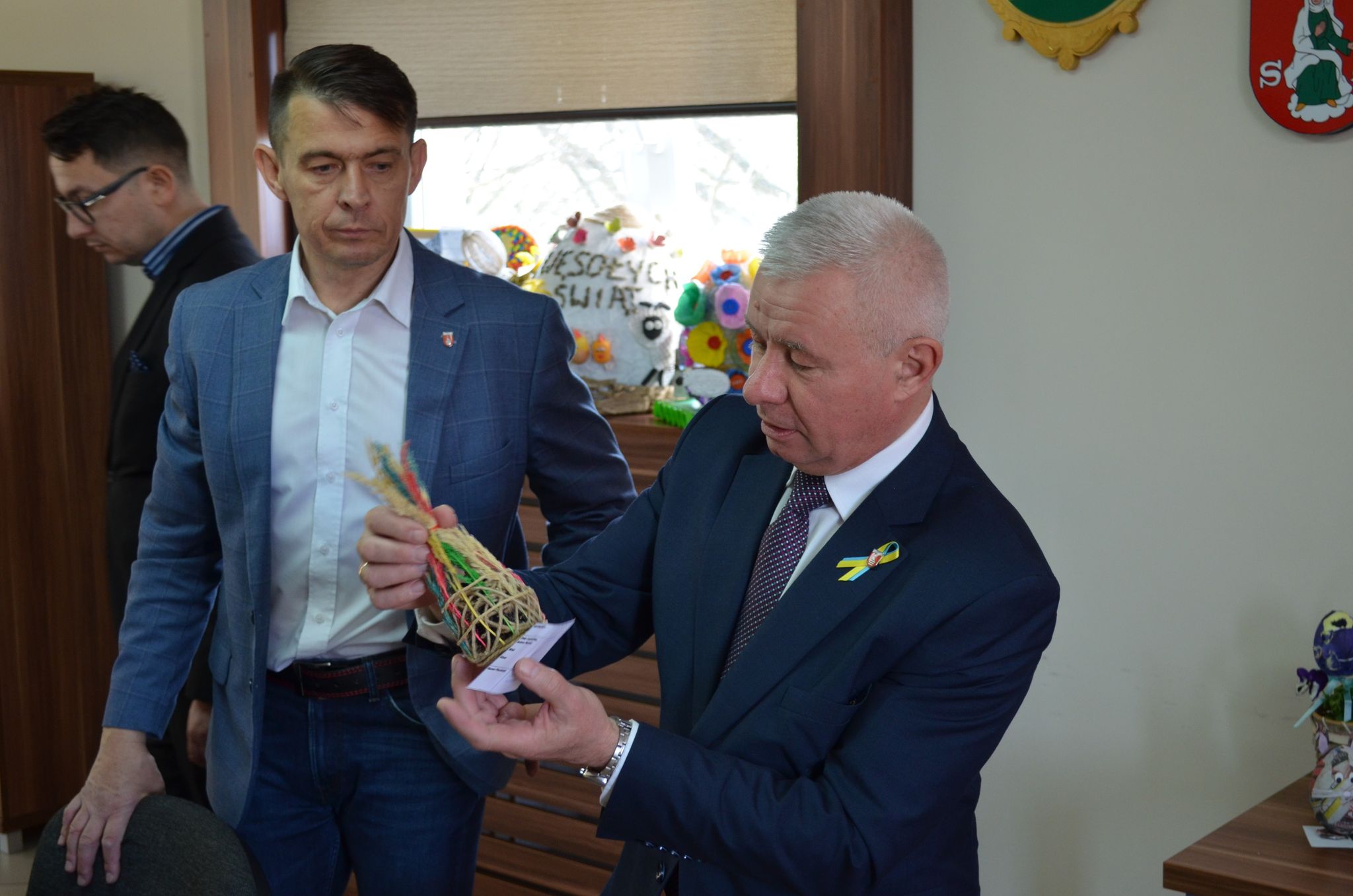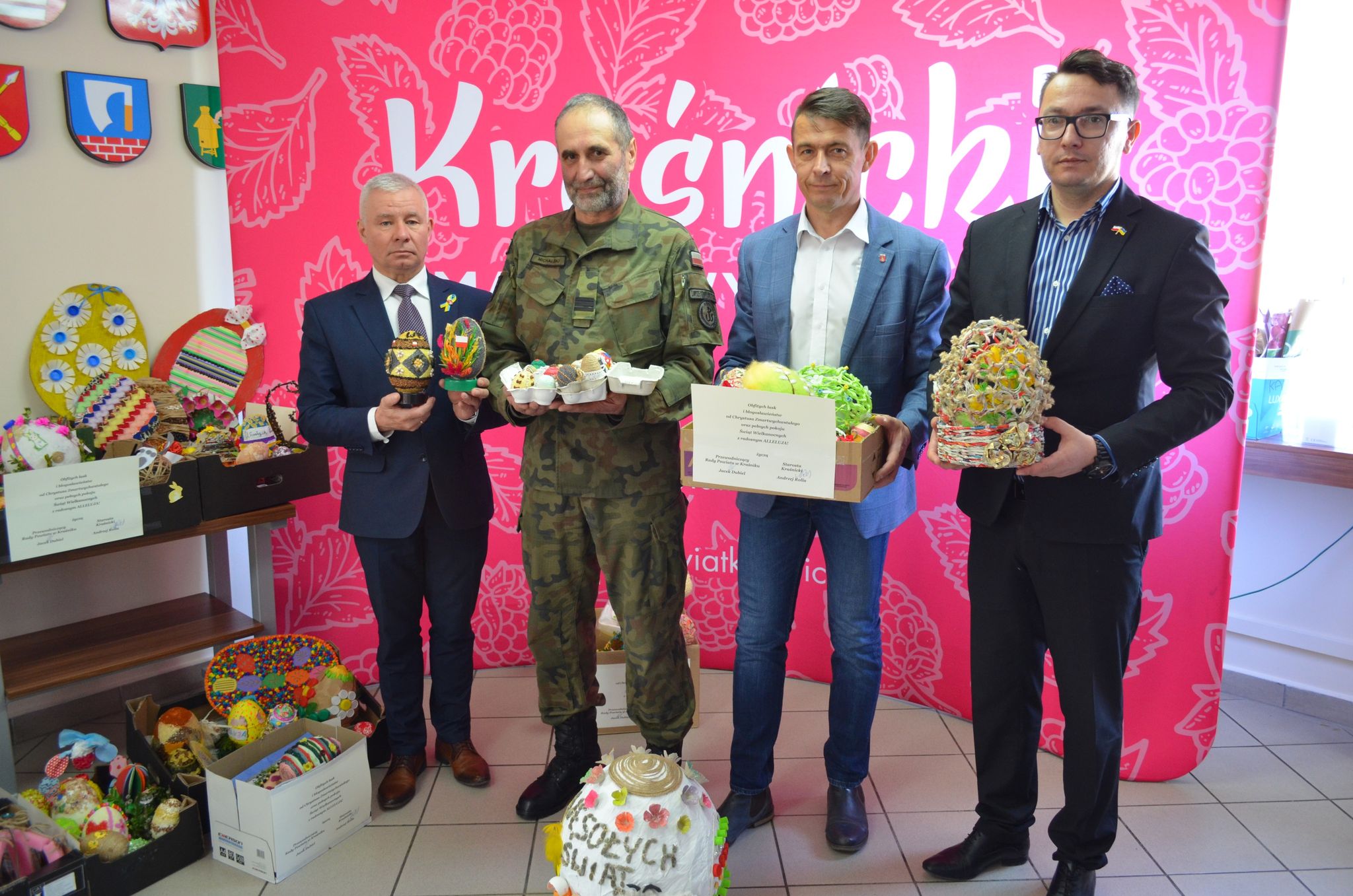 Starosta Kraśnicki Andrzej Rolla, Wicestarosta Kraśnicki Paweł Kudrel oraz Przewodniczący Rady Powiatu Kraśnickiego Jacek Dubiel, Sekretarz Powiatu Łukasz Skokowski, Kierownik Wydziału Promocji Agnieszka Gremlas oraz Kierownik Wydziału Rolnictwa i Ochrony Środowiska Beata Kuś przekazali prace i serdeczne życzenia dla żołnierzy st. kpr. Adamowi Michalskiemu z 22. Batalionu Lekkiej Piechoty z Dęblina.