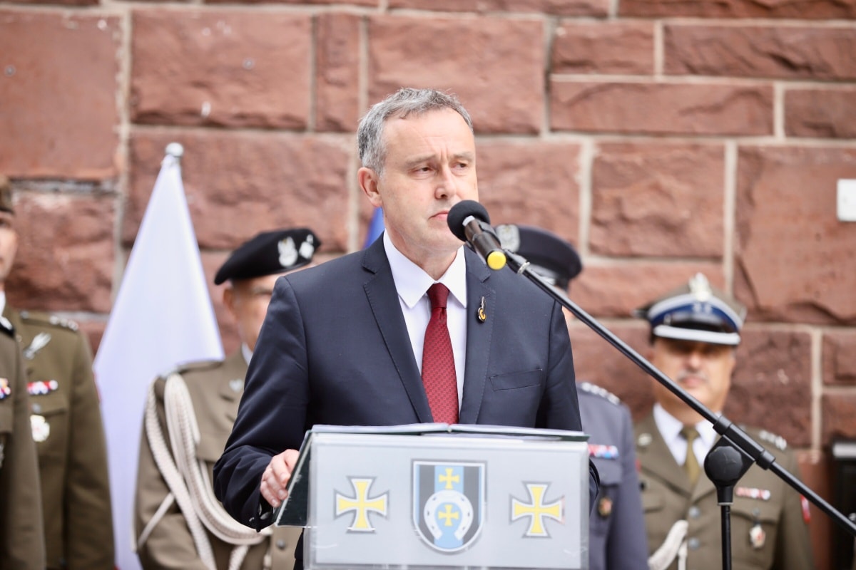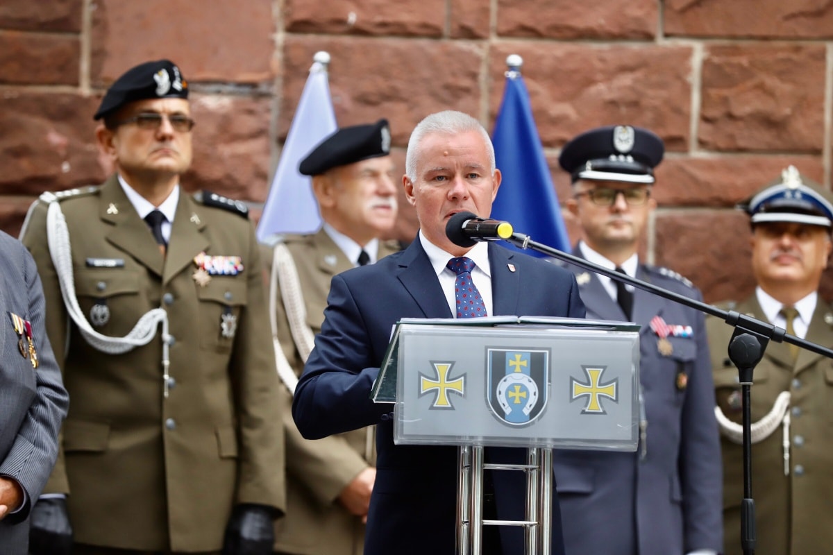 - Od początku stacjonowania (kwiecień 1922 r.) w Kraśniku obecność Białych Ułanów była bardzo zauważalna. Pułk czynnie uczestniczył w życiu miasta, pomagając przy zbieraniu datków, akcjach dobroczynnych czy organizowaniu opraw wojskowych podczas świąt kościelnych i państwowych - mówił Marszałek Województwa Lubelskiego Jarosław Stawiarski, który kontynuował - W kampanii wrześniowej pierwszy bój pułk stoczył 1 września 1939 r. pod Jordanowem i Wysoką, a trzy dni później walczył pod Kasiną Wielką. Od 8 września toczył walki pod Łańcutem, Rzeszowem, Dobrocinem oraz w rejonie Lwowa. 17 września 1939 r., po zakończeniu walk, 10. Brygada Kawalerii dostała rozkaz przemarszu w kierunku południowym. 19 września przekroczyła granicę węgierską, docierając do Komarom, gdzie ułani z Kraśnika zostali internowani. (...) Dziś, po raz kolejny w historii, zapewnienie bezpieczeństwa granic stało się fundamentalną sprawą dla naszego państwa. Liczę, że ta sama troska o dobro wspólne, poczucie odpowiedzialności za drugich, solidarność i sprawiedliwość społeczna będą dla wszystkich Polaków ważnymi wartościami kształtującymi teraźniejszość i przyszłość naszego regionu, jak też całej Rzeczypospolitej.