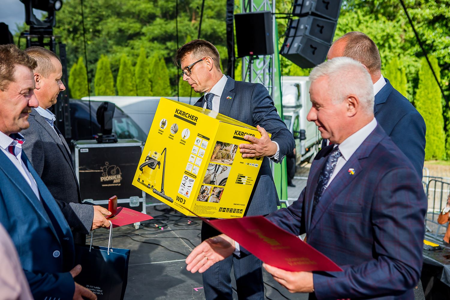 Podczas oficjalnej części Festiwalu starosta Andrzej Rolla, wicestarosta Paweł Kudrel oraz przewodniczący Jacek Dubiel wręczyli Medale Starosty Kraśnickiego dla zasłużonych plantatorów z powiatu oraz nagrody dla laureatów konkursów: kulinarnego na potrawę z malin oraz konkursu na stoisko promocyjne.