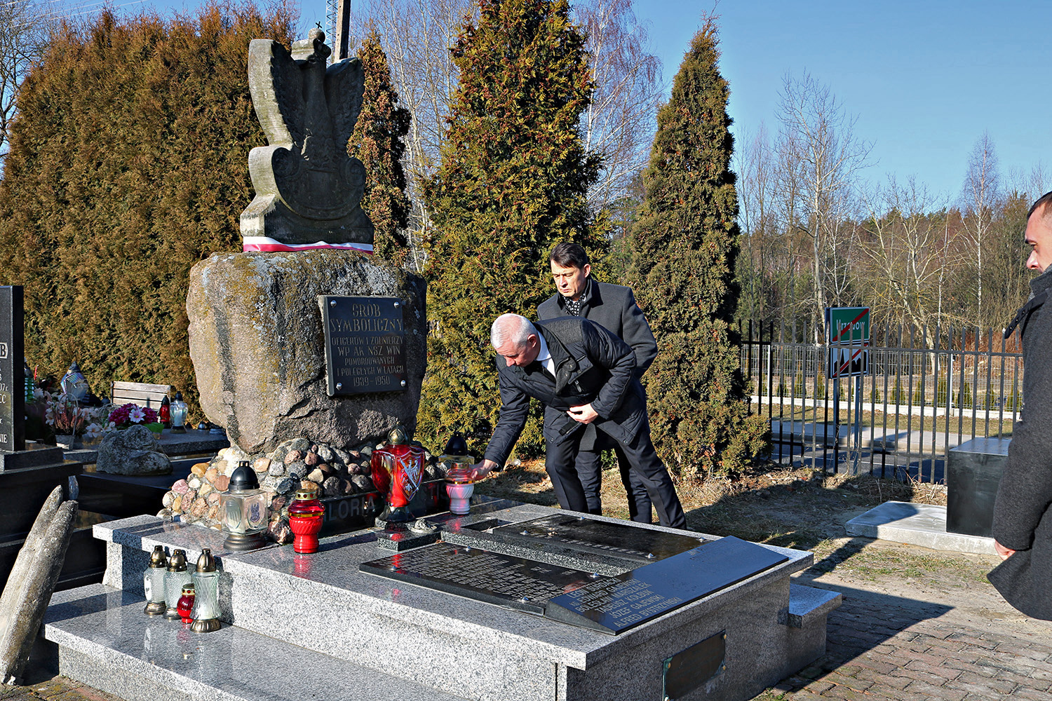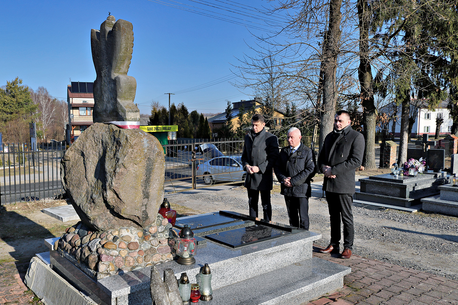 Przed pomnikiem żołnierzy Armii Krajowej w Urzędowie symboliczne znicze złożyła delegacja powiatu kraśnickiego: Starosta Kraśnicki Andrzej Rolla, Wicestarosta Kraśnicki Paweł Kudrel oraz Przewodniczący Rady Powiatu Kraśnickiego Jacek Dubiel.