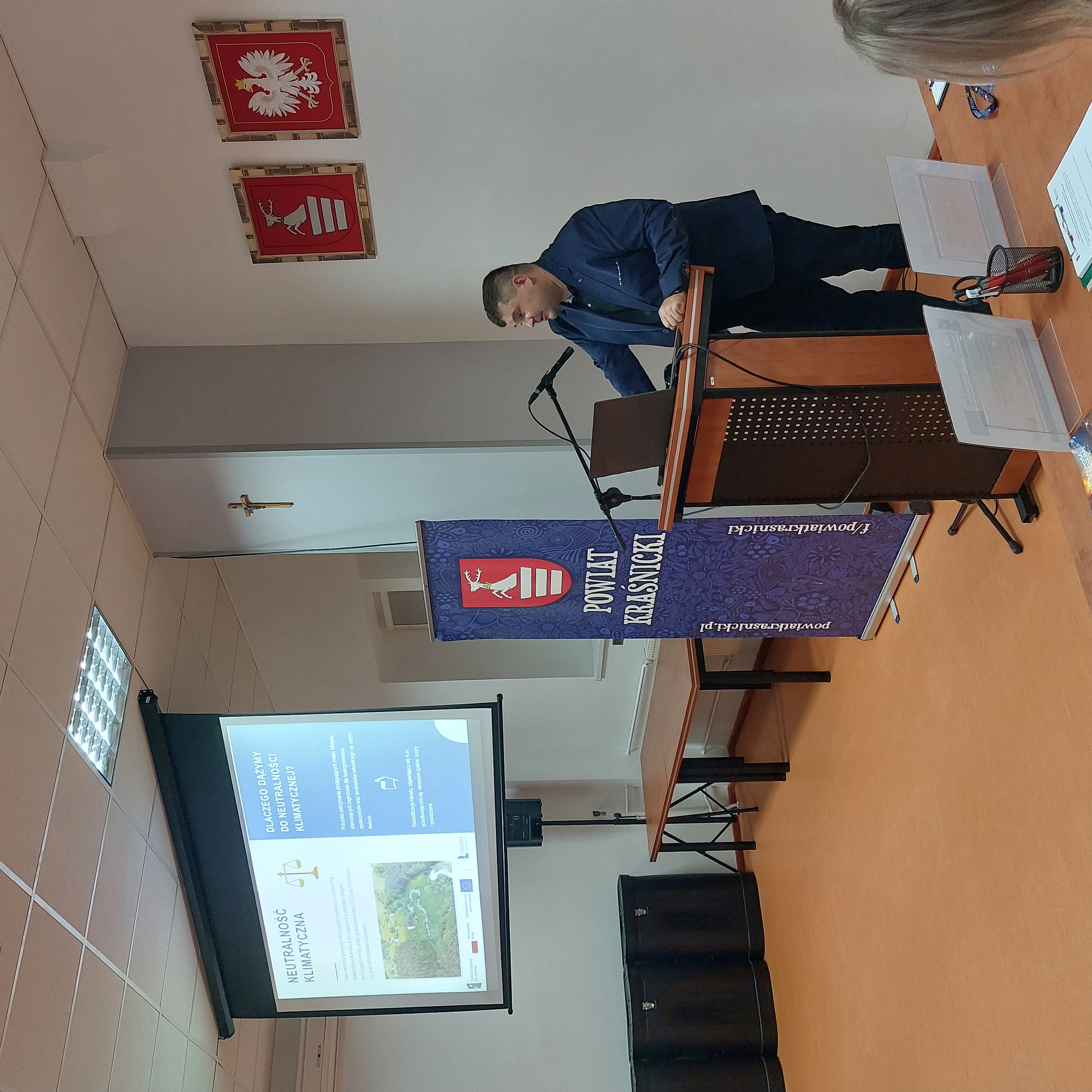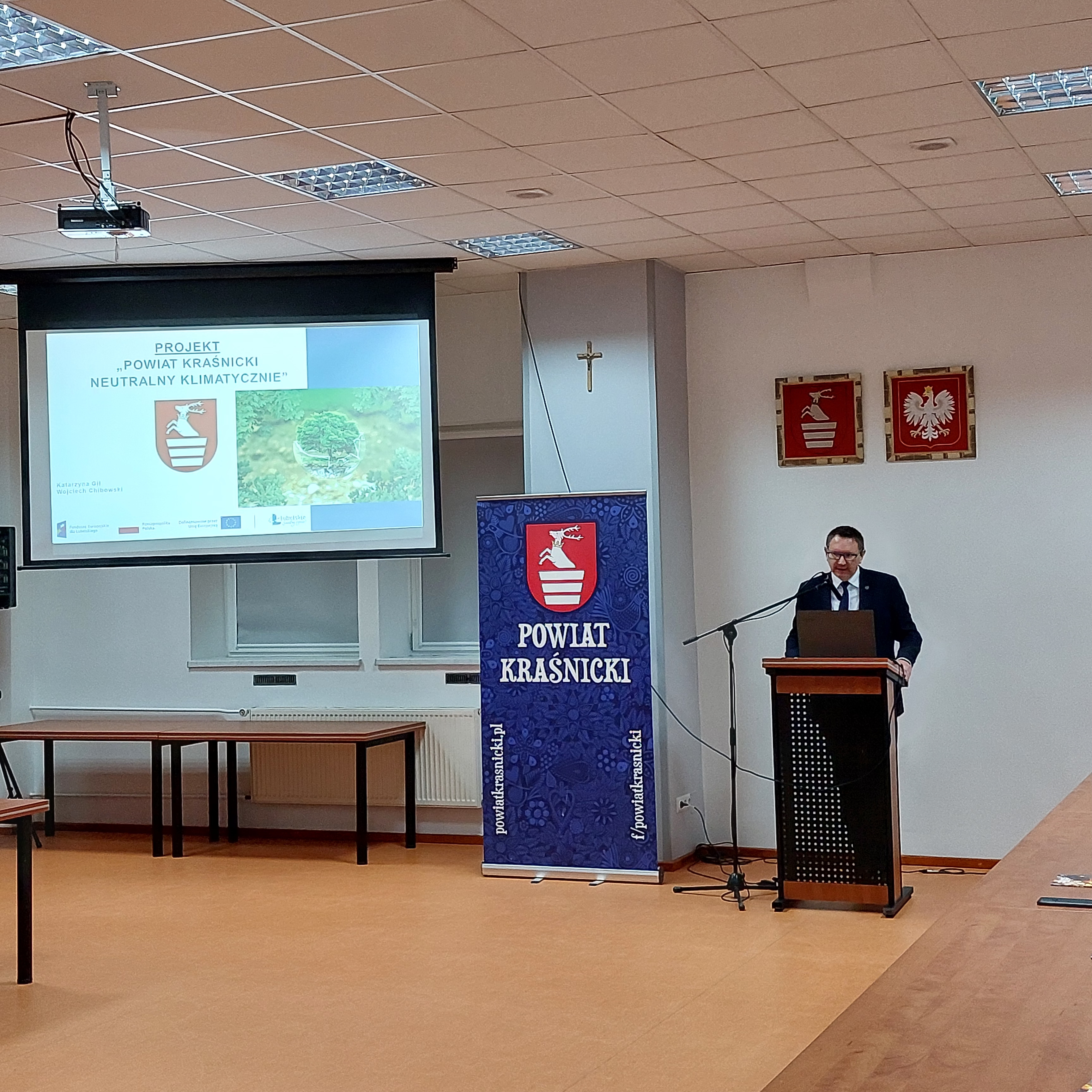 Dnia 4 października 2024 roku w Zespole Szkół Nr 3 w Kraśniku w sali konferencyjnej odbyły się warsztaty dla przedstawicieli jednostek samorządu terytorialnego z terenu Powiatu Kraśnickiego pn. „Neutralność klimatyczna na terenie Powiatu Kraśnickiego”.