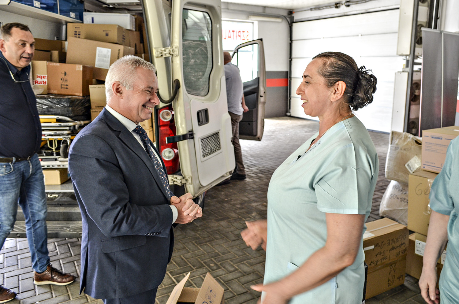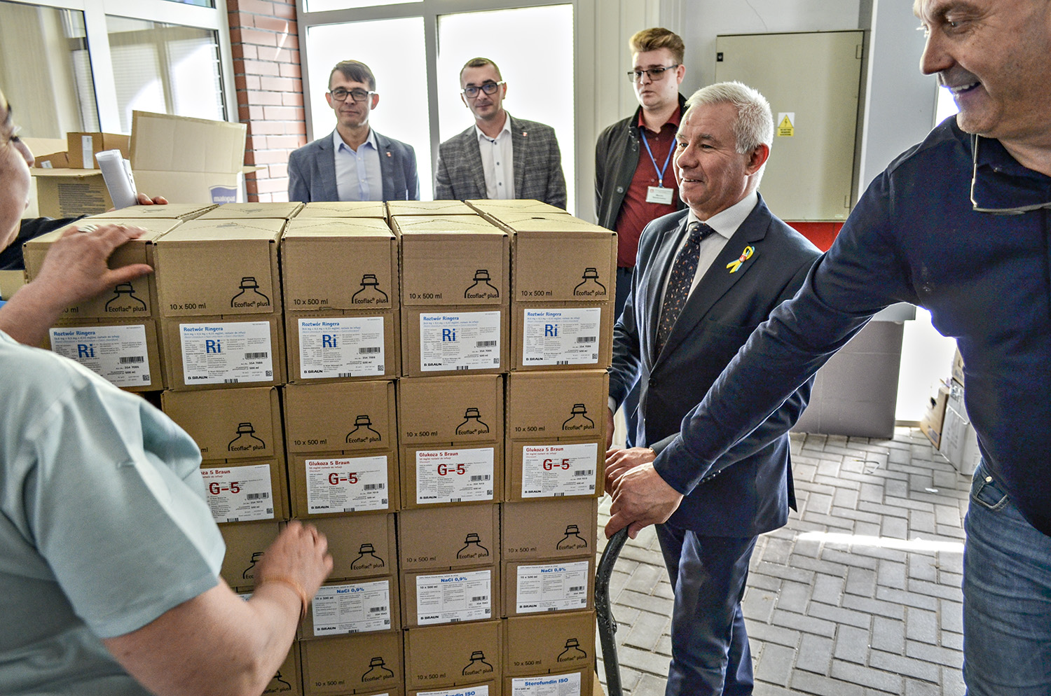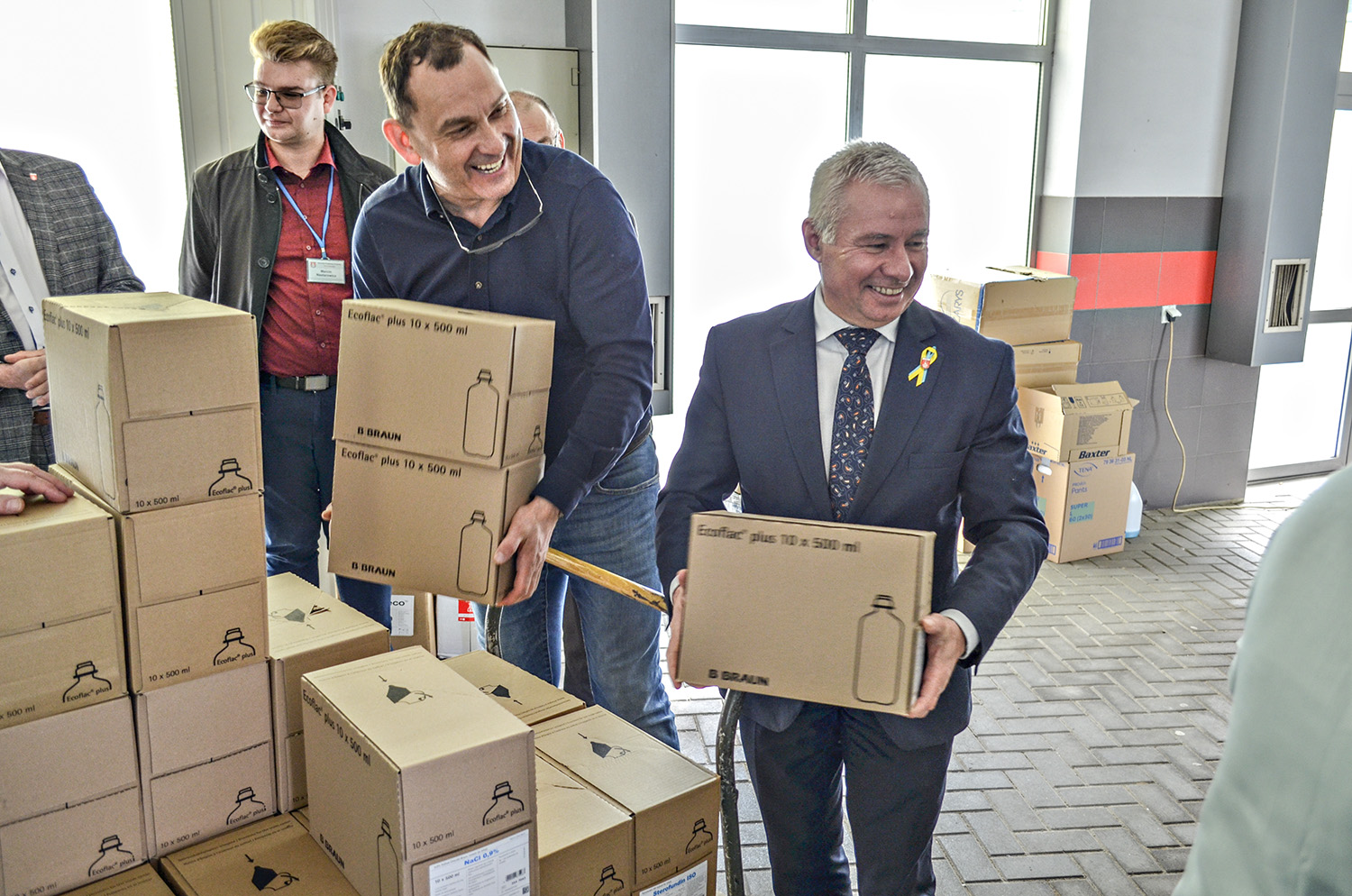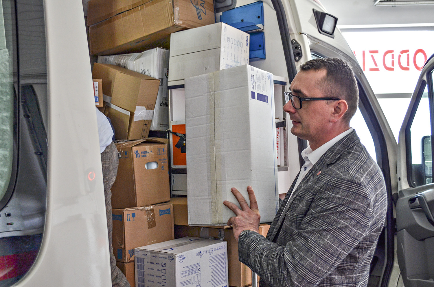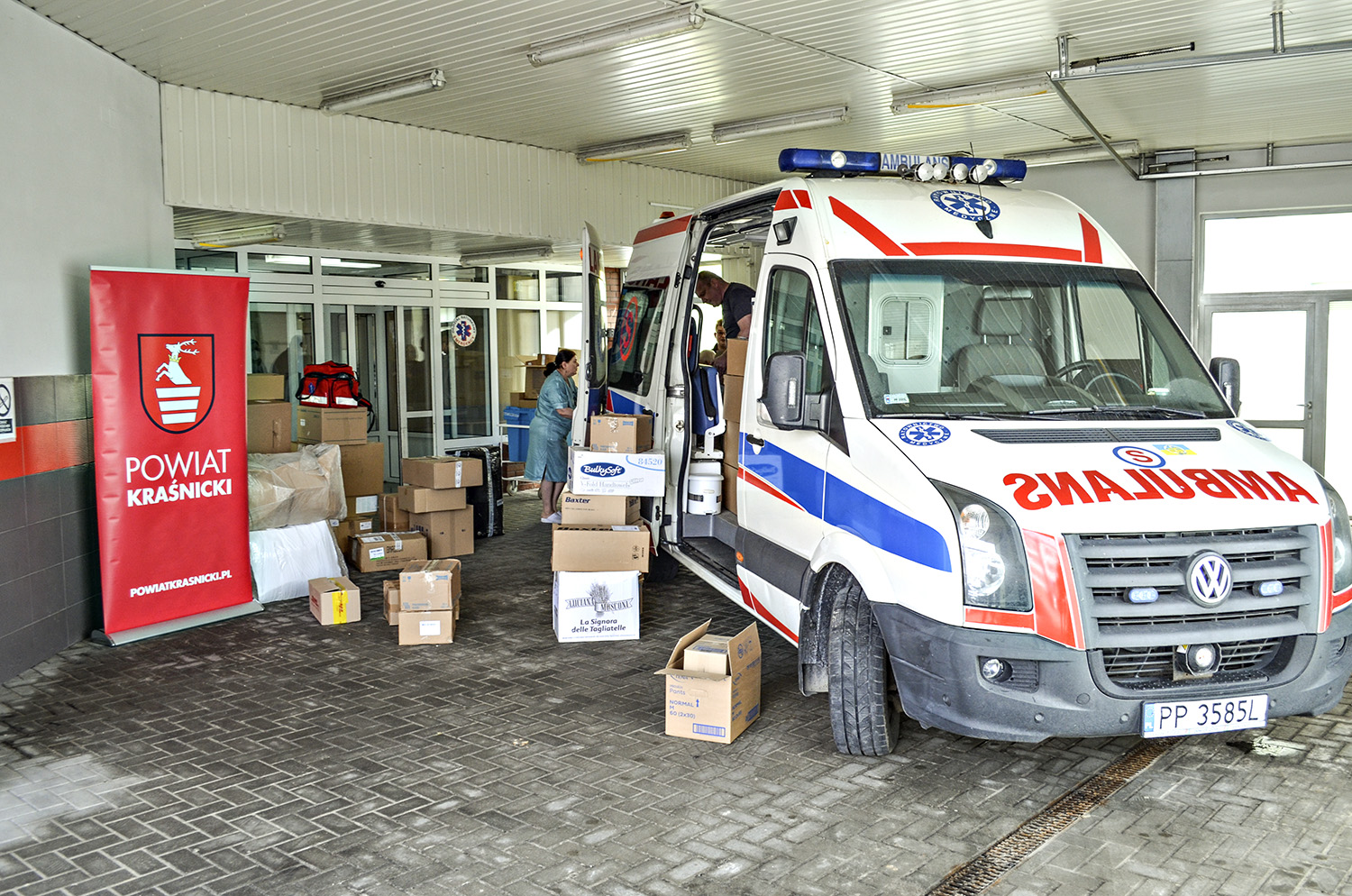 Pojazd został zapełniony "po brzegi" specjalistycznym sprzętem, lekami i materiałami medycznymi, a w załadunku karetki pomogli Starosta Kraśnicki Andrzej Rolla, Wicestarosta Kraśnicki Paweł Kudrel, Przewodniczący Rady Powiatu Kraśnickiego Jacek Dubiel oraz Dyrektor Samodzielnego Publicznego Zakładu Opieki Zdrowotnej w Kraśniku Michał Jedliński.