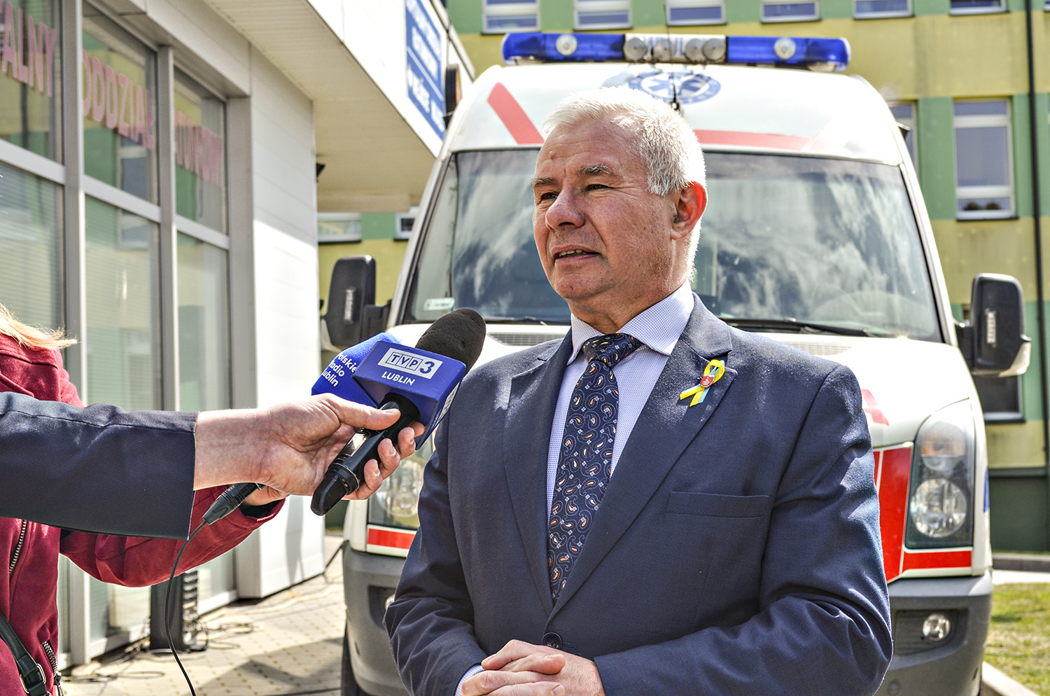 - Dziękuję sponsorowi karetki Marcinowi Piotrowskiemu za ogromny dar serca - mówił starosta Andrzej Rolla i dodał - Cieszę się, że dzięki współpracy Zarządu Powiatu w Kraśniku z kraśnickimi lekarzami oraz Klubem PiS w Radzie Powiatu udało się wyposażyć pojazd w niezbędny do ratowania życia i zdrowia sprzęt. Mam nadzieję, że karetka, która trafia na front wojny będzie "niemym światkiem" wielu cudów, których ratownicy medyczni dokonają z Bożą pomocą.