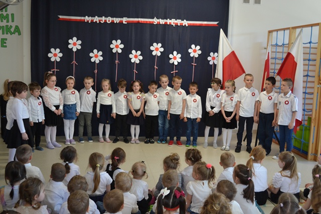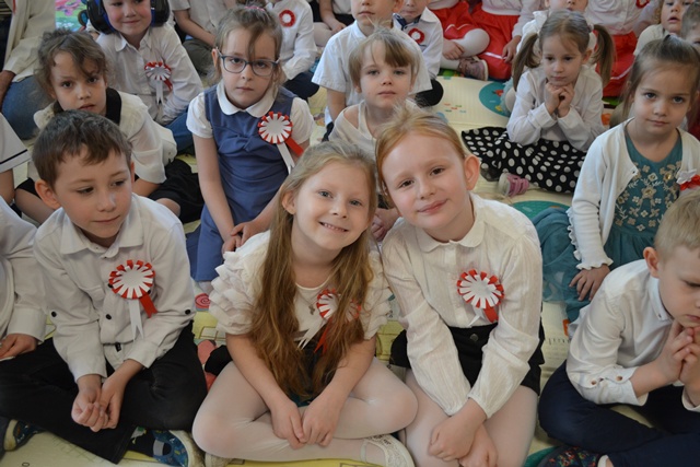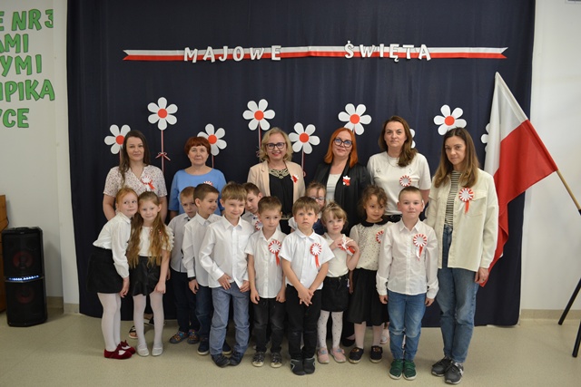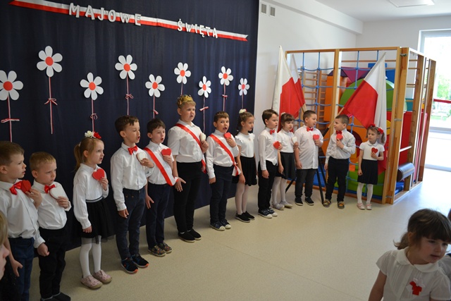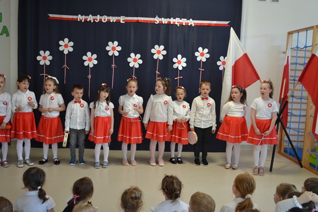 Dnia 30 kwietnia w naszym przedszkolu odbyła się uroczysta Akademia Majowa, upamiętniająca ważne święta narodowe: Święto Pracy (1 maja), Dzień Flagi Rzeczypospolitej Polskiej (2 maja) oraz Święto Konstytucji 3 Maja. Aby nadać uroczysty charakter naszej uroczystość wspólnie odśpiewaliśmy hymn narodowy – „Mazurka Dąbrowskiego”. Przedszkolaki pięknie zaprezentowały się podczas śpiewania piosenek o Polsce. Kolor biało-czerwony dominował tego dnia, nawiązując do polskich symboli narodowych. Jesteśmy dumni, że dzieci już od najmłodszych lat uczą się patriotyzmu, a Akademia Majowa jest radosnym świętem naszej małej przedszkolnej wspólnoty.
