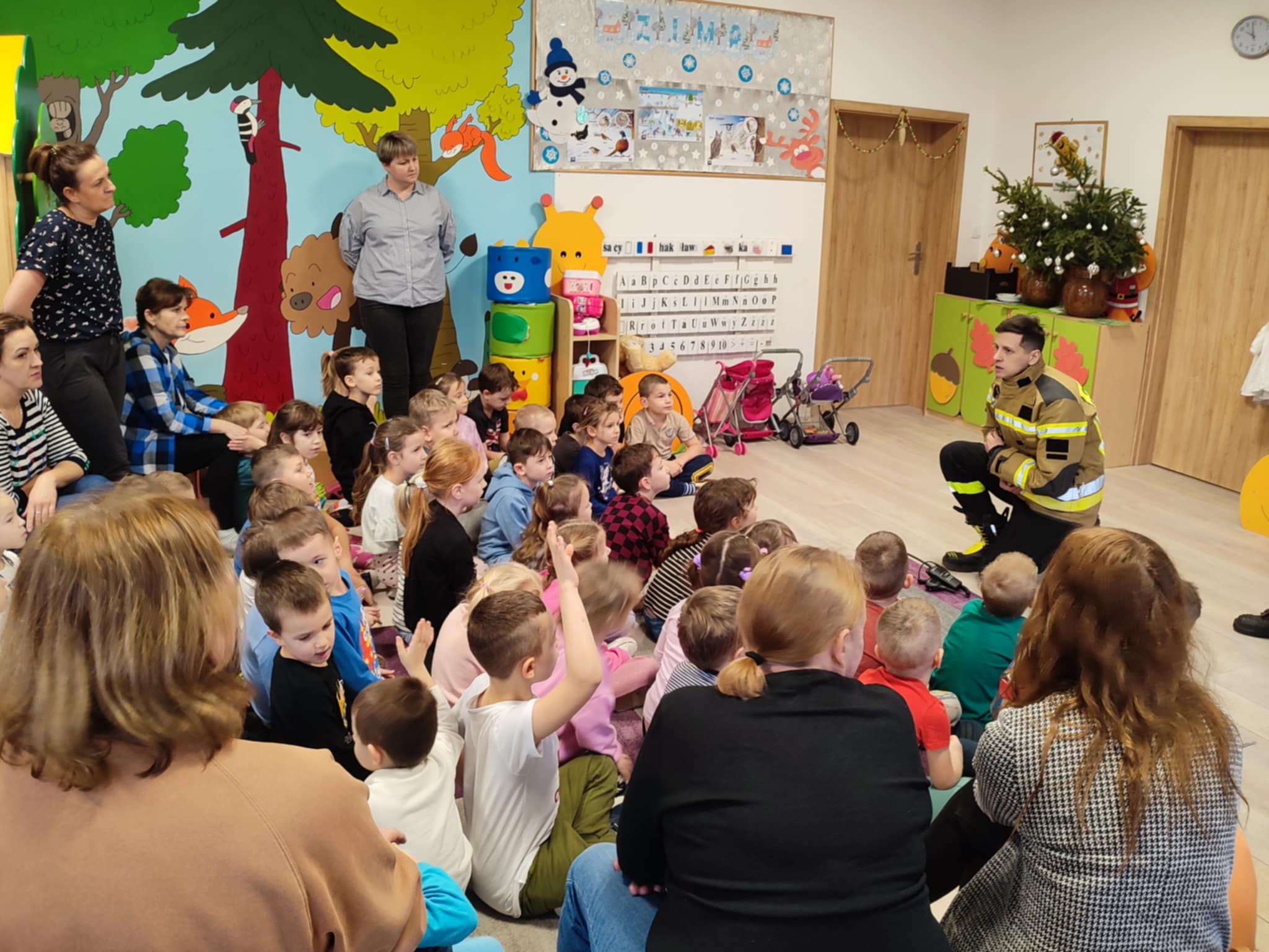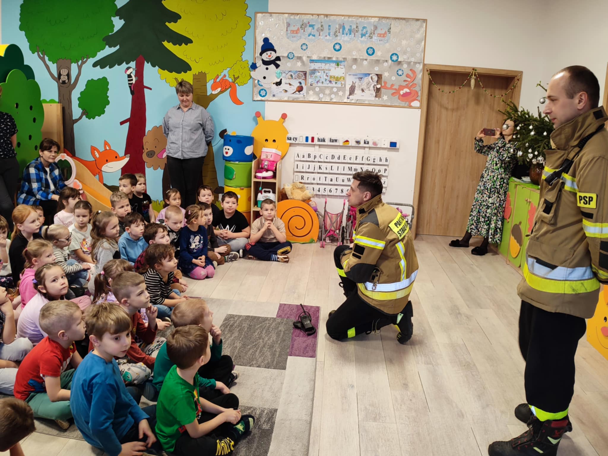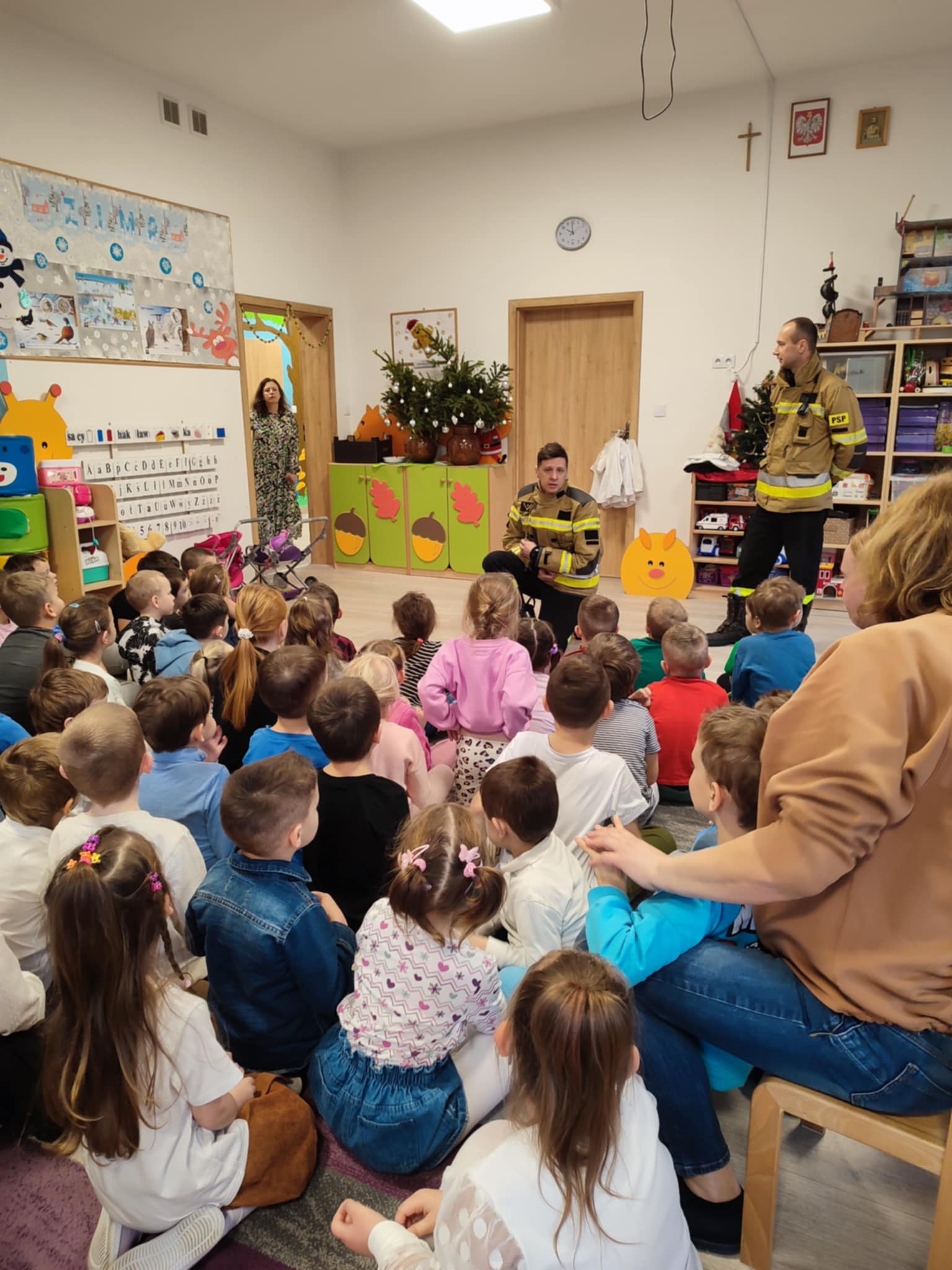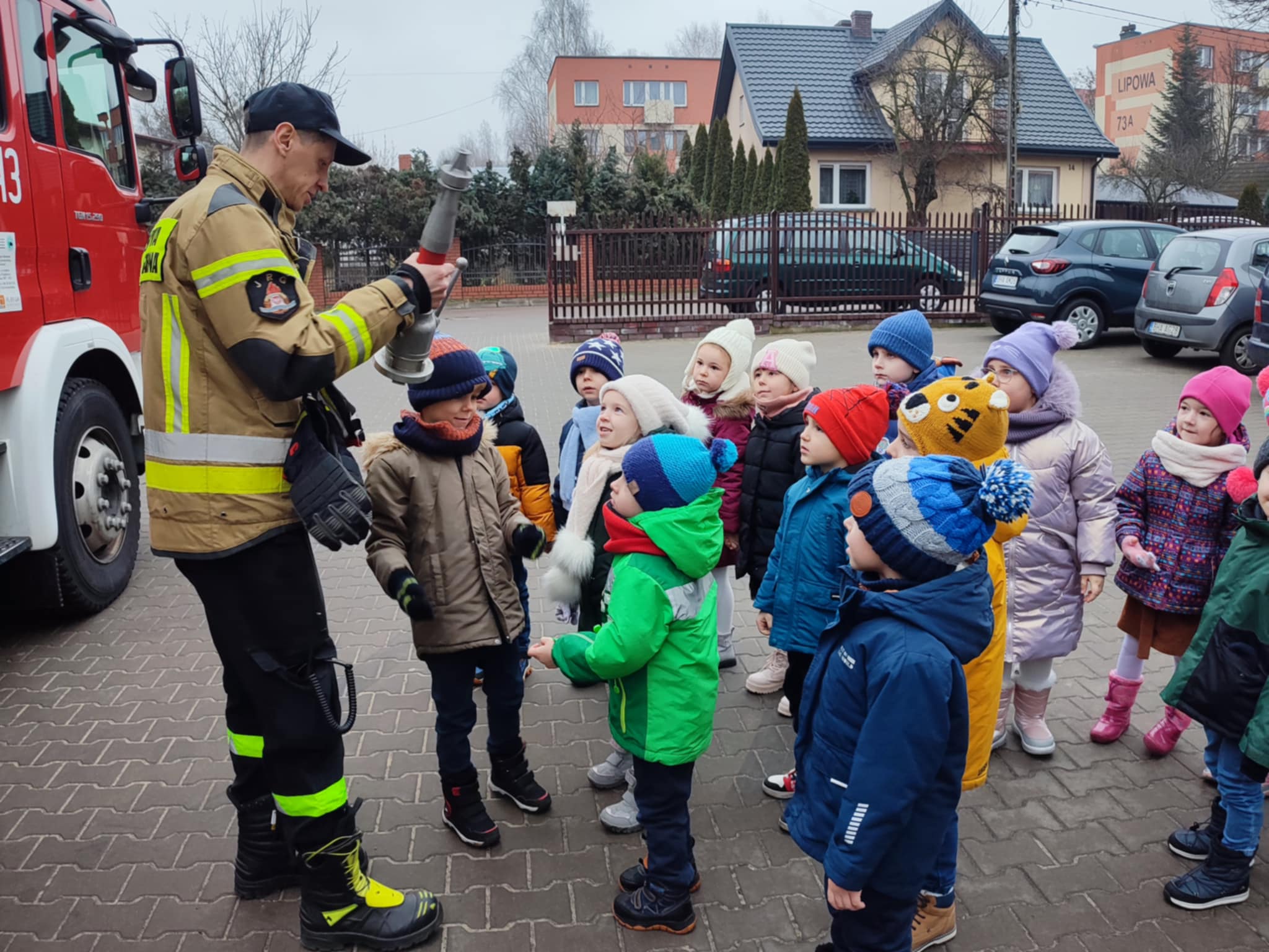 W ćwiczeniach ewakuacji w naszym przedszkolu uczestniczyli także funkcjonariusze Komendy Powiatowej Państwowej Straży Pożarnej. Po udanej ewakuacji strażacy pokazali naszym przedszkolakom nowoczesny wóz strażacki oraz jego wyposażenie, a także przeprowadzili pogadankę z przedszkolakami na temat bezpieczeństwa.