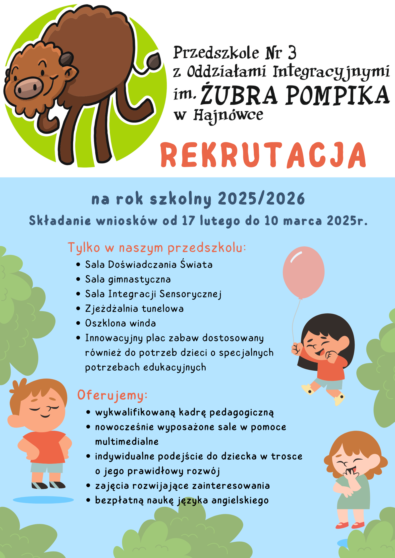 Wniosek o przyjęcie dziecka na rok szkolny 2025/2026 do Przedszkola Nr 3 z Oddziałami Integracyjnymi im. Żubra Pompika w Hajnówcewniosek_i_załączniki_2025_2026(1).odt 2.31MB Klauzula RODO