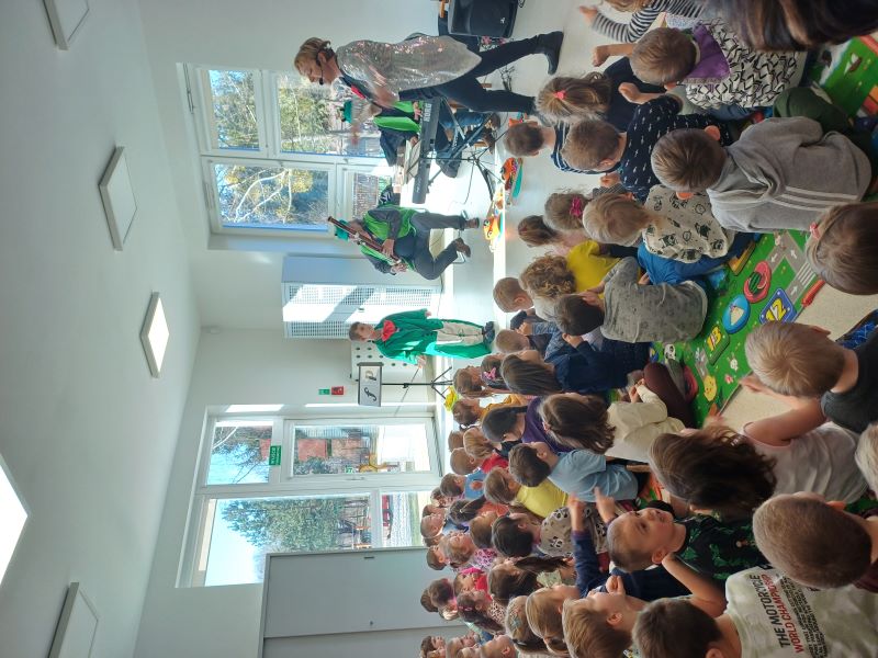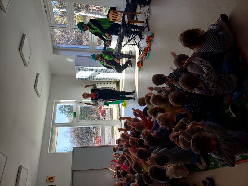 12 lutego nasze przedszkolaki miały wyjątkową okazję przenieść się do świata muzyki, podczas spotkania z filharmonią. Dzieci poznały rolę dyrygenta, który niczym prawdziwy kapitan orkiestry prowadzi muzyków, dbając o rytm, harmonię i emocje w utworach. Przedszkolaki z zapartym tchem obserwowały ruchy batuty i uczyły się, jak gesty dyrygenta wpływają na tempo, dynamikę i emocje w muzyce.