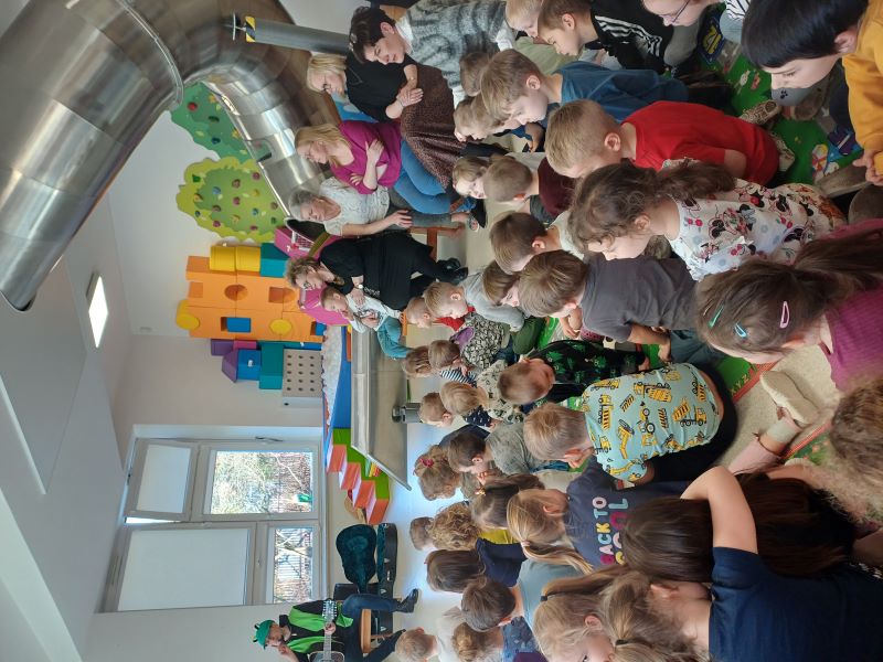 Podczas interaktywnego koncertu dzieci dowiedziały się, jak działa batuta, dlaczego dyrygent jest tak ważny oraz jak muzyka może opowiadać różne historie. Nie zabrakło także wspólnego muzykowania – dzieci miały okazję spróbować swoich sił w dyrygowaniu