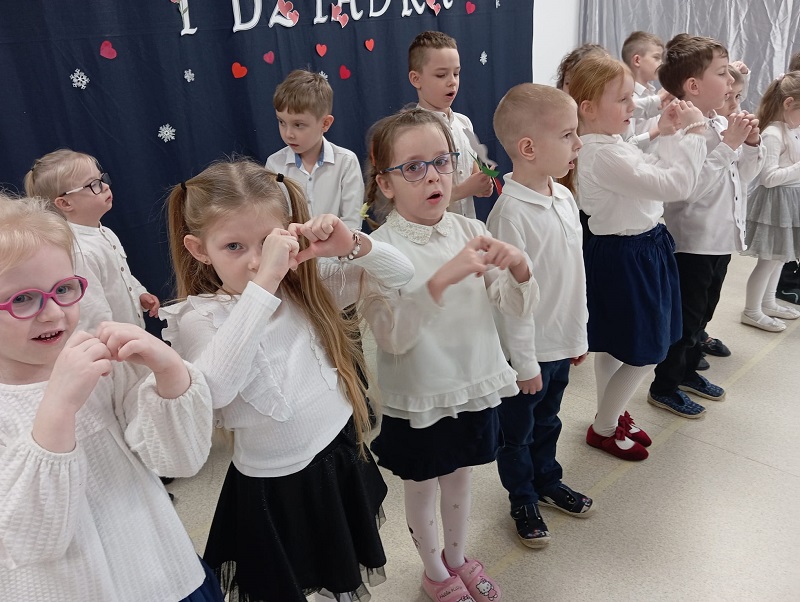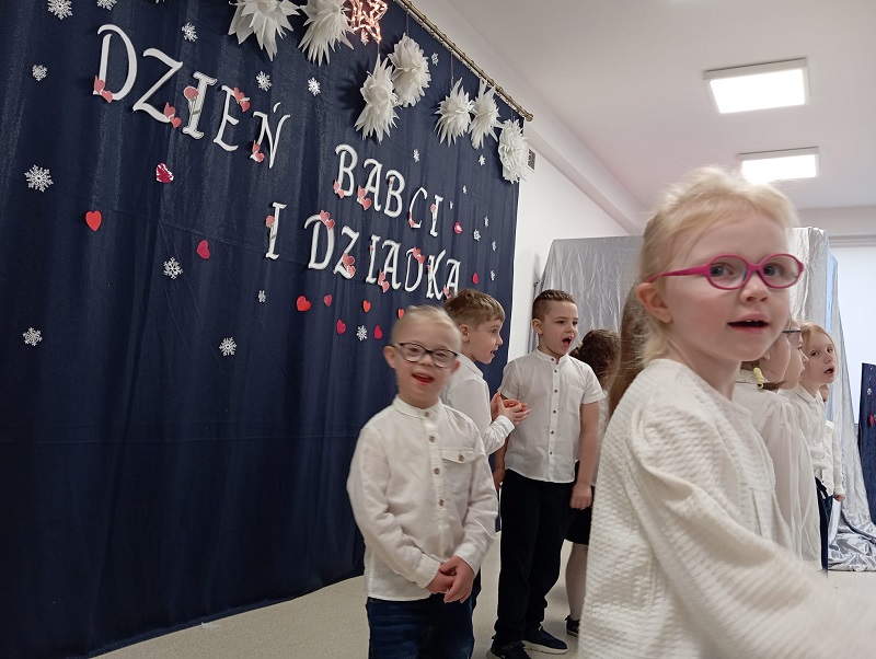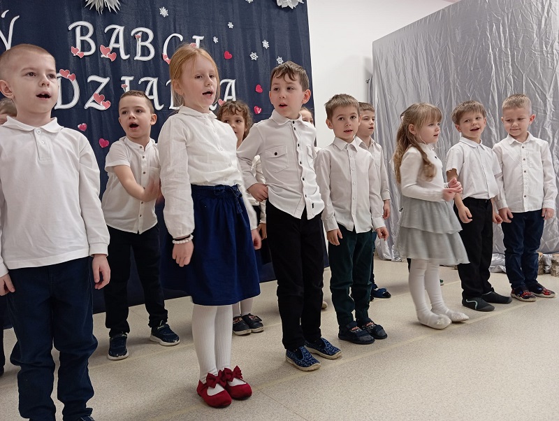 W ostatni piątek stycznia dzieci wraz z nauczycielkami z grupy „Żubry” miały możliwość zaprezentować to co ćwiczyły przez większą część stycznia. Spędzając czas w przedszkolu przygotowywały one swój występ, aby móc dziadkom sprawić radość i w szczególny sposób zaakcentować ten ważny dzień jakim jest „Dzień Babci i Dziadka”. W przedszkolnej sali gimnastycznej, która na ten dzień została specjalnie pięknie przystrojona, zebrali się wszyscy zaproszeni goście, a „Żuberki” pięknie zaśpiewały piosenkę, zatańczyły taniec i wyrecytowały wierszyki. Rodzice dzieci zadbali o to, aby na stole zagościł słodki poczęstunek i ciepłe napoje. Po części artystycznej był czas na wspólne z dziadkami fotografie, miłe pogawędki oraz degustację smakołyków.