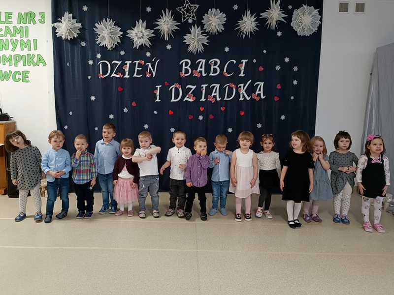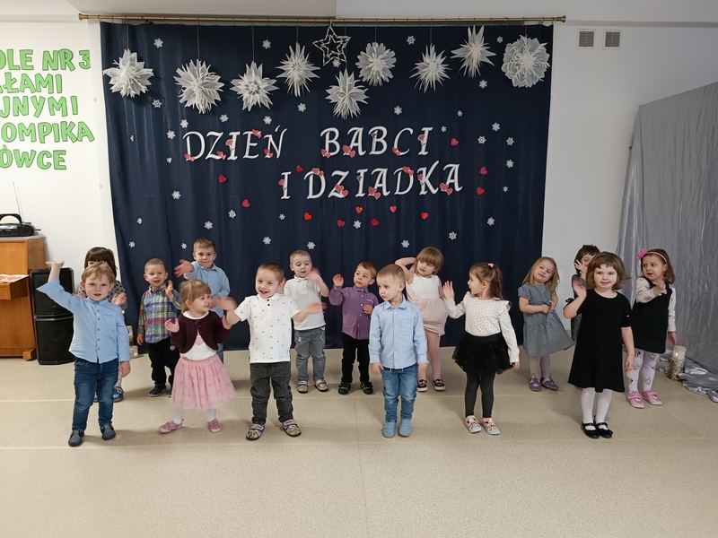 Dnia 22 stycznia, nadszedł długo oczekiwany przez nasze maluchy Dzień Babci i Dziadka, podczas którego dzieci wystąpiły przed swoimi bliskimi. Choć występy 3-latków były skromne, były pełne szczerości i ciepła. Maluchy recytowały krótkie wierszyki, śpiewały piosenki i tańczyły do rytmu muzyki. Ich występy były dla dziadków prawdziwym wzruszeniem – widok małych rączek unoszących się w tańcu i dzieci wypowiadających słowa wierszyków z wielką zaangażowaniem sprawił, że sala była pełna radości i ciepła.