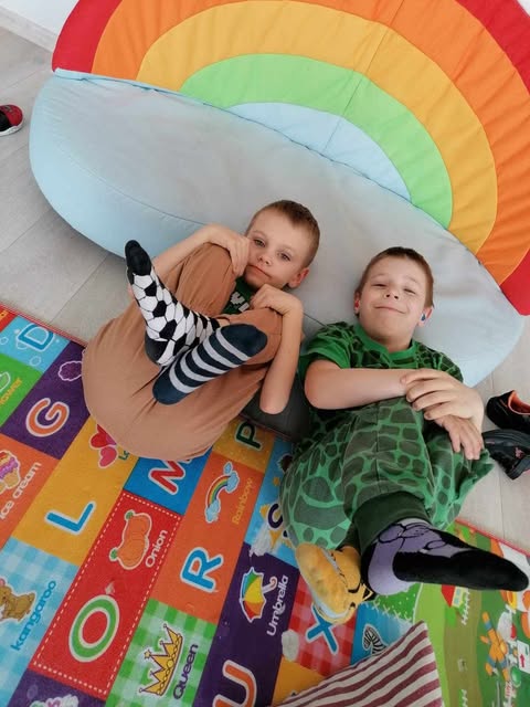 21 marca obchodzimy Dzień Solidarności z Osobami z Zespołem Downa. Tego dnia dzieci z grup Liski, Zajączki, Sówki, Wiewiórki, Sarenki, Żubry, Jeżyki i Rysie założyły dwie różne skarpetki, aby wyrazić wsparcie i zrozumienie dla osób z trisomią 21. Kolorowe skarpetki symbolizują różnorodność i wyjątkowość każdego człowieka. Dzieci chętnie chwaliły się swoimi skarpetkami, porównując kolory i wzory. Wspólna zabawa sprawiła, że przedszkolaki lepiej zrozumiały, jak ważna jest akceptacja innych. Nauczyciele przypomnieli, że każda osoba, zasługuje na szacunek. Dzieci kolorowały skarpetki, tworząc własne, wymyślone wzory i kolory . Jedną z gier, w którą dzieci się bawiły, była zabawa w „Ja mam kto ma ”.. Dzieci z radością odpowiadały, pokazując swoje skarpetki i mówiąc ja mam np czerwoną skarpetkę kto ma zieloną. Dzień Kolorowej Skarpetki był dniem pełnym śmiechu, zabawy i radości. Bardzo się cieszymy ,że tego typu działania spotykają się z dużym zaangażowaniem zarówno dzieci jak i rodziców. Słowa nie wystarczą ,aby opisać to co się działo tego dnia w przedszkolu ,dlatego zapraszamy do obejrzenia zdjęć w galerii.