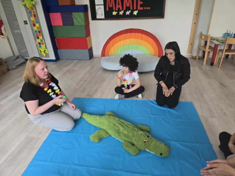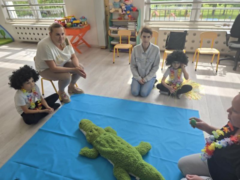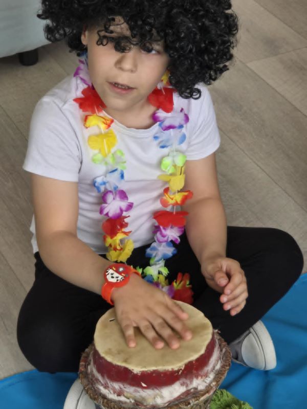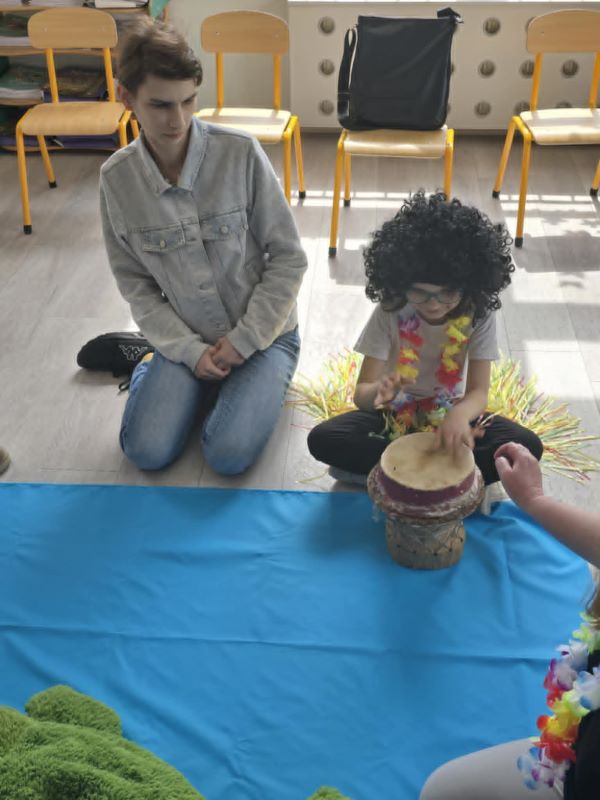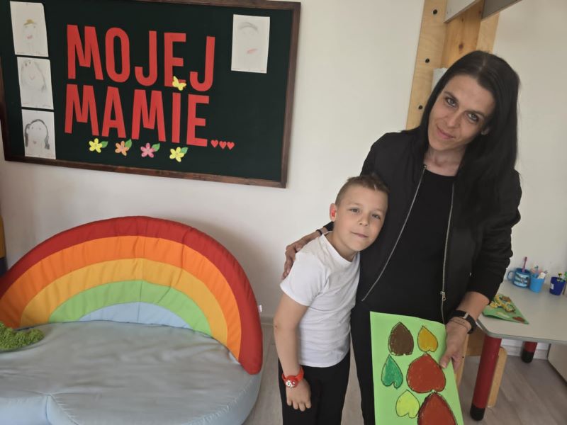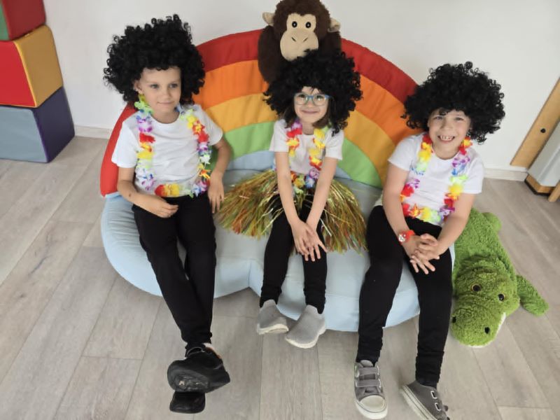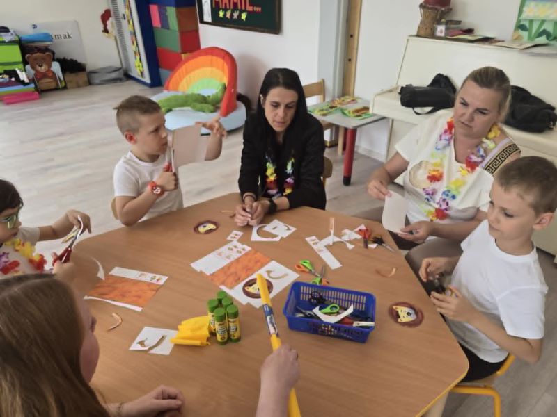 W tym roku dzień mamy w grupie ,,Rysie ‘’był egzotyczną przygodą. Nasze przedszkolaki zabrały swoje ukochane mamy w kolorową podróż do afrykańskiej dżungli .Dzieci przygotowały specjalny występ .Rysie zatańczyły afrykański taniec ubrane w czarne peruki ,kwiatowe korale i kolorowe spódniczki. Żywiołowe ruchy w tańcu ,, Pata pata’’,rytmiczne klaskanie i taneczna energia wprowadziły wszystkich w dobry nastrój .Dzieci recytowały wiersz o czarnoskórym chłopcu. Następnie przyszedł czas na piosenkę,, Dżungla’’, którą dzieci zaśpiewały z wielkim zaangażowaniem .Uśmiech na twarzy dzieci wniosła zabawa logorytmiczna,,Krokodylu nasz”. Wzruszającym momentem było zaśpiewanie piosenki ,,Kochana mamo, gdy będę duży’’ oraz gromkie ,,100 lat ‘’dla mam.. Dzieci też odgadywały kalambury prezentowane przez mamy a dotyczące zwierząt egzotycznych .Dużo radości wywołała zabawa,, 5 małych małpek ‘’,w której dzieci pokazały mamom swoje umiejętności matematyczne oraz gra na afrykańskim bębenku. Podczas zajęć plastycznych dzieci wraz z mamami wykonały lwa z grzywą z bibuły-króla zwierząt afrykańskich. Po występach przyszedł czas na poczęstunek i wspólne rozmowy. Mamy dostały od dzieci prezenty :piękne korale i laurki z serduszkami. Cała uroczystość przebiegła w radosnej atmosferze. Dzień mamy był dla naszych ,,Rysi ‘’wyjątkowym wydarzeniem, które na długo zostanie w pamięci dzieci i ich mam .Dzień mamy to wyjątkowy moment, który łączy pokolenia ,wzmacnia więzi i przypomina jak wielką wartość ma miłość Dziękujemy wszystkim mamom za obecność ,uśmiech i ciepło ,które wniosły do naszego przedszkola.