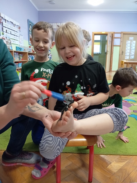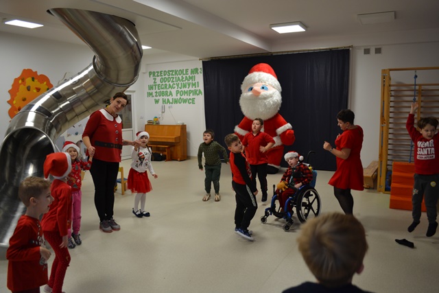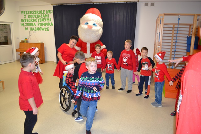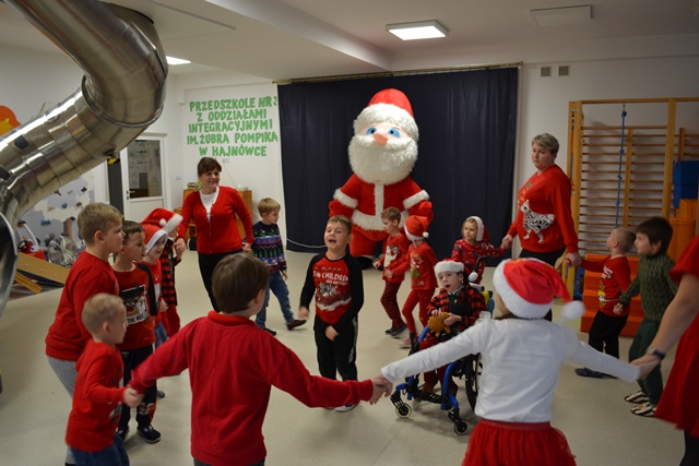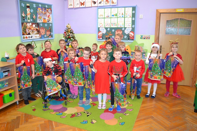 W okresie przedświątecznym zaprosiliśmy do nas rodziców. Jeżyki zaprezentowały część artystyczną, śpiewając kolędy , recytując wiersze i składając życzenia. Następnie zaprosiliśmy naszych bliskich do zabawy ruchowej, wykonaliśmy piękne obrazki i przy świątecznej herbatce kosztowaliśmy wypieków. Na zakończenie przedszkolaki złożyły życzenia: