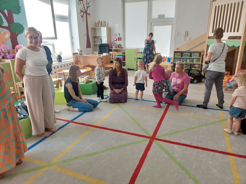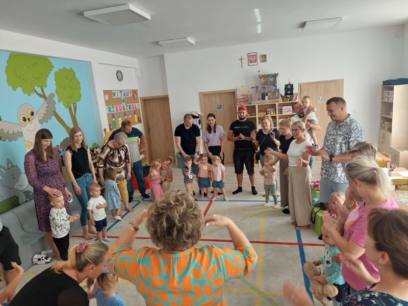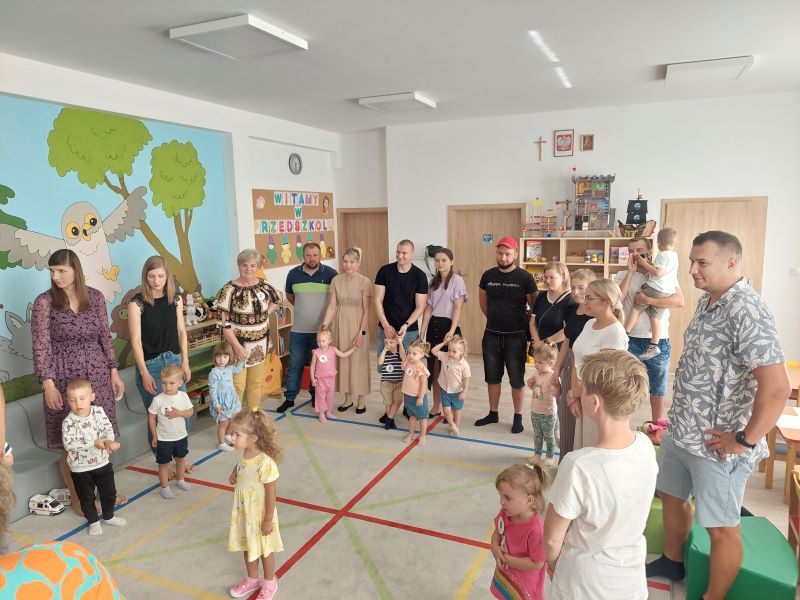 Mając powyższe na uwadze w celu oswojenia się i integrowania z nowym miejscem, środowiskiem oraz społecznością rówieśników i dorosłych w dn.28.08.2025r. 3 latki wraz z rodzicami zostały zaproszone na zajęcia adaptacyjne.