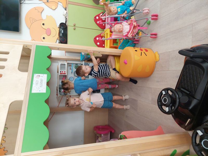 Dzieci miały możliwość zapoznania oraz zabaw według własnych pomysłów i zgodnie z zainteresowaniami z wykorzystaniem dowolnych zabawek w utworzonych w sali kącikach zainteresowań.