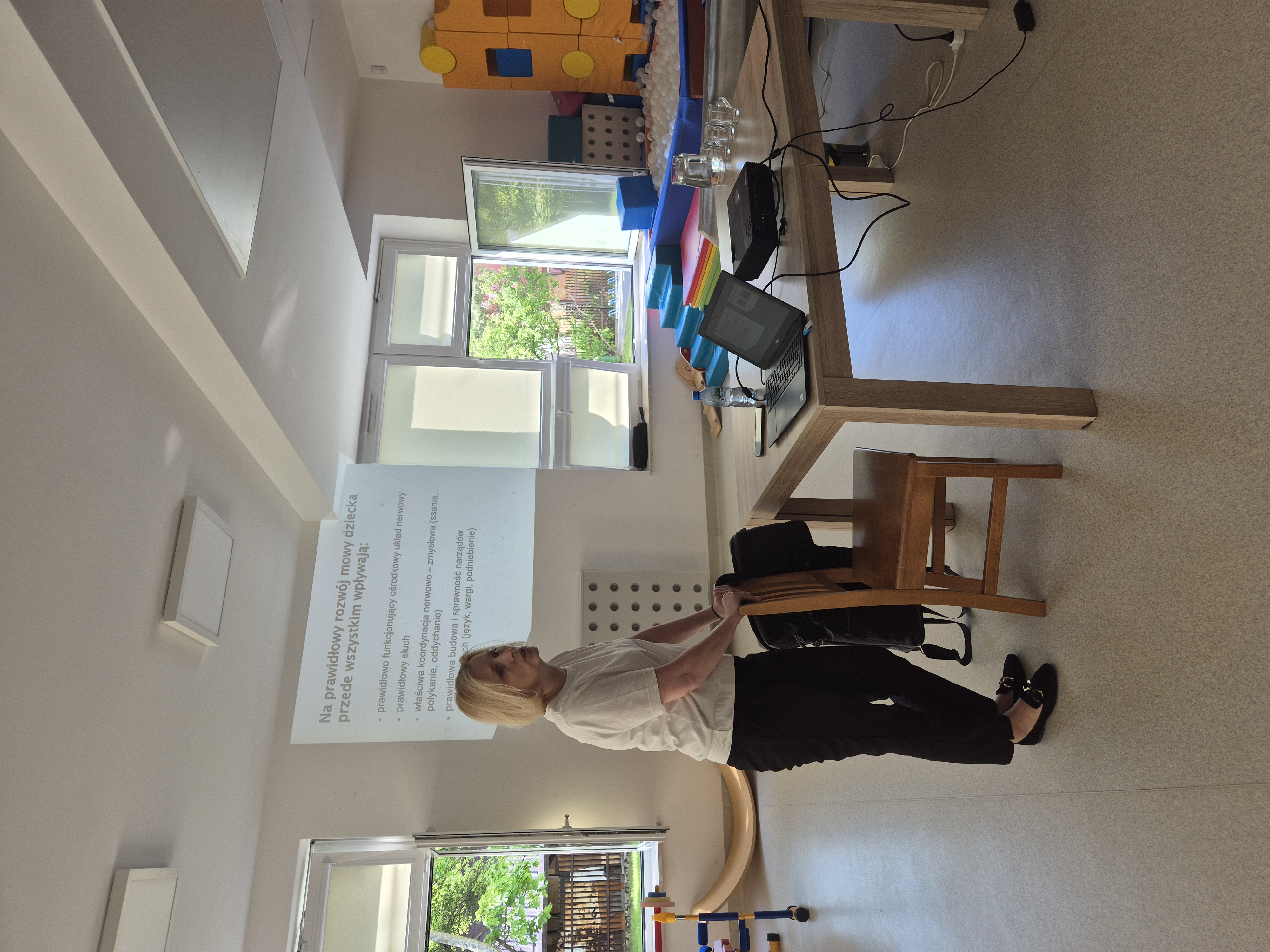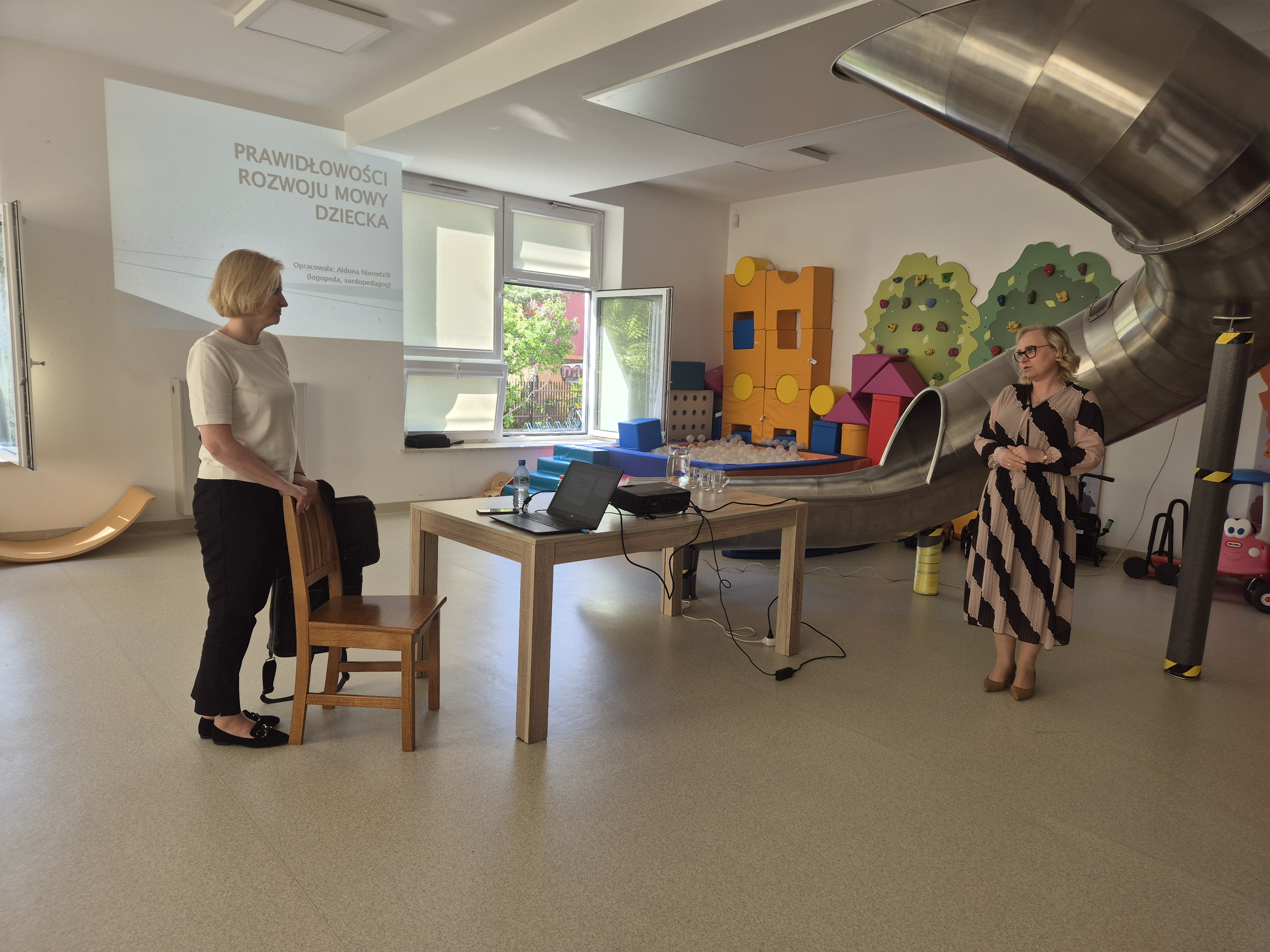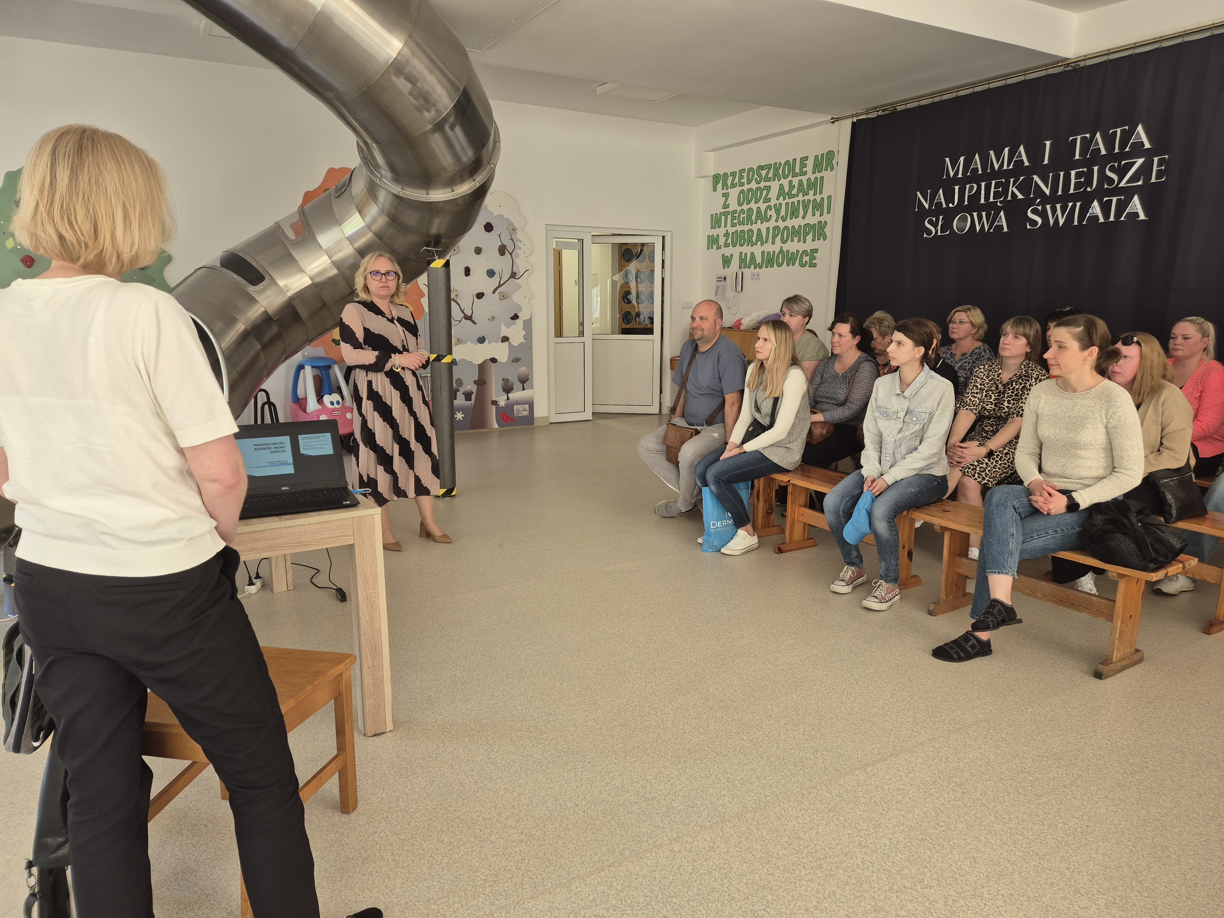 Dbając o wszechstronny rozwój wychowanków w naszym przedszkolu, Pani Dyrektor Dorota Ewelina Durzyńska zorganizowała prelekcję na temat rozwoju mowy dziecka. Na wygłoszona przez Panią Aldonę Nierodzik pogadankę przybyli nauczyciele i rodzice dzieci uczęszczających do „Pompikowego Przedszkola”. Pani logopeda – pracownik Poradni Psychologiczno – Pedagogicznej w Hajnówce omówiła etapy rozwoju mowy, zwracając uwagę na poszczególne umiejętności językowe i prawidłową budowę i sprawność aparatu artykulacyjnego. Podczas spotkania można było zadać pytania prowadzącej dotyczące poruszanego tematu.