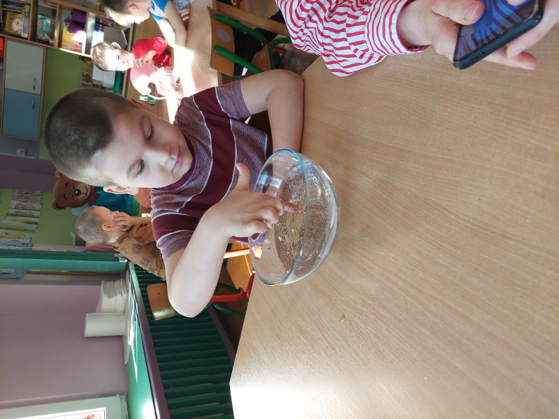 doświadczenie przedstawiające znaczenie używania mydła podczas mycia rąk, a nie tylko samej wody (użyto: miskę z wodą, brokat , mydło).