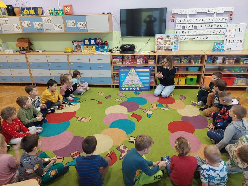 W ramach projektu w grudniu i styczniu na zajęciach w naszej grupie gościliśmy Panią Magdalenę, która jest pracownikiem Stacji Sanitarno -Epidemiologicznej w Hajnówce. Pani Magda opowiedziała dzieciom o zdrowej żywności i higienie osobistej.