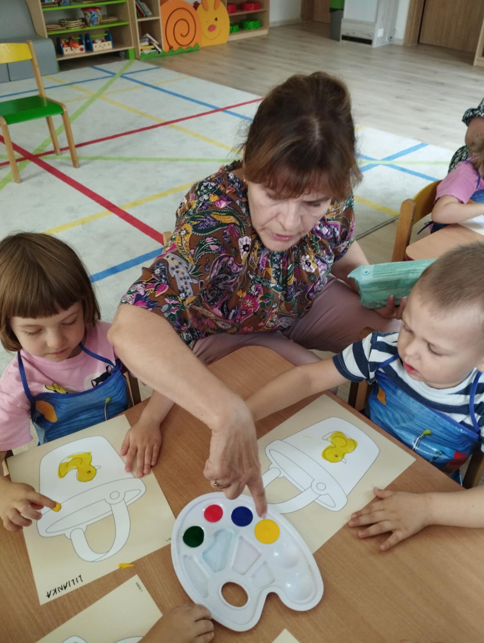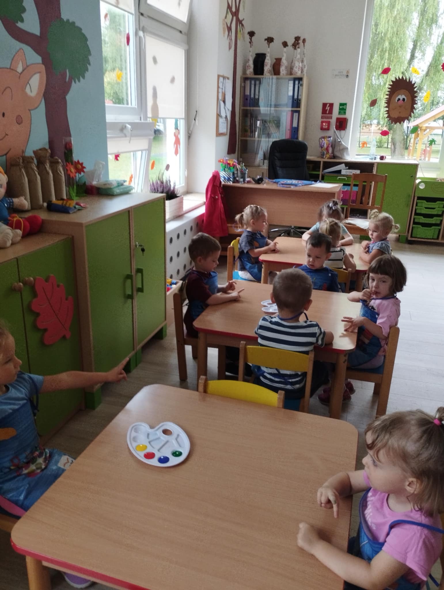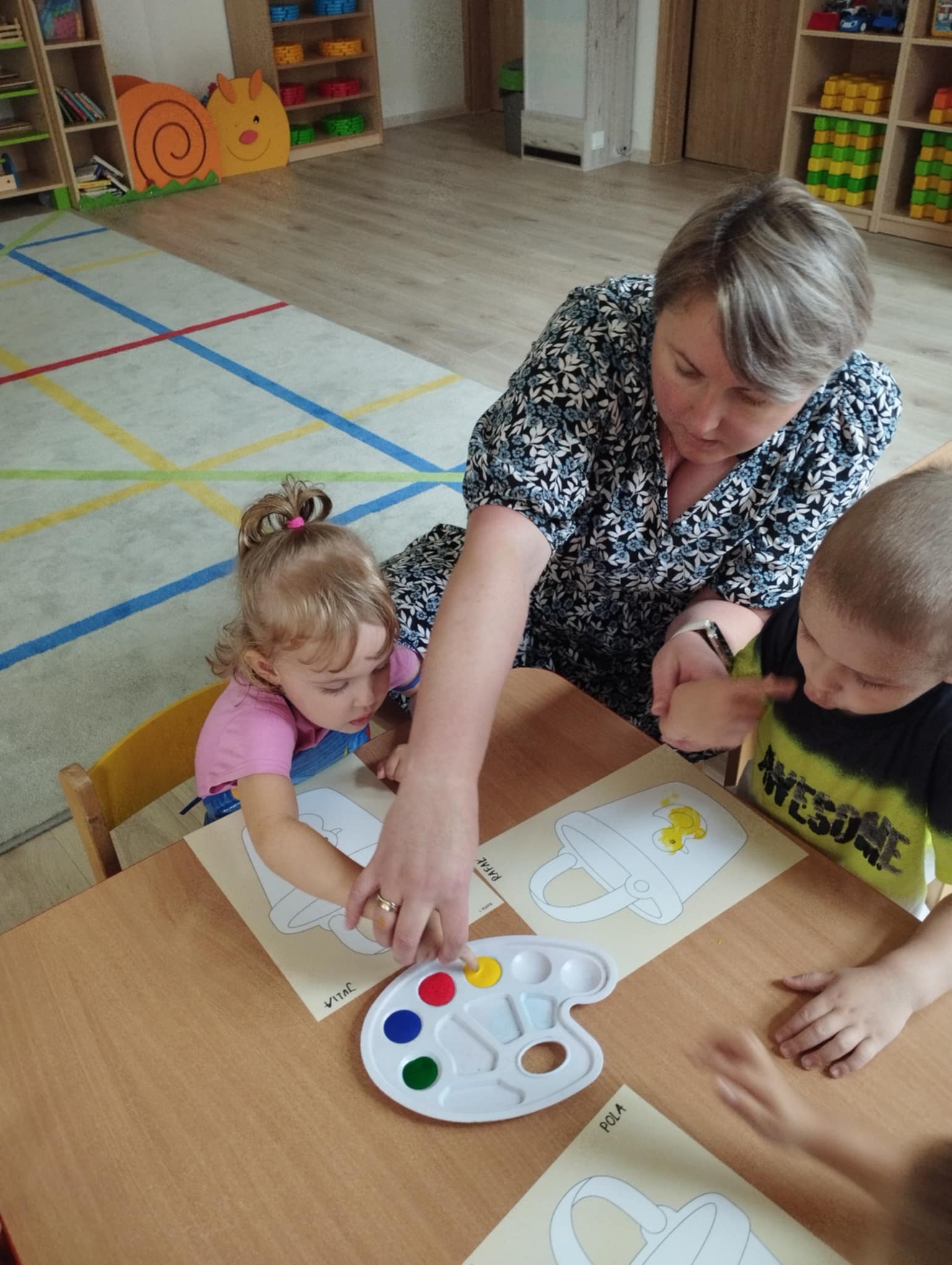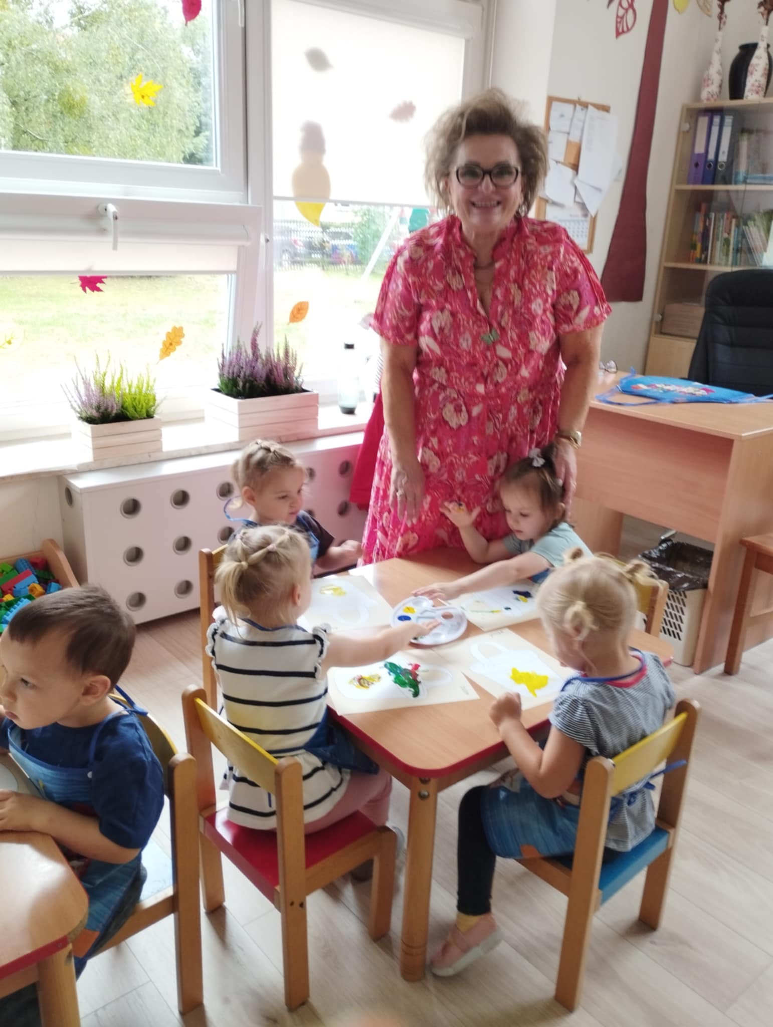 Zajęcia plastyczne są kluczowe dla wszechstonnego rozwoju dziecka. Rozwijają jego wyobraźnię, sprawność manualną, zainteresowana oraz zdolności plastyczne. Są świetną okazją do wyrażania swoich emocji oraz wkraczania w otaczający świat - bycie przedszkolakiem kreatywnie. Mając powyższe na uwadze zorganizowałyśmy naszym Sówkom zajęcia edukacyjne w formie zabawy plastycznej. Zaproponowałyśmy technikę paluszkowania. Wykorzystując własne paluszki jako narzędzie dzieci poznawały: zmysły ( dotyku i wzroku) , podstawowe kolory oraz wyzwalały swoje emocje w formie plastycznej.