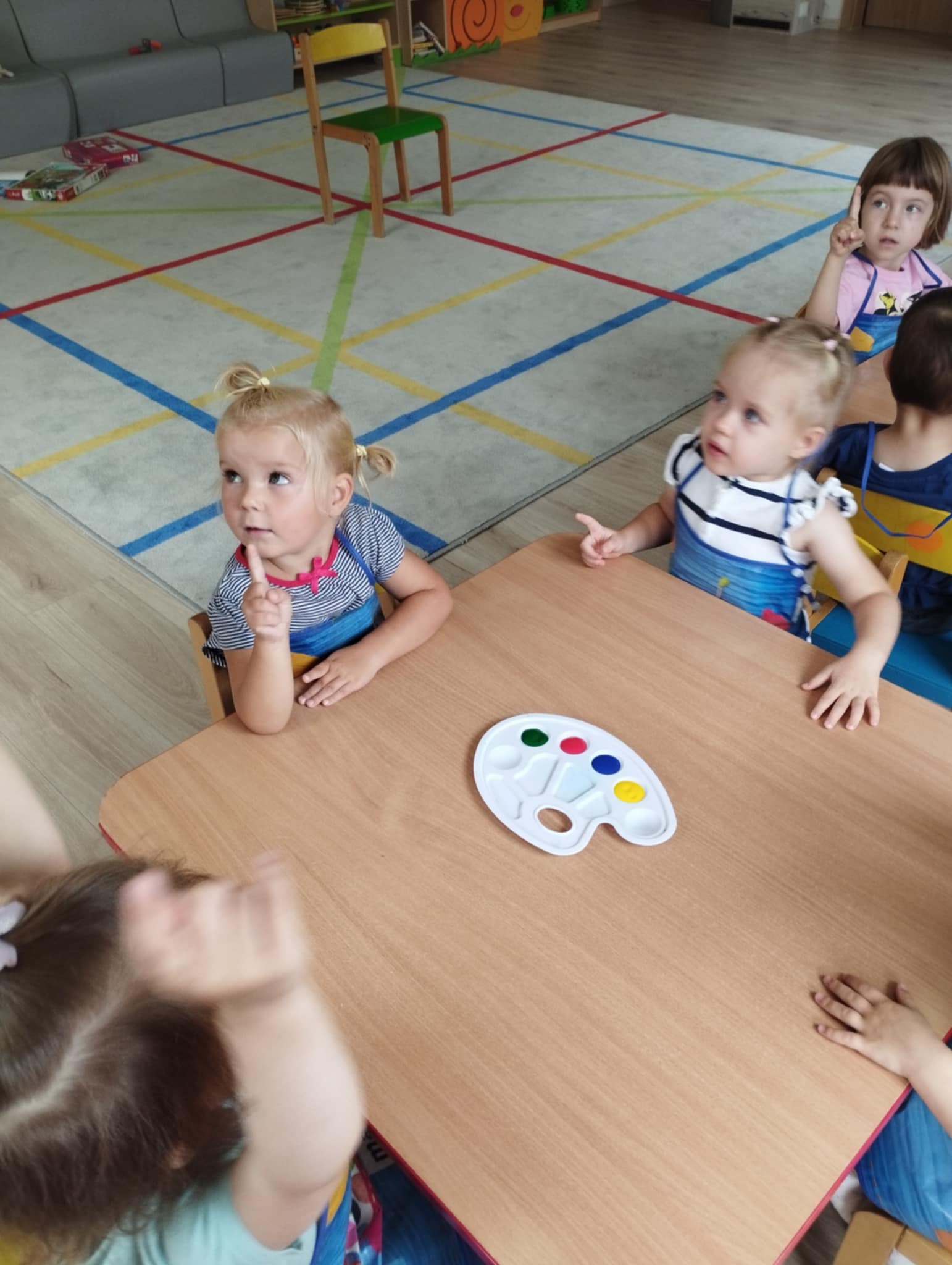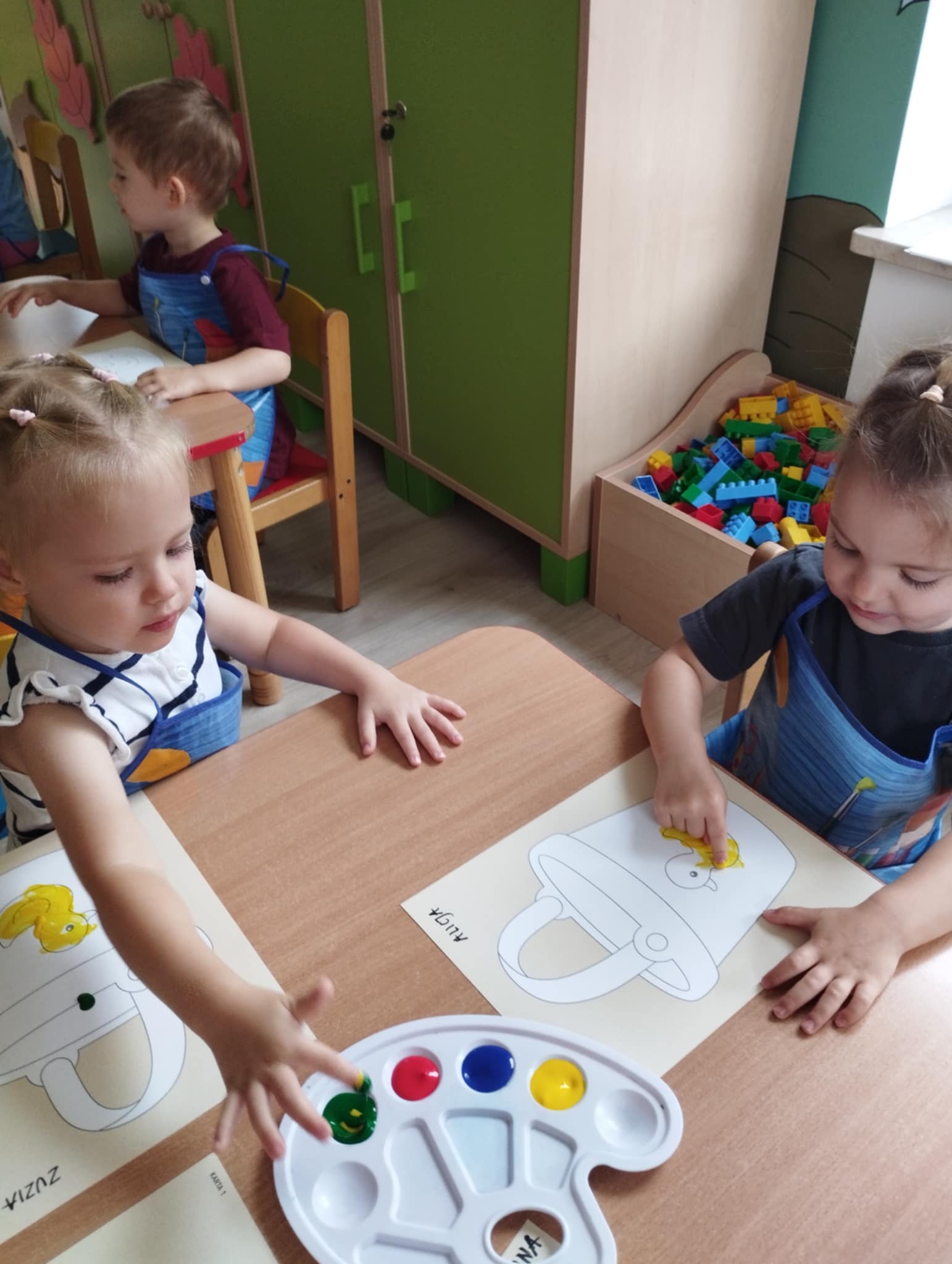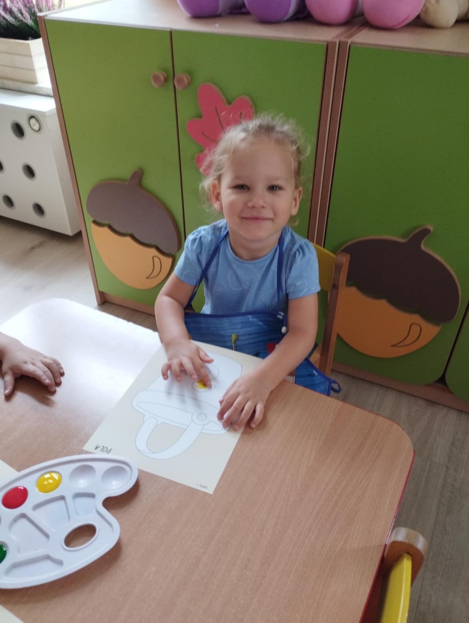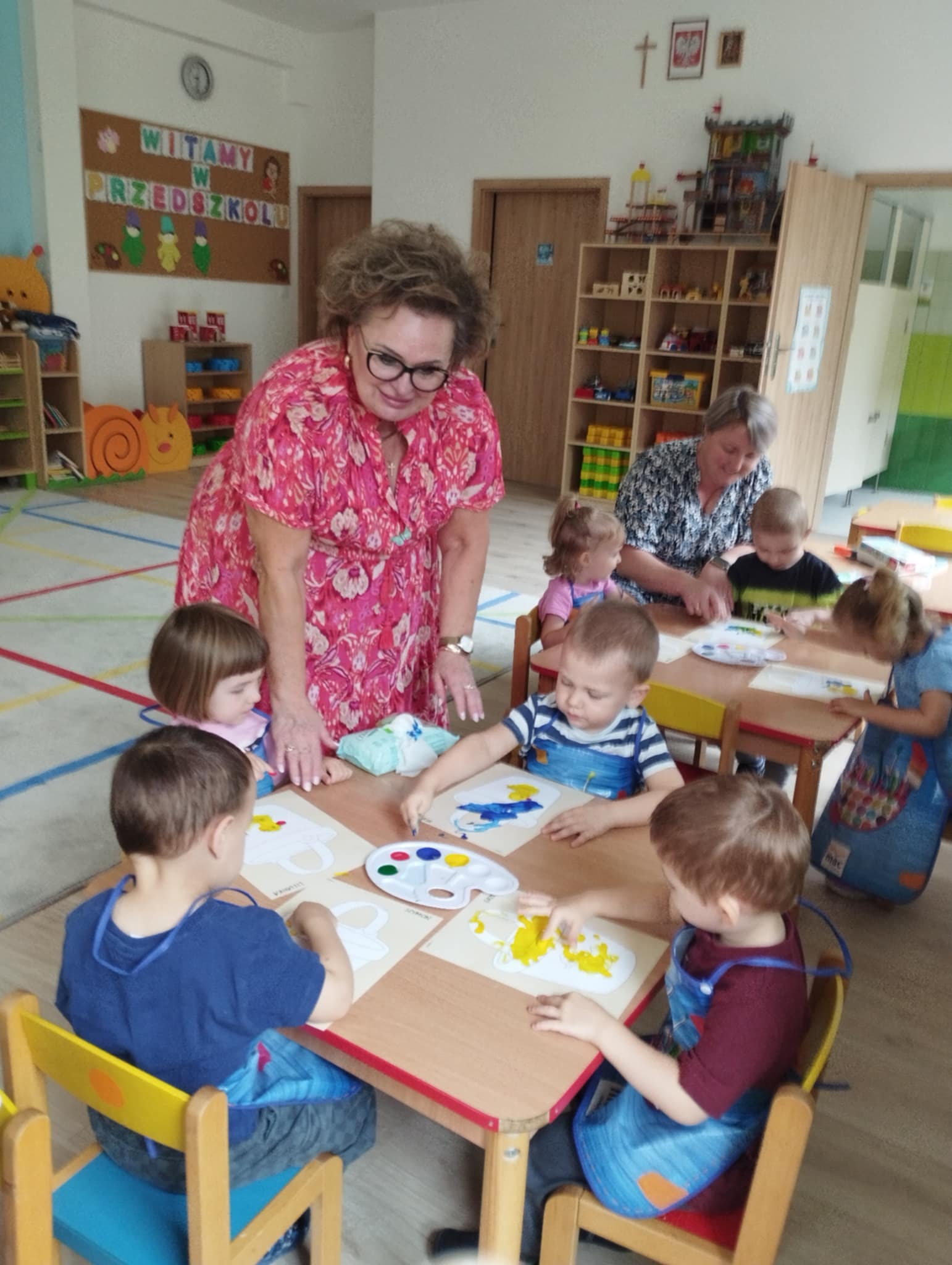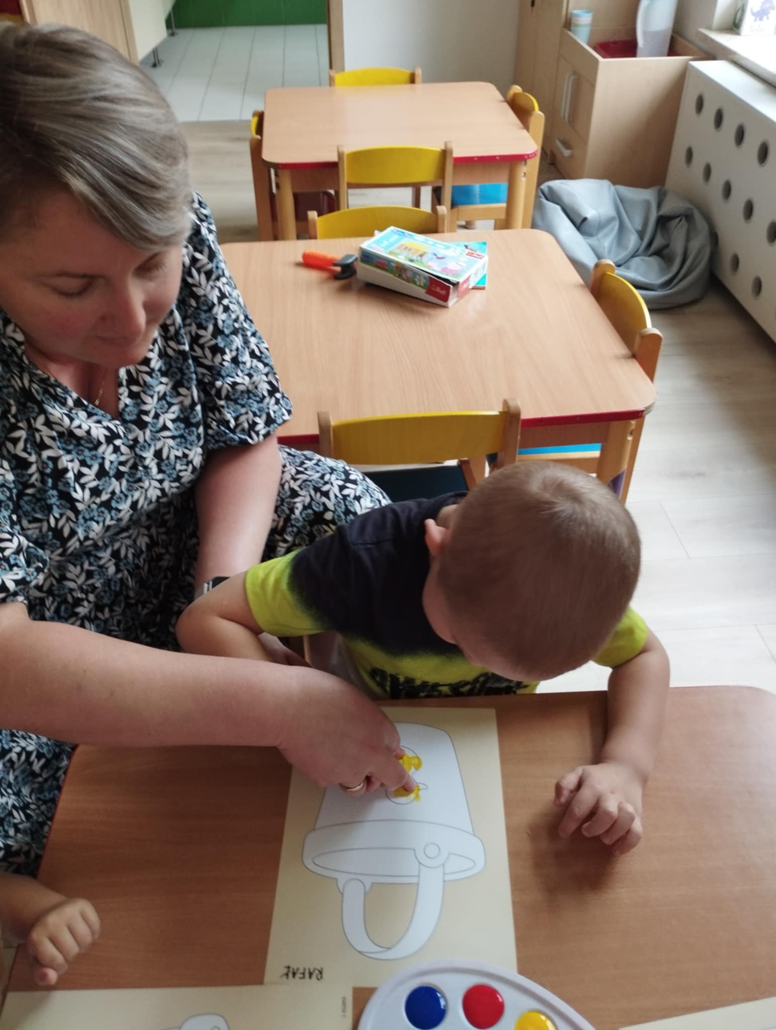 Zajęcia plastyczne są kluczowe dla wszechstonnego rozwoju dziecka. Rozwijają jego wyobraźnię, sprawność manualną, zainteresowana oraz zdolności plastyczne. Są świetną okazją do wyrażania swoich emocji oraz wkraczania w otaczający świat - bycie przedszkolakiem kreatywnie. Mając powyższe na uwadze zorganizowałyśmy naszym Sówkom zajęcia edukacyjne w formie zabawy plastycznej. Zaproponowałyśmy technikę paluszkowania. Wykorzystując własne paluszki jako narzędzie dzieci poznawały: zmysły ( dotyku i wzroku) , podstawowe kolory oraz wyzwalały swoje emocje w formie plastycznej.