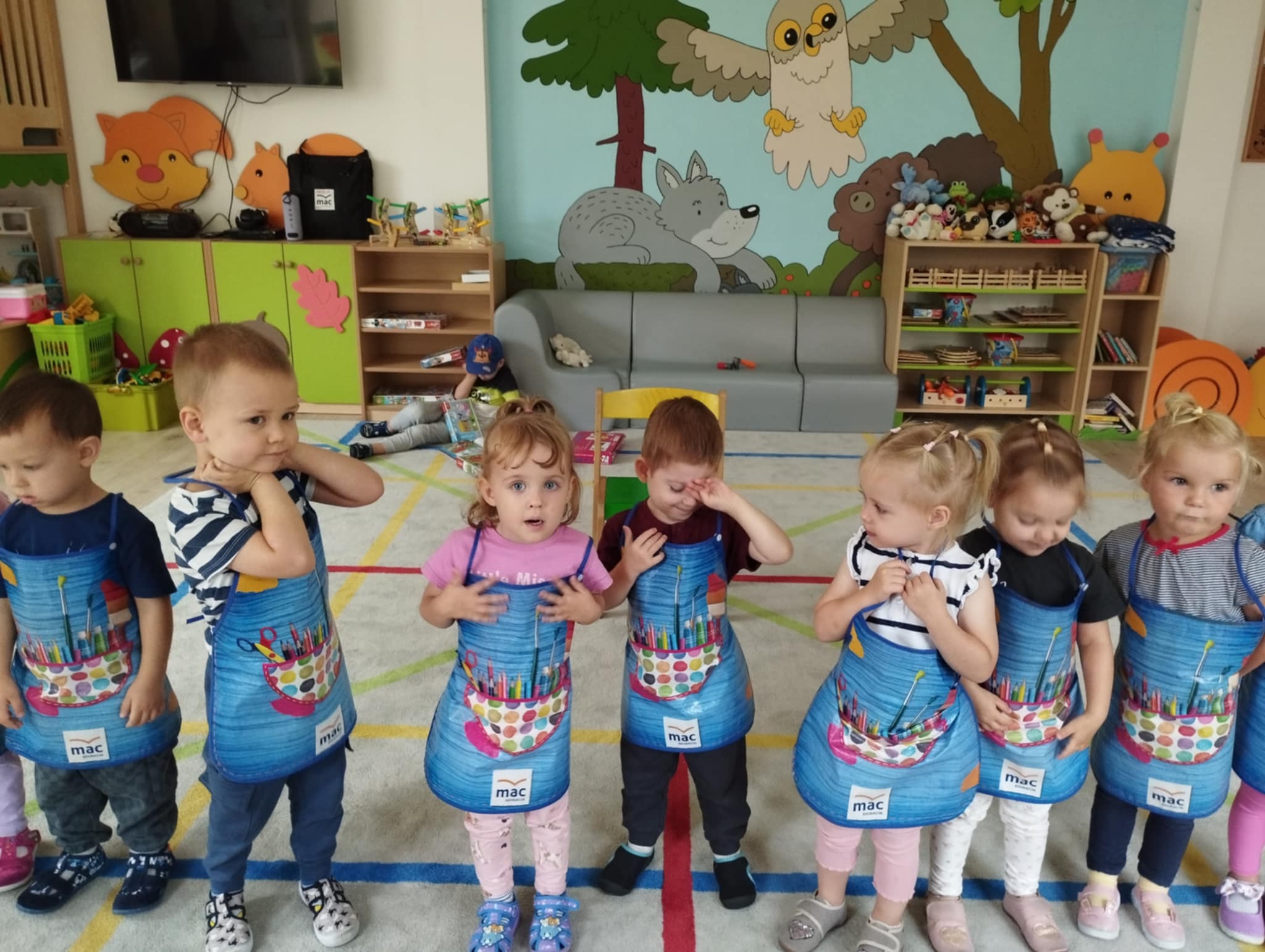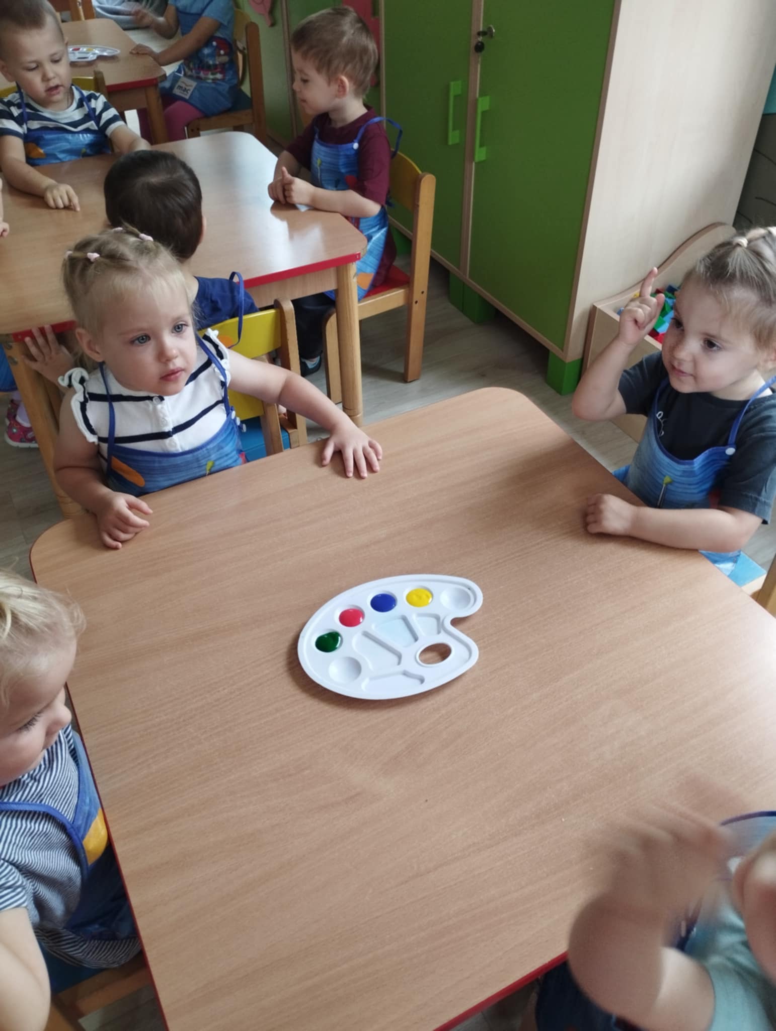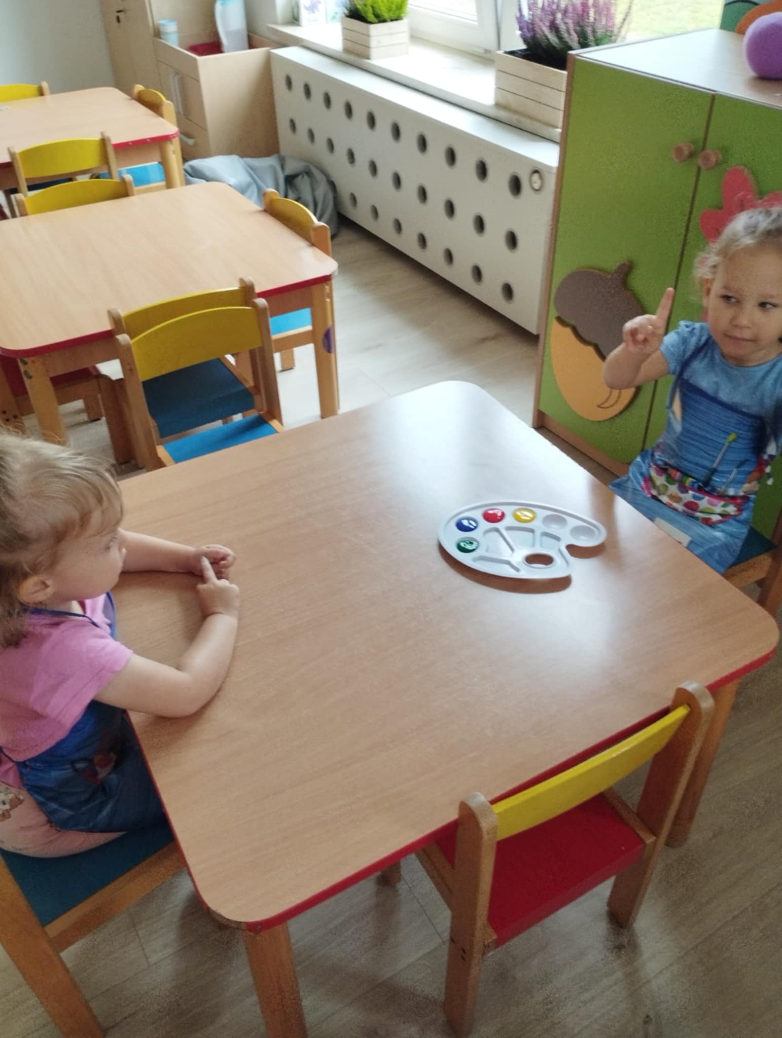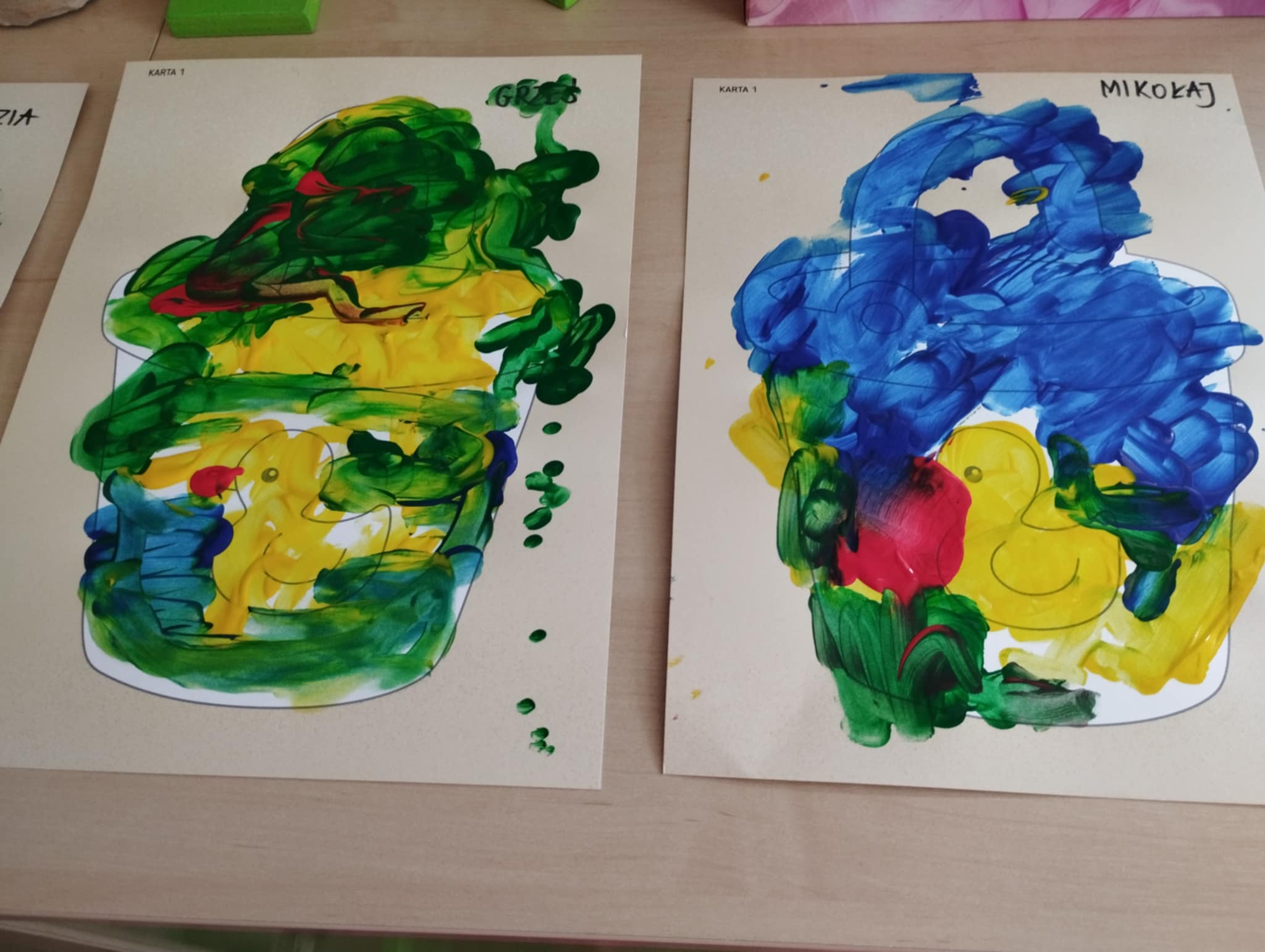 Zajęcia plastyczne są kluczowe dla wszechstonnego rozwoju dziecka. Rozwijają jego wyobraźnię, sprawność manualną, zainteresowana oraz zdolności plastyczne. Są świetną okazją do wyrażania swoich emocji oraz wkraczania w otaczający świat - bycie przedszkolakiem kreatywnie. Mając powyższe na uwadze zorganizowałyśmy naszym Sówkom zajęcia edukacyjne w formie zabawy plastycznej. Zaproponowałyśmy technikę paluszkowania. Wykorzystując własne paluszki jako narzędzie dzieci poznawały: zmysły ( dotyku i wzroku) , podstawowe kolory oraz wyzwalały swoje emocje w formie plastycznej.