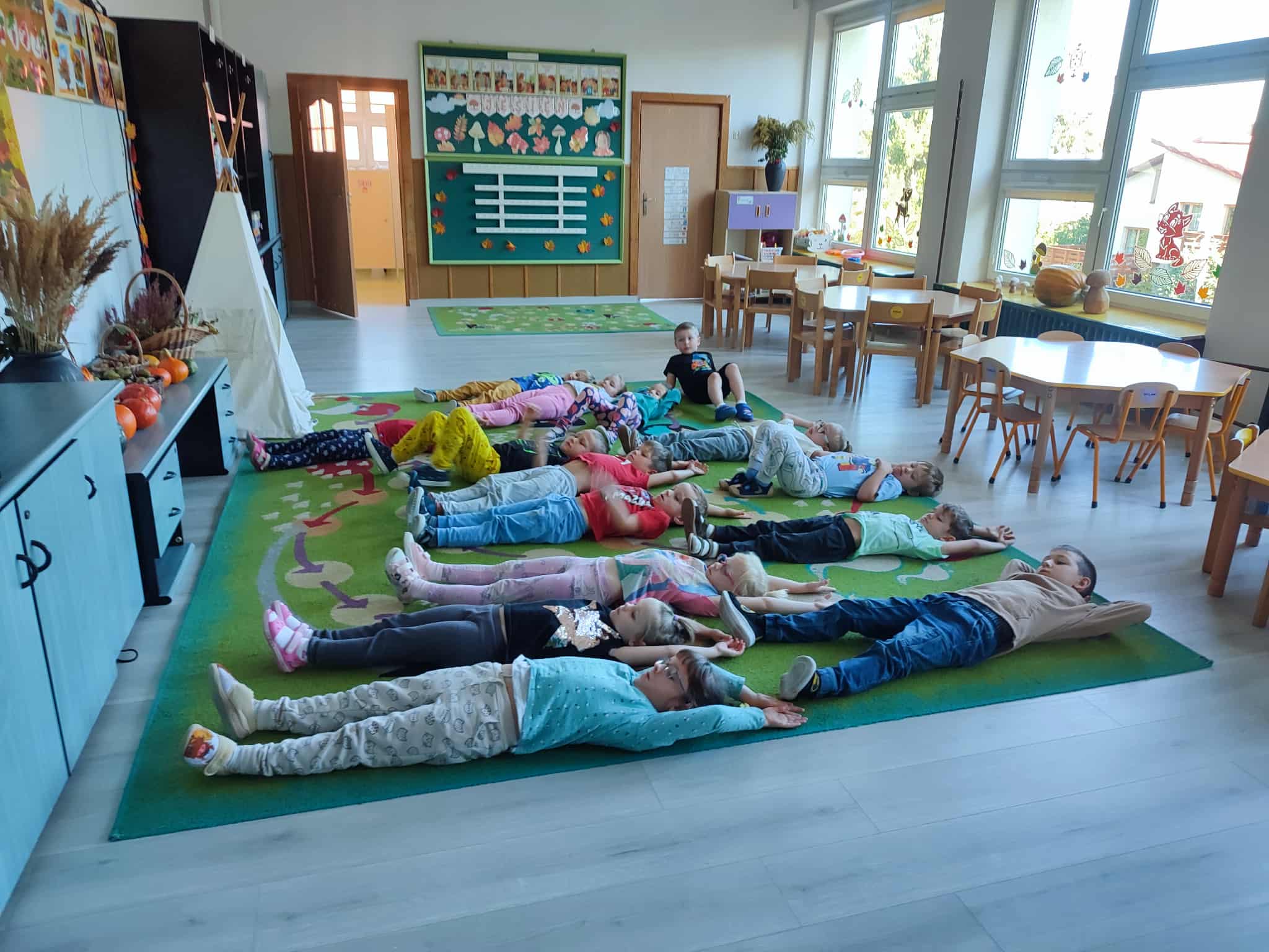 Razem odkrywaliśmy także uroki nowej pory roku – jesieni. Podczas spacerów dzieci z ciekawością szukały darów jesieni: kolorowych liści, kasztanów i żołędzi. Była to doskonała okazja, by uczyć się poprzez obserwację i kontakt z naturą.