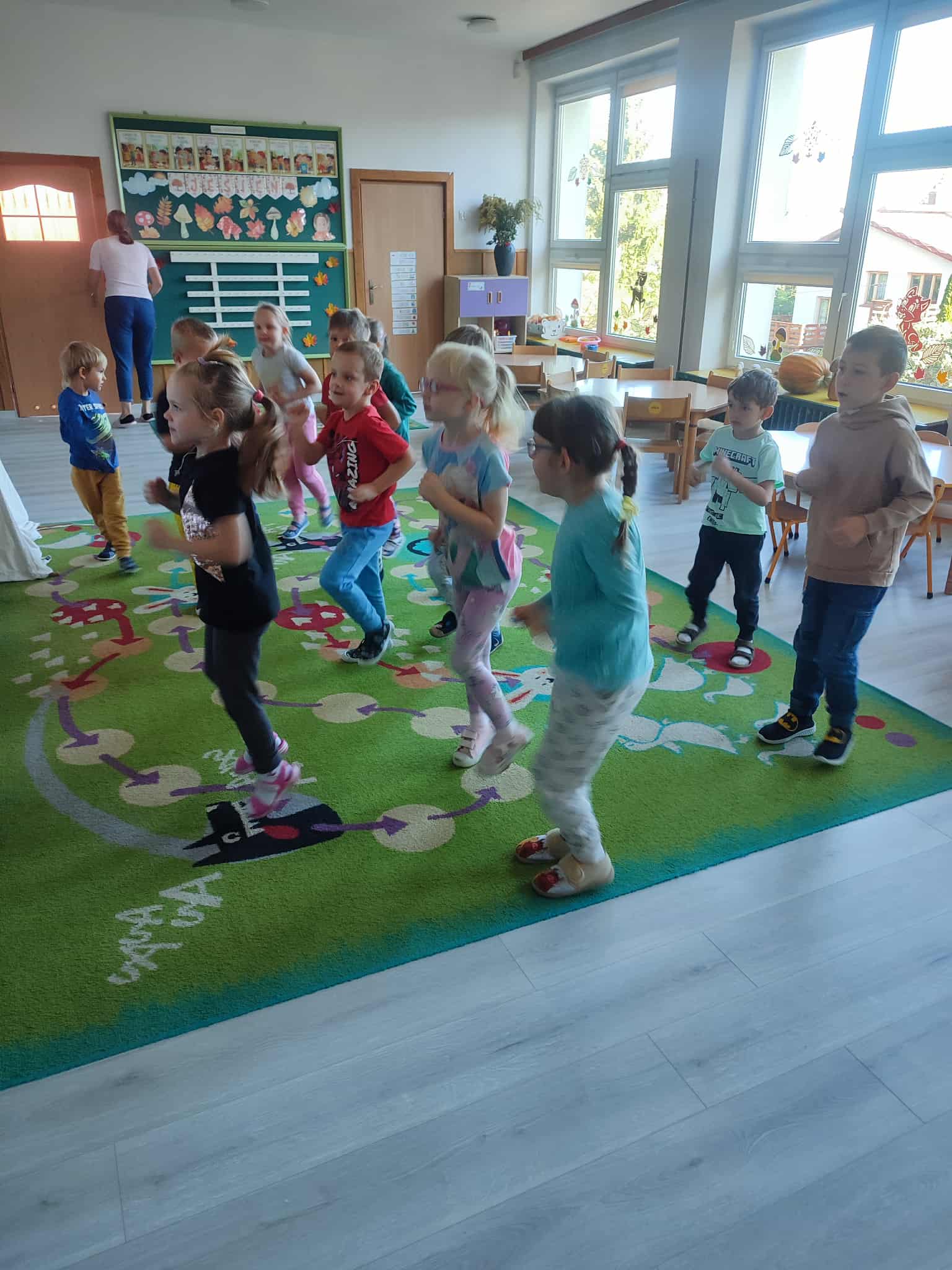 Nie zabrakło również zajęć ruchowych, podczas których dzieci rozwijały swoją sprawność, uczyły się współpracy i czerpały radość z aktywności fizycznej.