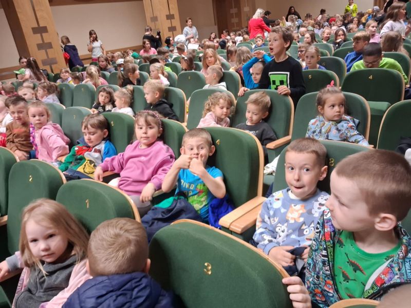 To był nie tylko spektakl – to była uczta dla zmysłów i serc! Kolorowe stroje, ciekawe aranżacje muzyczne, naturalność młodych wykonawców oraz ich ogromne zaangażowanie sprawiły, że cała sala była pełna uśmiechu, wzruszenia i pozytywnej energii. Dzieci z naszego przedszkola z zapartym tchem śledziły każdy występ, a niektóre nawet podśpiewywały razem z artystami – tak dobrze znały prezentowane teksty!