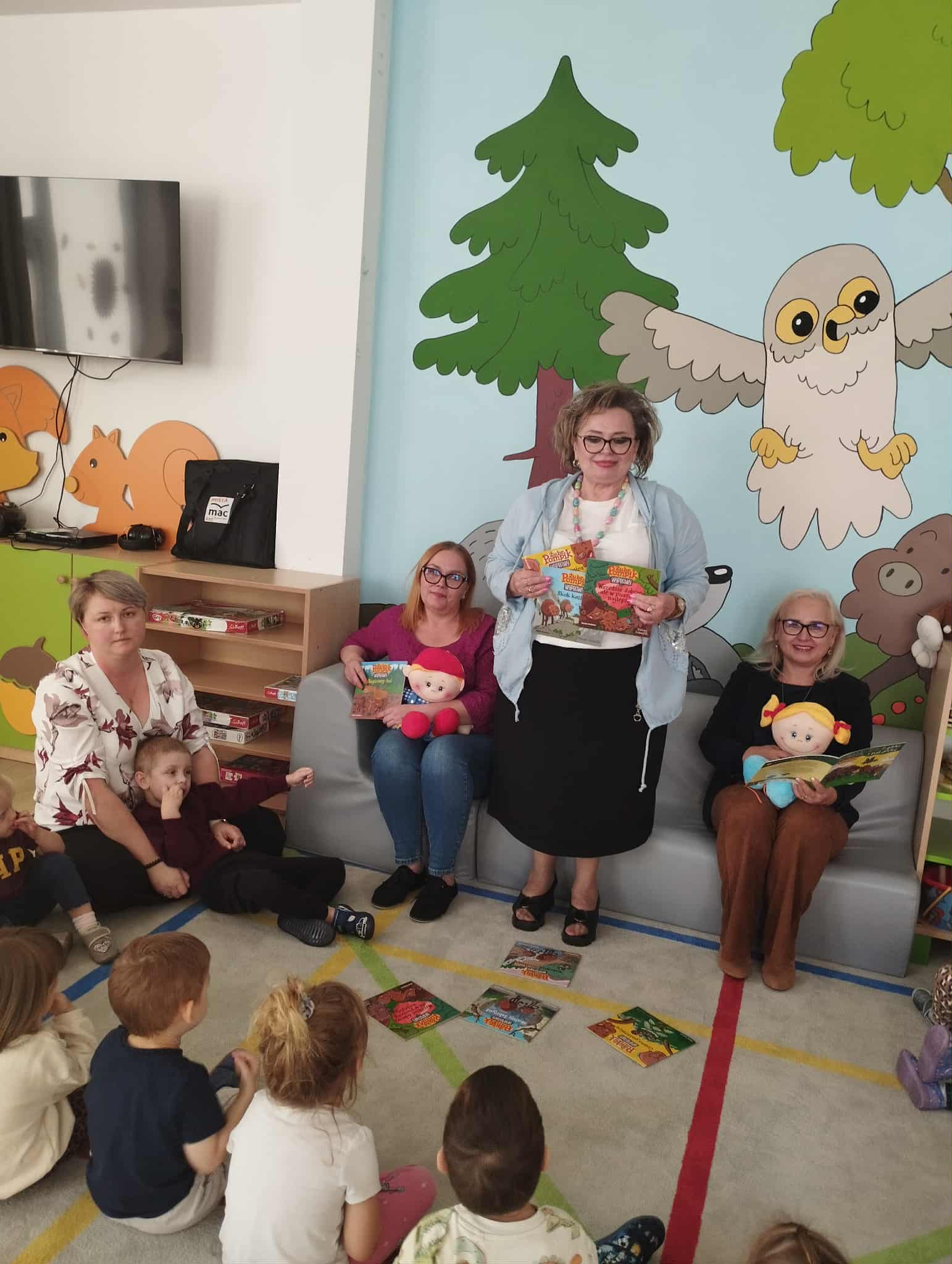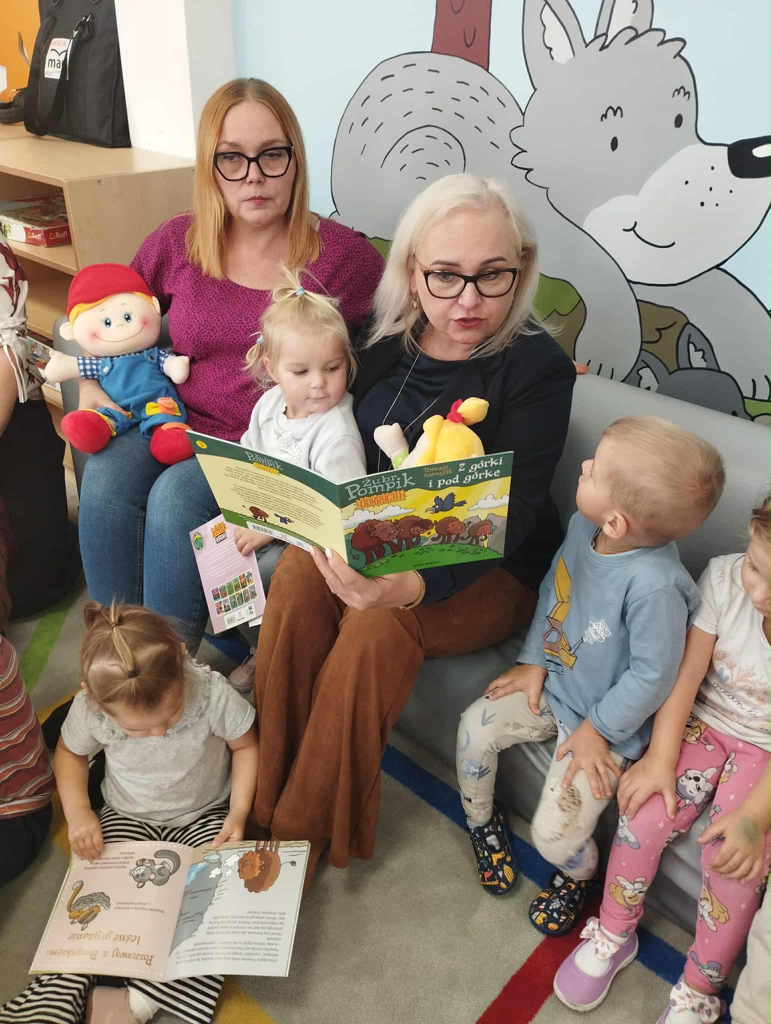 Już od 2001 w ramach kampanii Cała Polska Czyta Dzieciom jest prowadzony dzień głośnego czytania. Nasze maluszki z grupy Sówek po raz pierwszy w tym roku miały możliwość uczestniczenia w akcji, która propaguje codzienne czytanie dzieciom. Czytanie dzieciom na głos ma ogromny wpływ na rozwój dziecka, wzbogaca słownictwo, pobudza wyobraźnię. Oprócz tego stymuluje rozwój mózgu,rozwija wyobraźnię i kreatywność, wzbogaca słownictwo,rozwija językowo, pozwala budować więzi poprzez wspólne i miłe spędzanie czasu,daje poczucie bezpieczeństwa i wyrabia w dziecku nawyk czytania książek na całe życie. Akcję zorganizowały nauczycielki grupy i zaprosiły do czytania dzieciom panie: dyrektor przedszkola D. Durzyńską oraz wicedyrektor B . Wołodkiewicz. Panie dyrektorki przygotowały lekturę do czytania i jak przystało na przedszkole, którego patronem jest Żubr Pompik czytały Sówkom wybrane opowiadania o Żubrze Pompiku autorstwa pana Tomasza Samojlika. Przygody Pompika bardzo zainteresowały nasze Sówki i będą słuchały ich przygód codziennie a nie tylko okazjonalnie jak w dniu dzisiejszym.