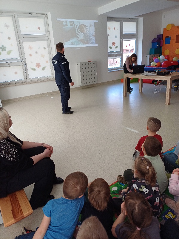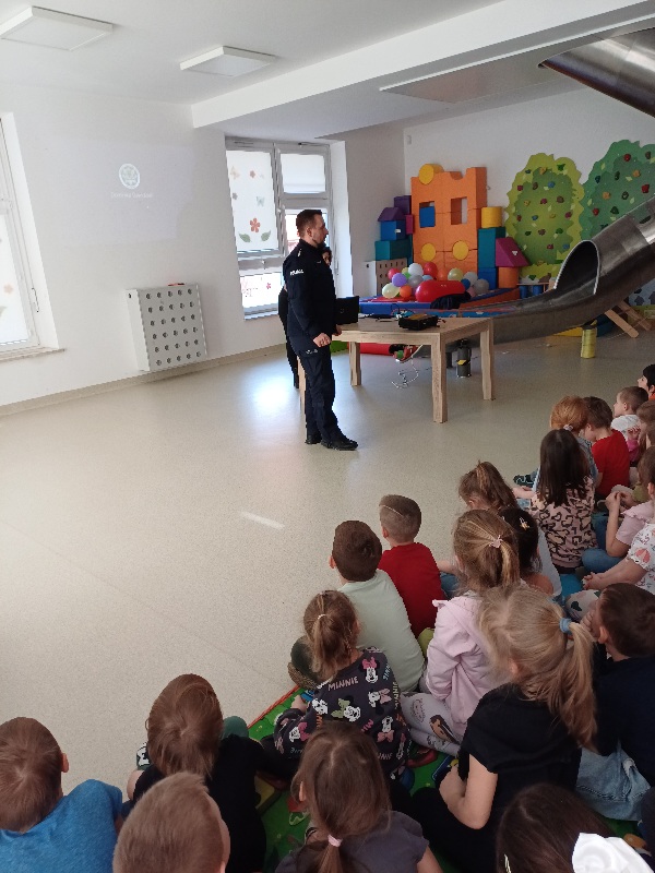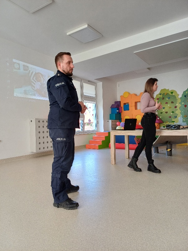 Podczas zajęć dzieci dowiedziały się, jak mądrze i bezpiecznie korzystać z Internetu. Policjanci w przystępny i ciekawy sposób opowiedzieli o zasadach, które warto zapamiętać, aby unikać zagrożeń w sieci. Poruszono m.in. takie tematy jak:
