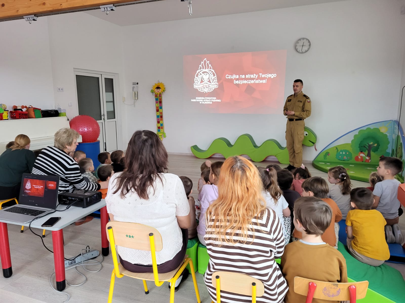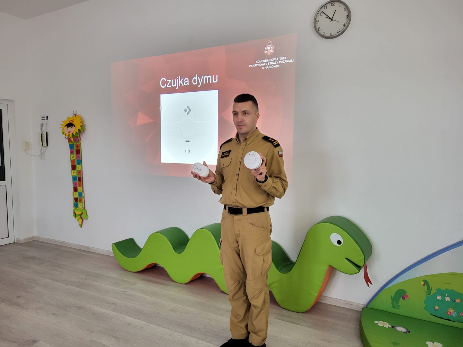25 listopada 2025 r. w Przedszkolu nr 3 z Oddziałami Integracyjnymi im. Żubra Pompika w Hajnówce odbyło się spotkanie z dwoma najstarszymi grupami przedszkolaków dotyczące zagrożeń jakie mogą wystąpić w domach/mieszkaniach szczególnie w okresie grzewczym oraz podstawowych zasad zachowania się w sytuacji zagrożenia.