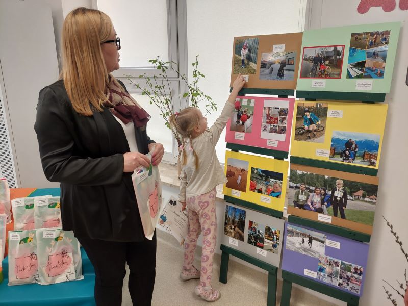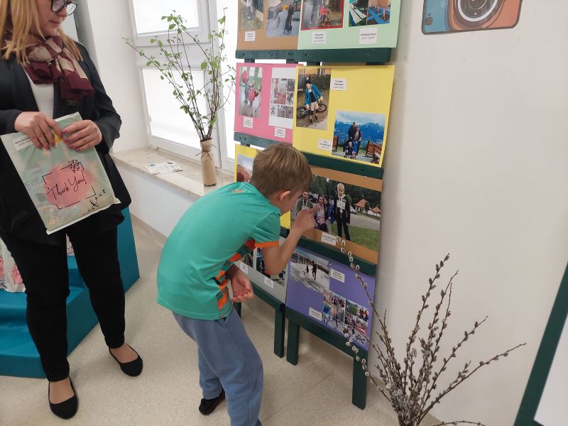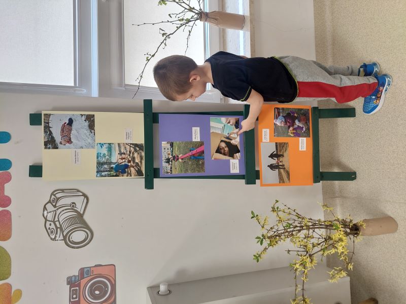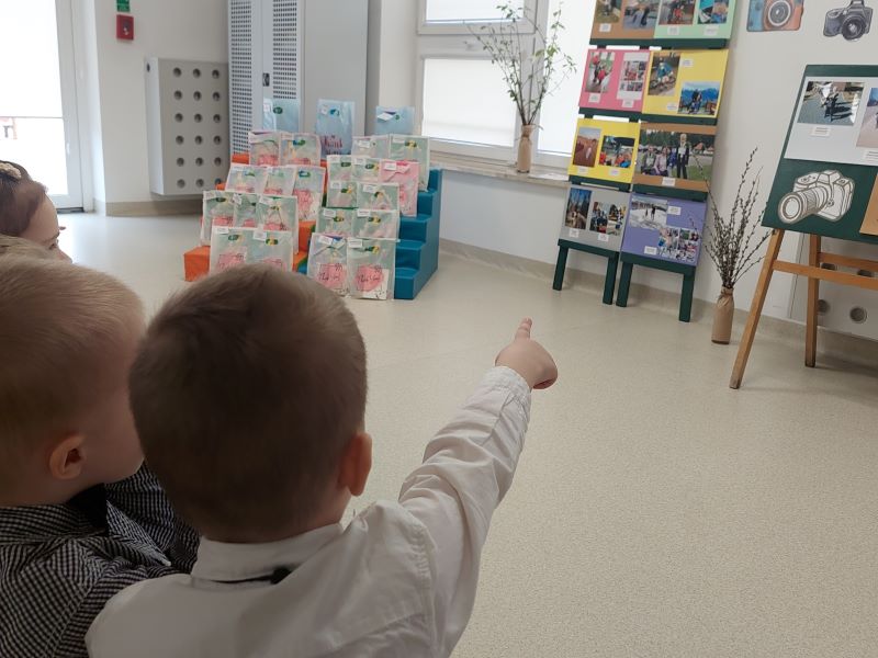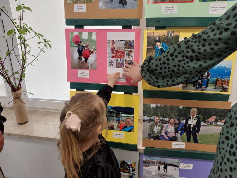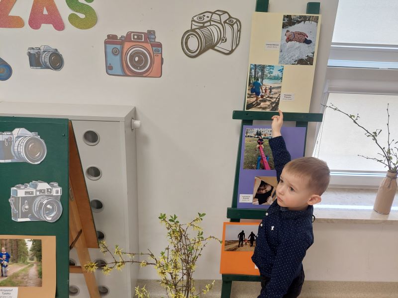 Pani Dyrektor Dorota Ewelina Durzyńska z dumą i uśmiechem podziwiała prace przedszkolaków, wsłuchując się w ich opowieści o kulisach powstawania zdjęć. Każda fotografia miała swoją historię – pełną śmiechu, ruchu i rodzinnego ciepła. Dzieci z dumą prezentowały swoje prace, dzieląc się emocjami, jakie towarzyszyły im podczas wspólnej zabawy.