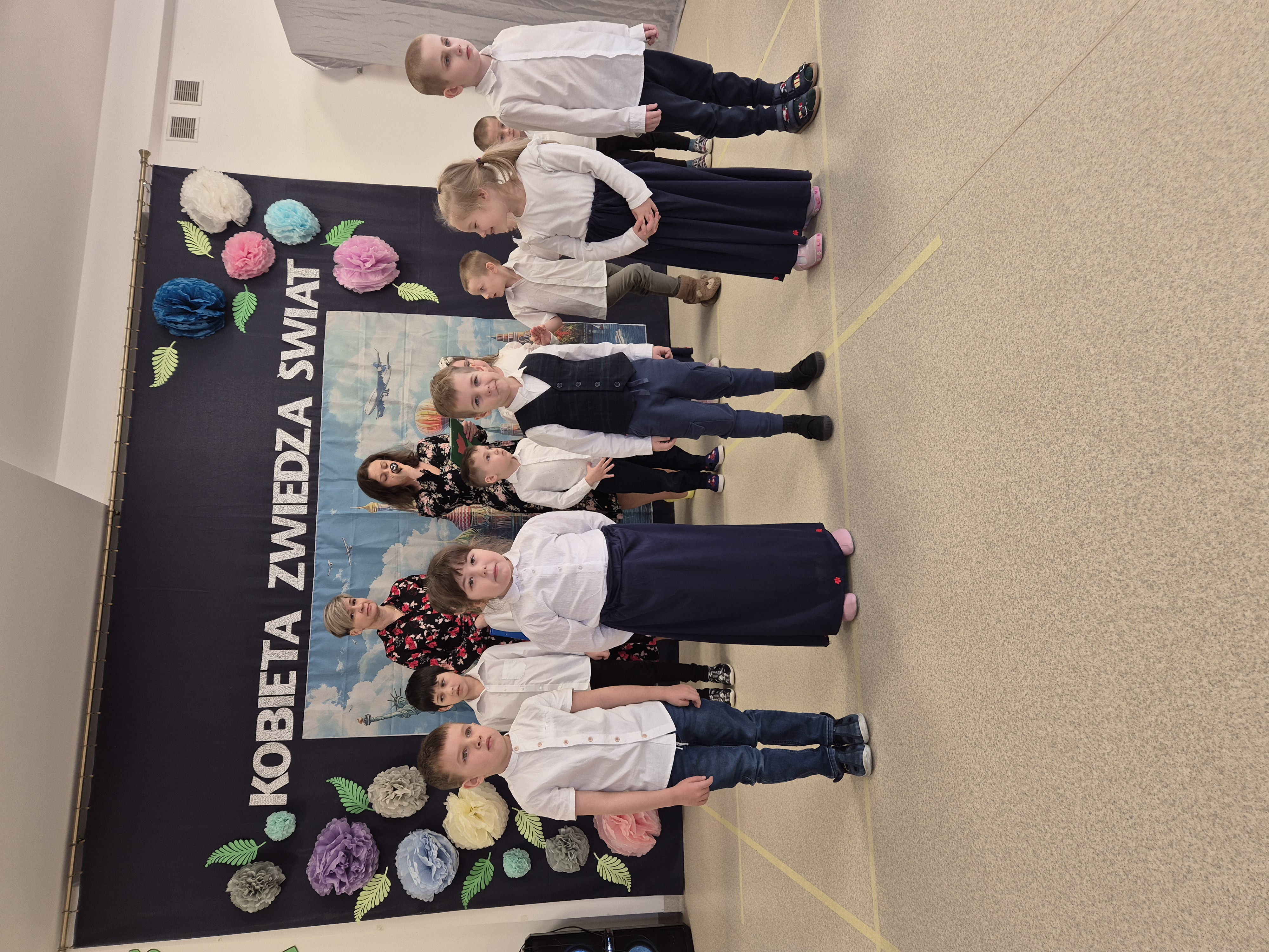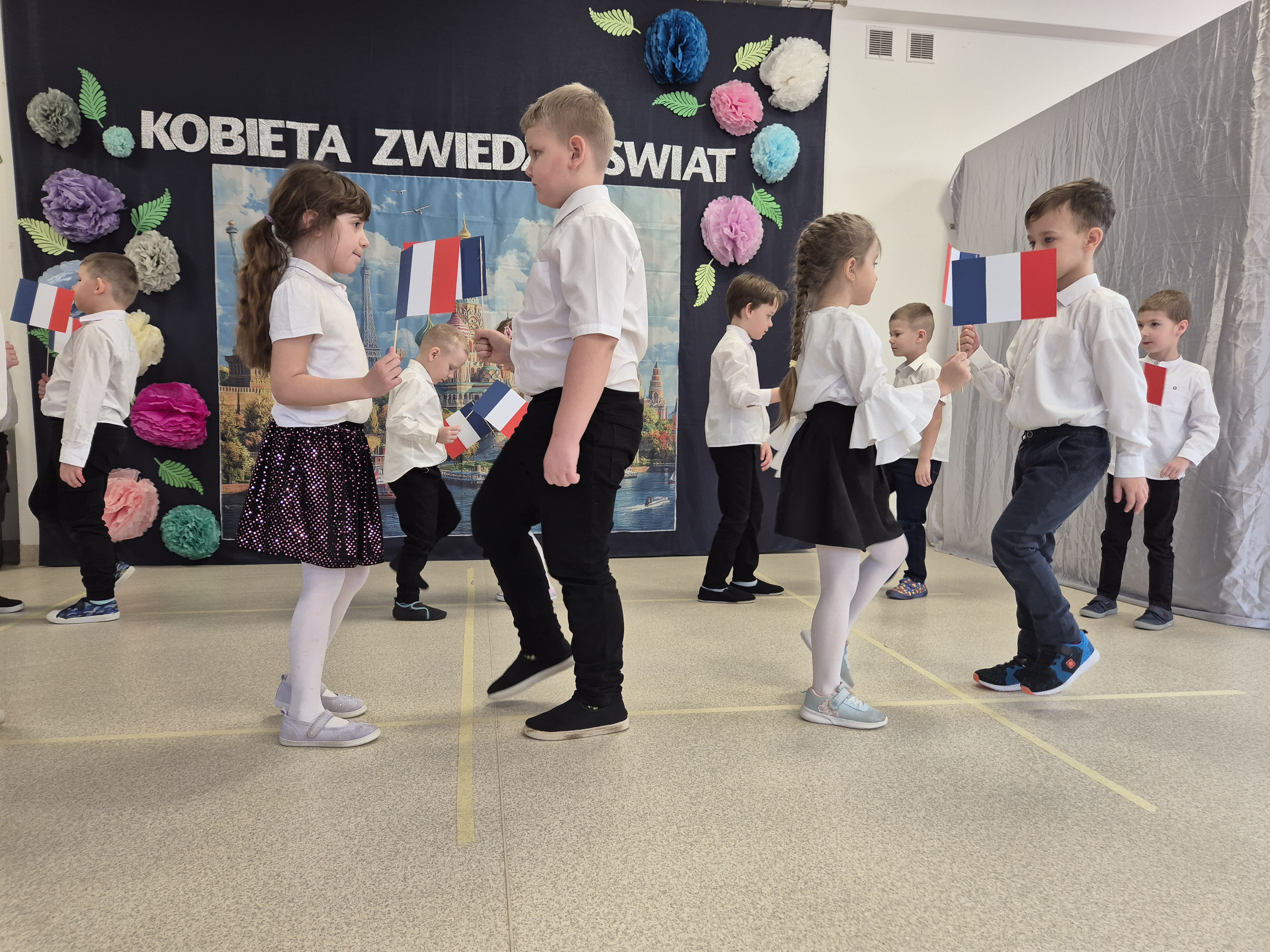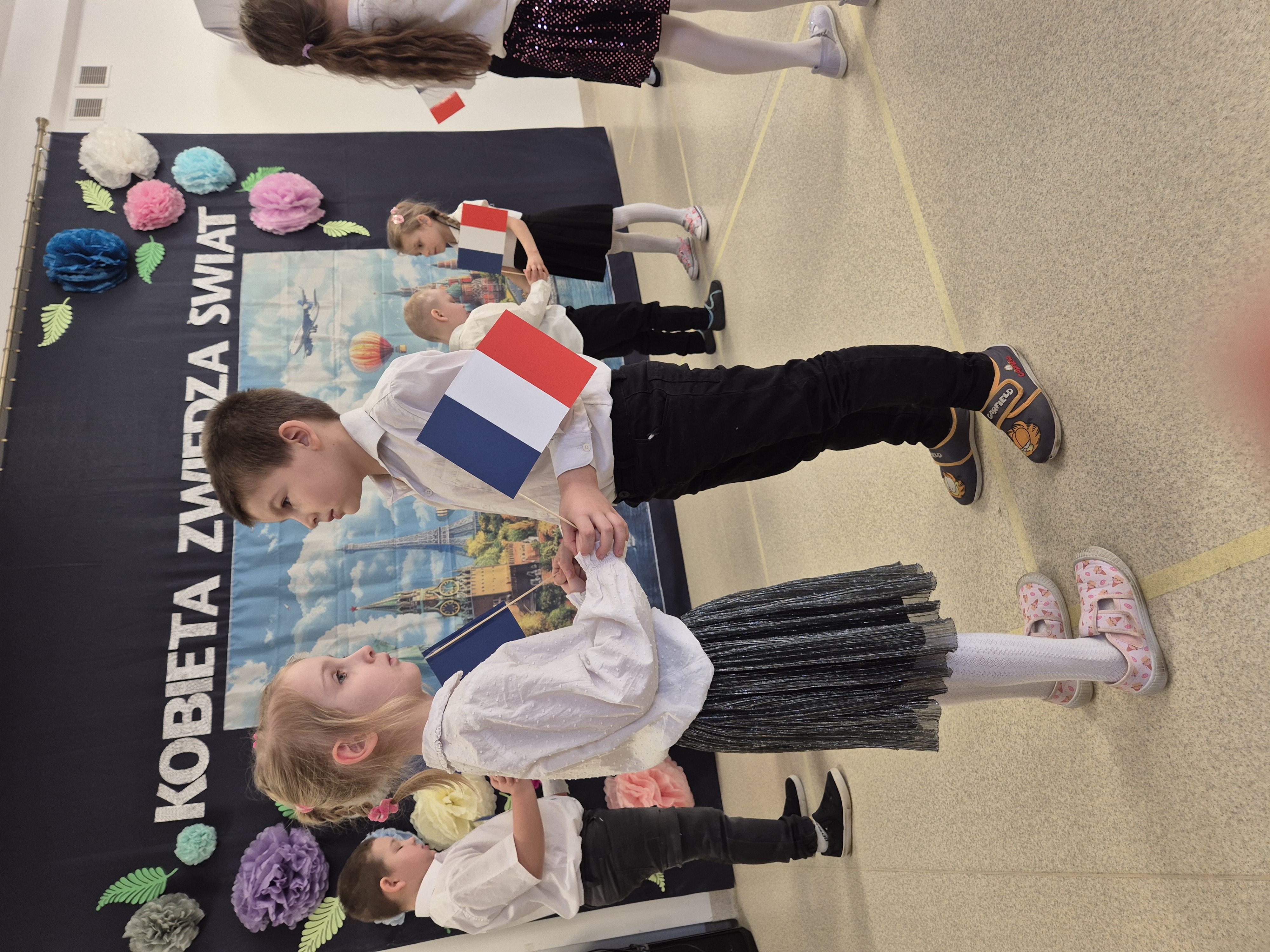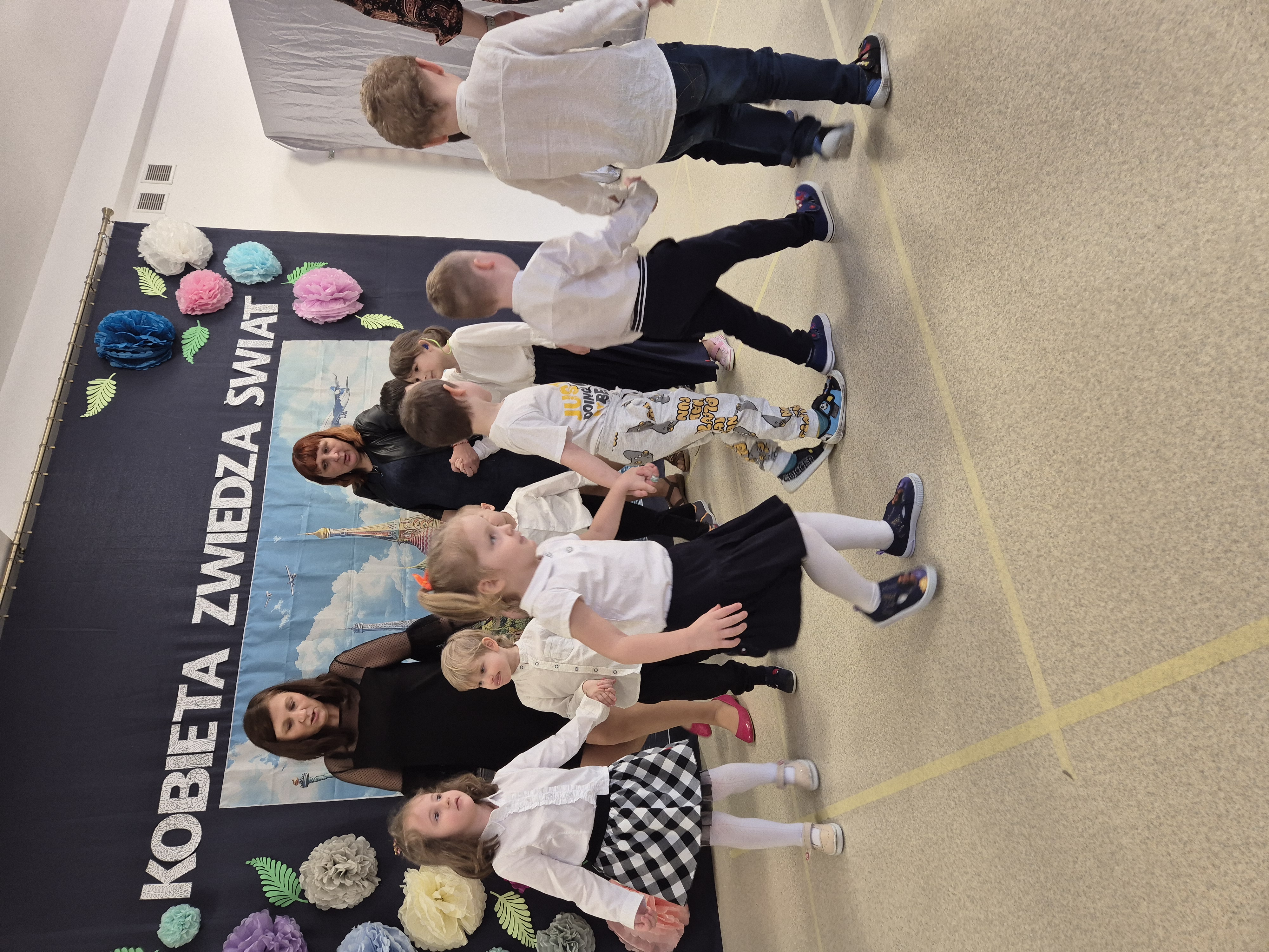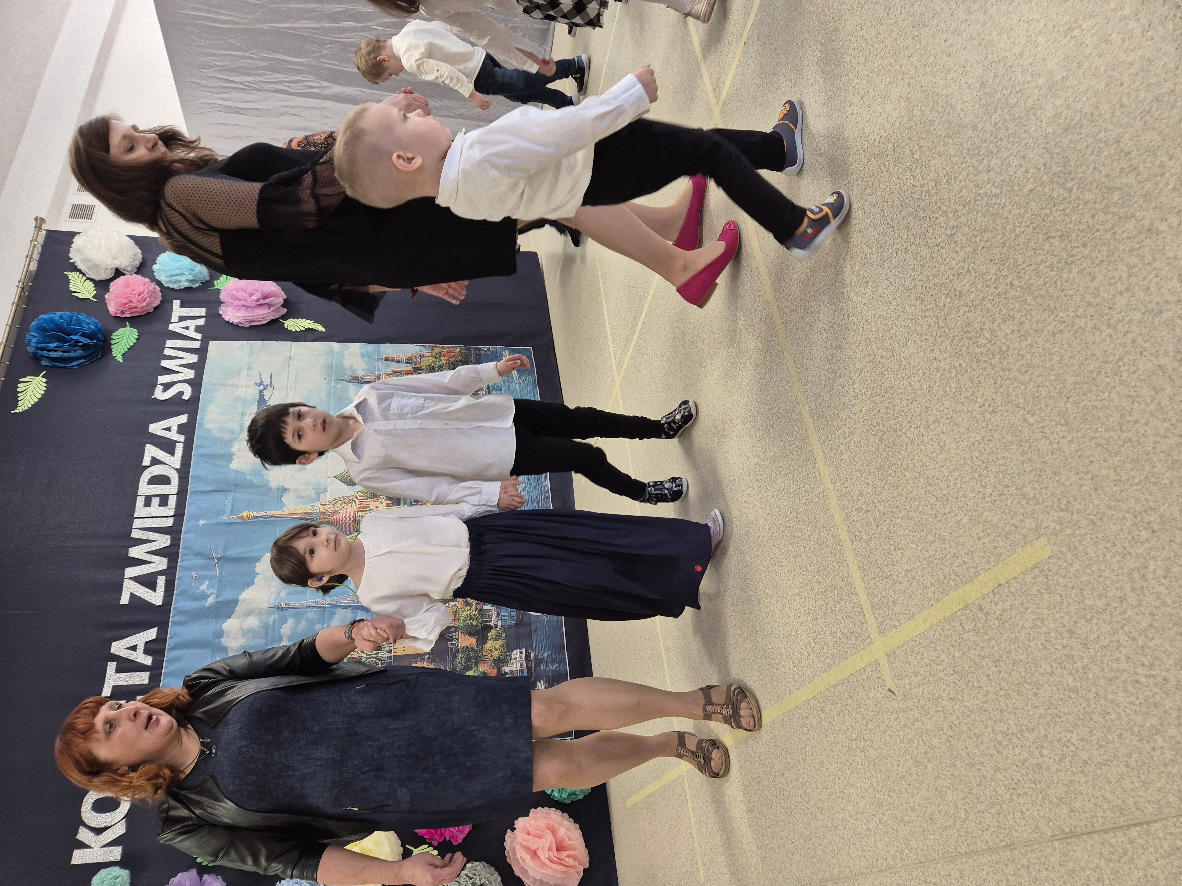 W tym roku podczas obchodów 8 marca w naszym przedszkolu dzieci przygotowały dla wszystkich pracowników placówki program artystyczny, który wspólnie rozpoczęły grupy Lisków i Rysiów „Piosenką o podróżach” zabierając publiczność na niezapomnianą wyprawę po świecie. Odwiedzając poszczególne kraje przedszkolaki ze wszystkich grup zaprezentowały wspaniałe występy w trakcie, których mogliśmy zobaczyć różne tańce, charakterystyczne dla wybranych państw.