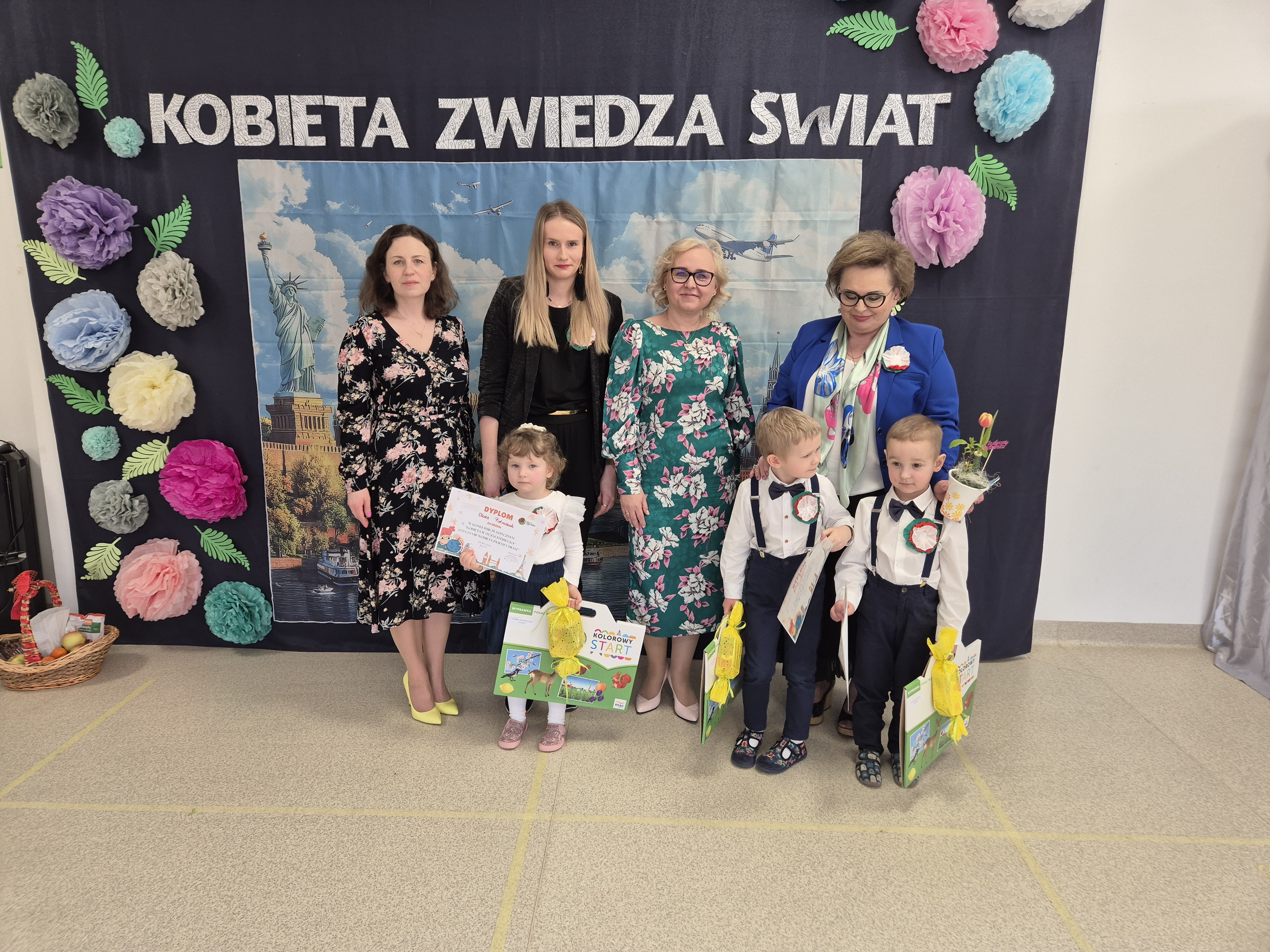 Przedszkolna gala była podsumowaniem VIII edycji Konkursu plastycznego „Kobieta w oczach dziecka” pod patronatem Dyrektora Przedszkola Pani Doroty Eweliny Durzyńskiej. Tematem przewodnim tegorocznej edycji była „ Kobieta, która zwiedza świat” . W konkursie oprócz rozwijania talentów plastycznych dzieci, poszerzaliśmy zainteresowania związane z turystyką, a także promowaliśmy poszczególne regiony świata. Bohaterki prac konkursowych przedstawione zostały na tle różnych miast, miejscowości czy regionów świata.