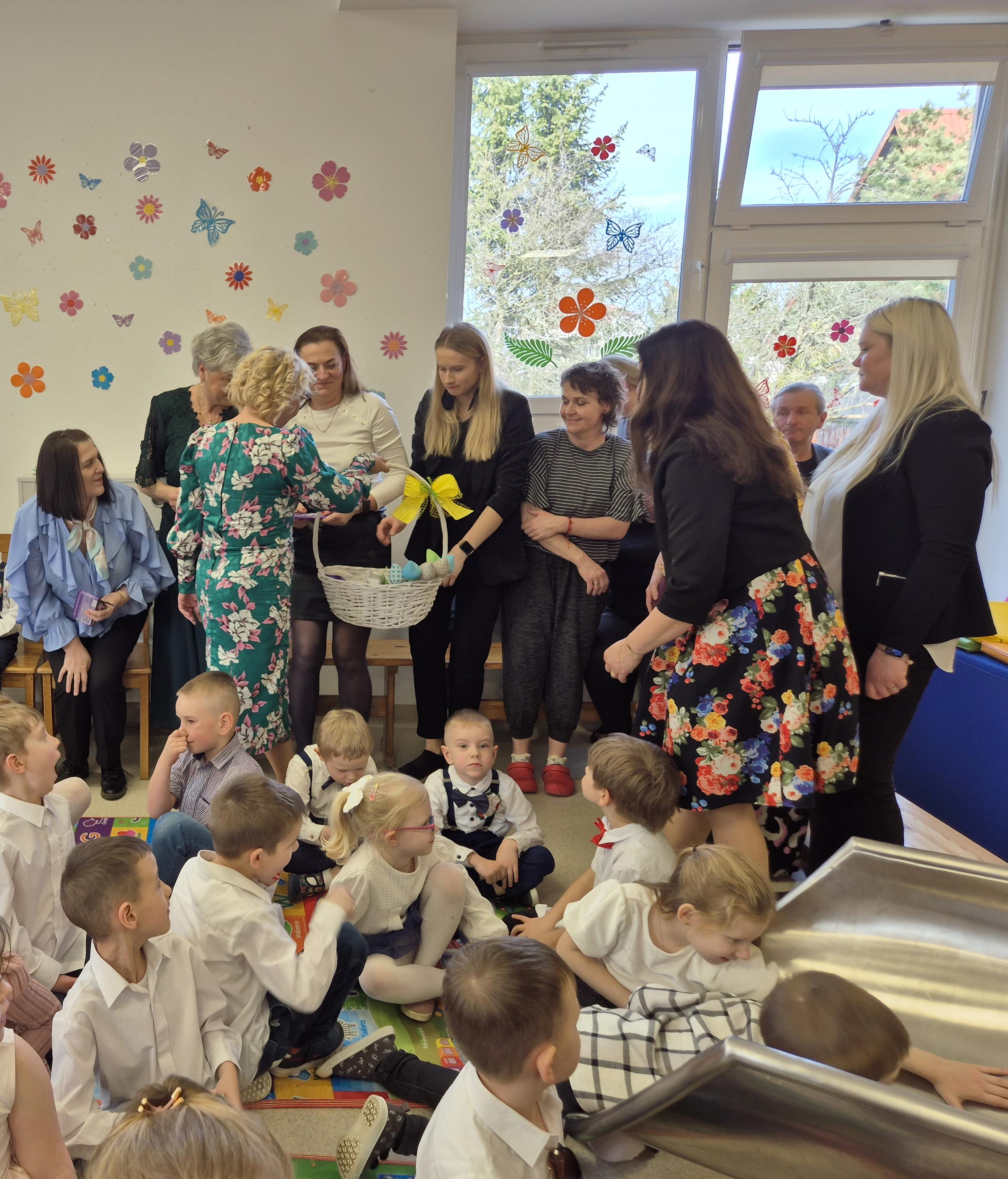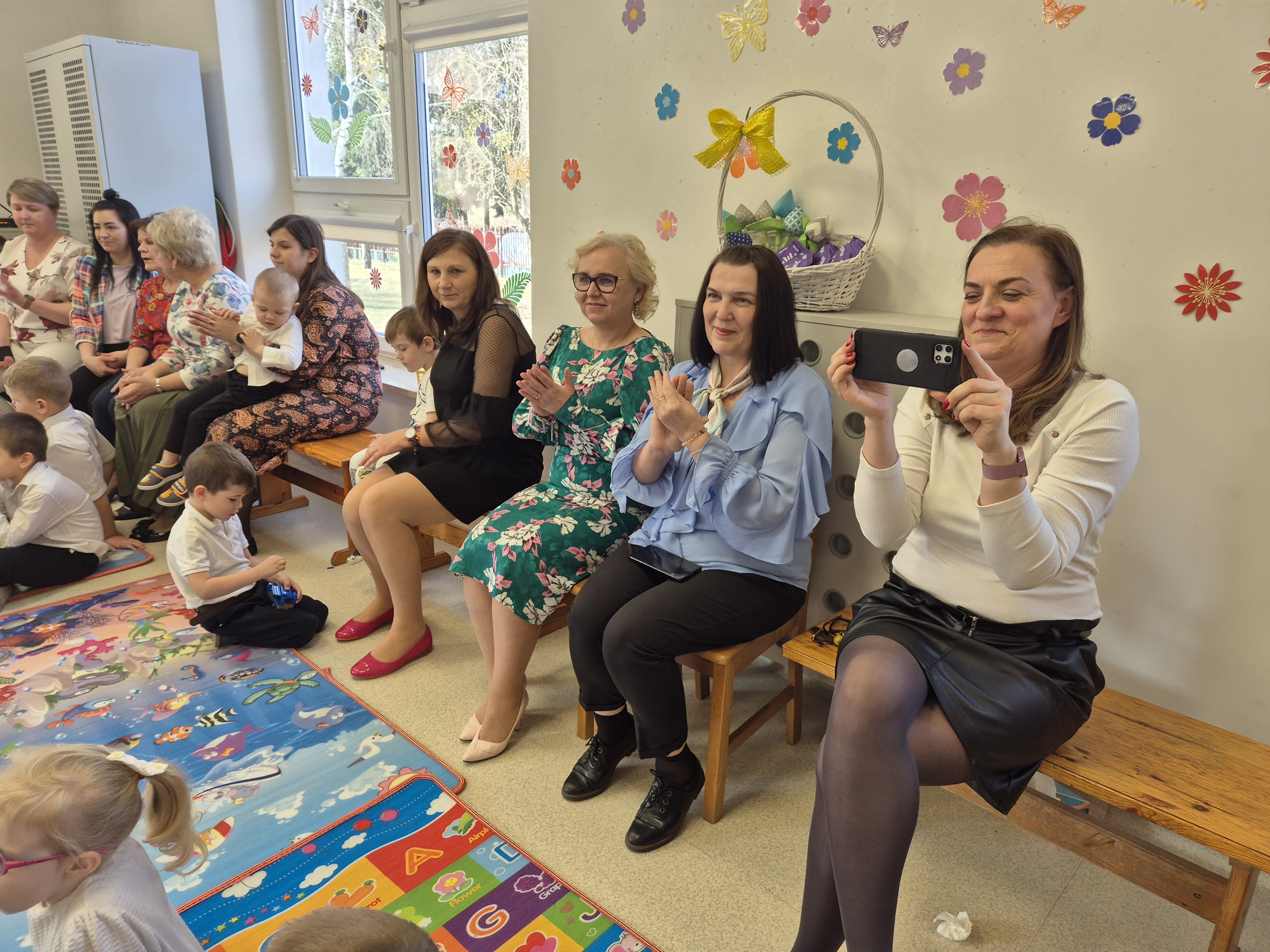 Moc ciepłych słów do zgromadzonych gości, pracowników i dzieci skierowała Dyrektor Przedszkola. Z wyrazami uznania za pięknie przedstawione interpretacje taneczne zwróciła się do przedszkolaków. Podziękowała pracownikom za rzetelne wykonywanie powierzonych obowiązków wręczając słodkie upominki. Przy tej też okazji złożyła wszystkim paniom serdeczne życzenia .