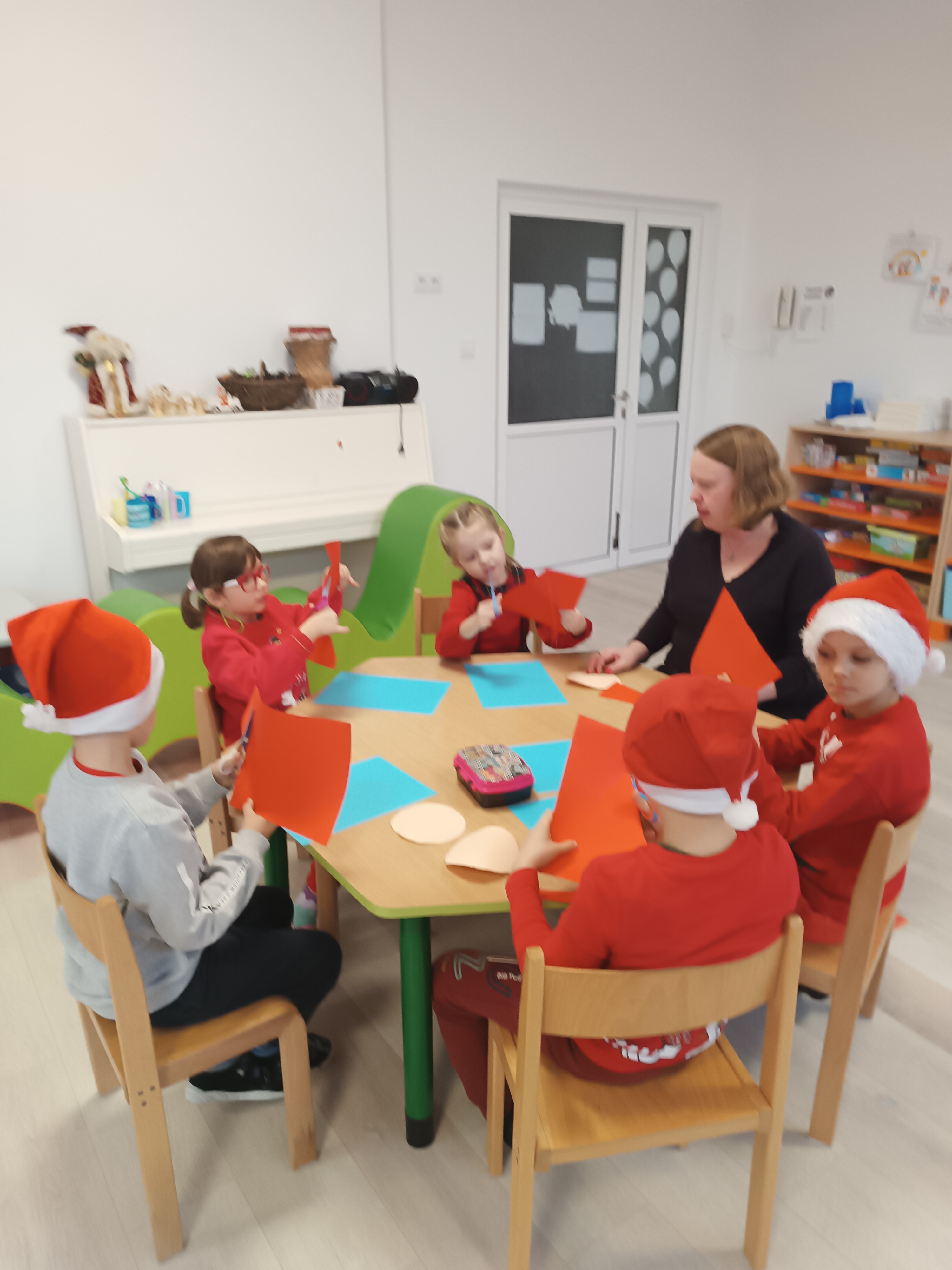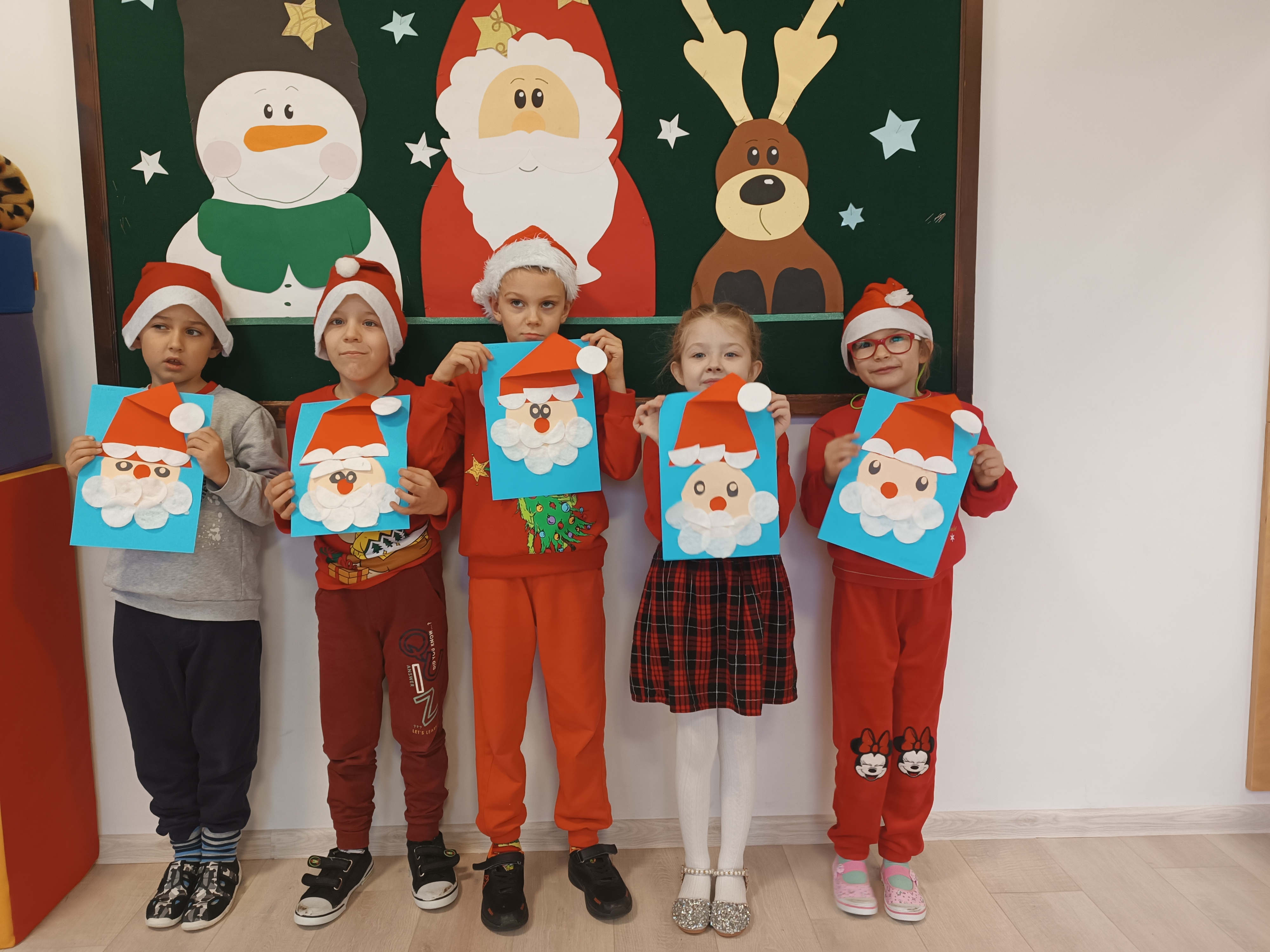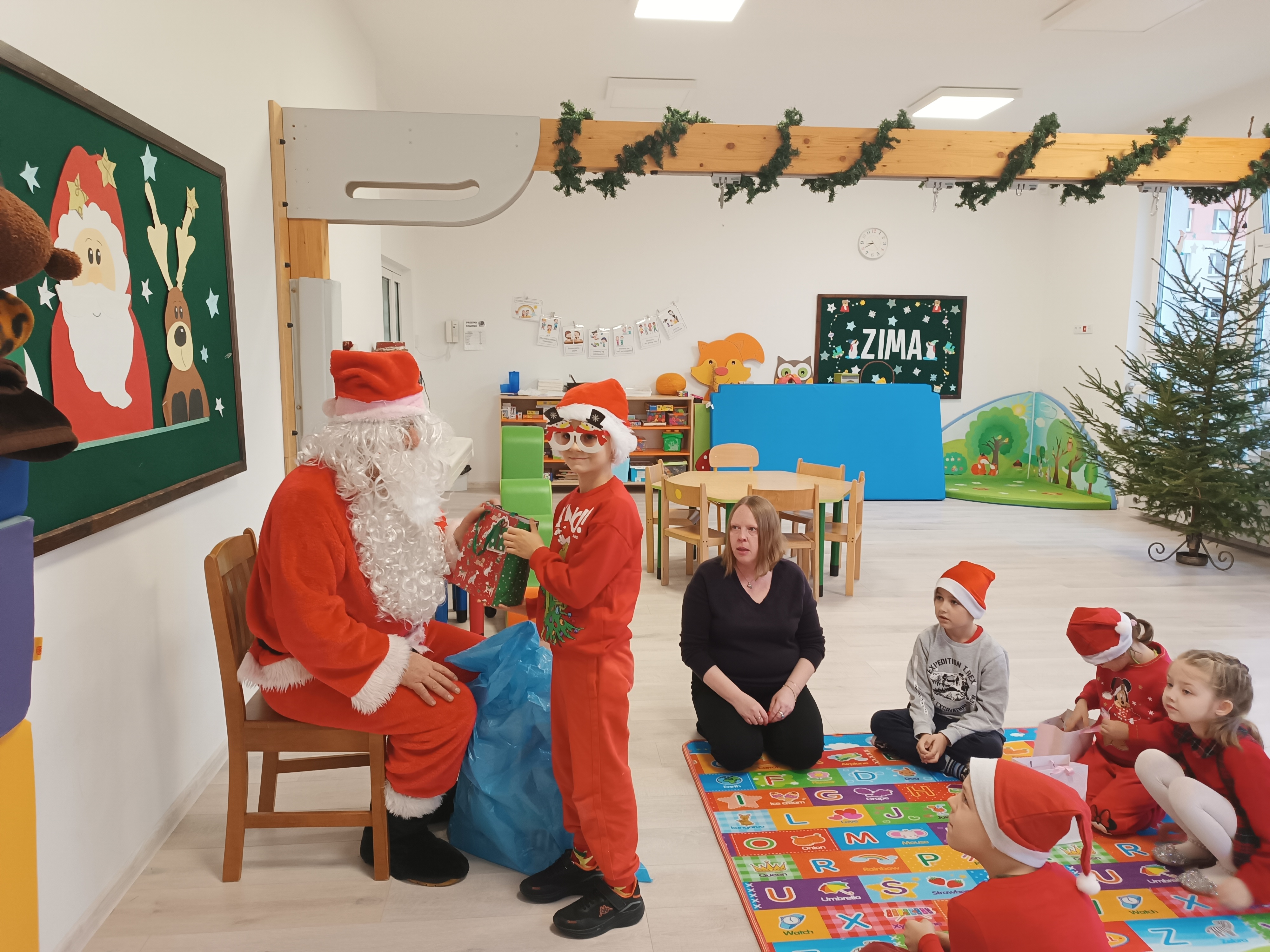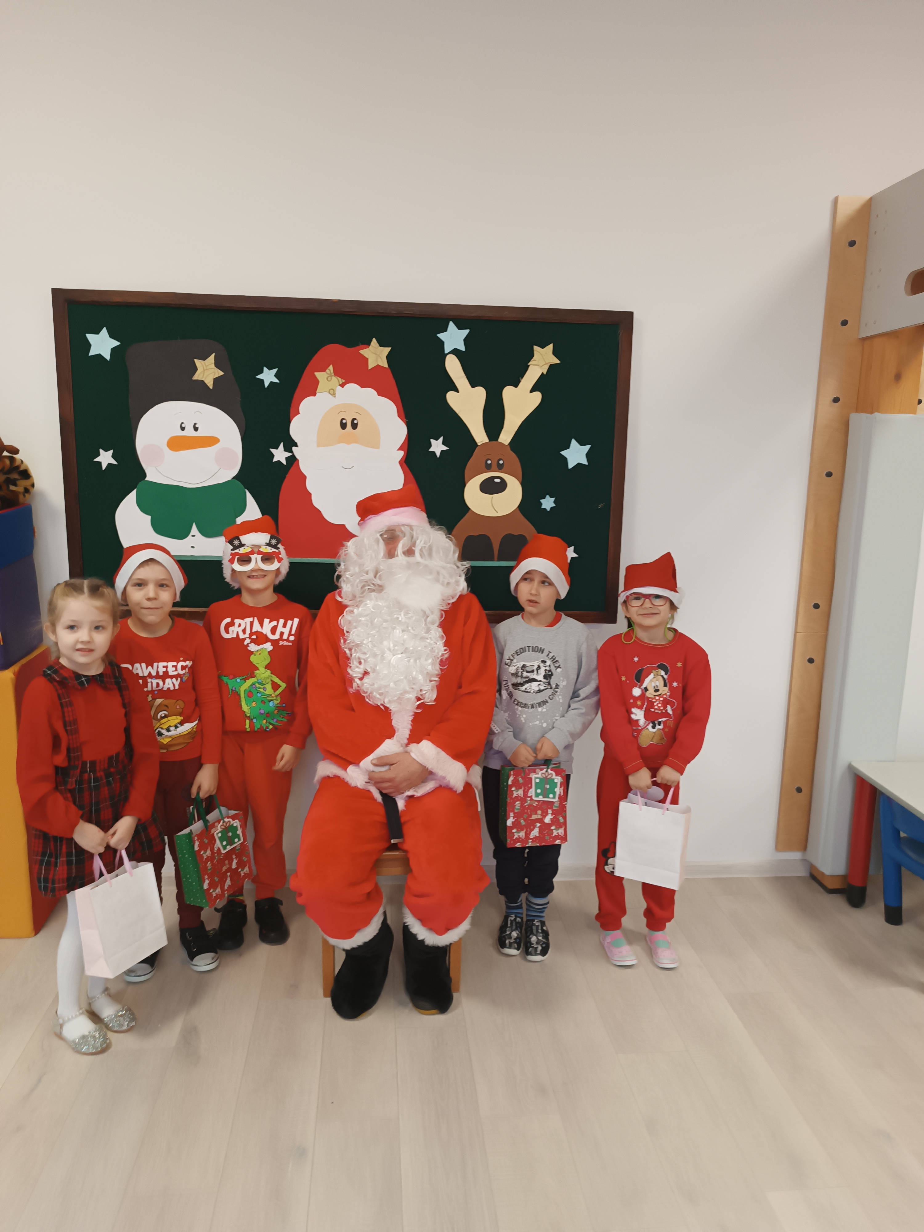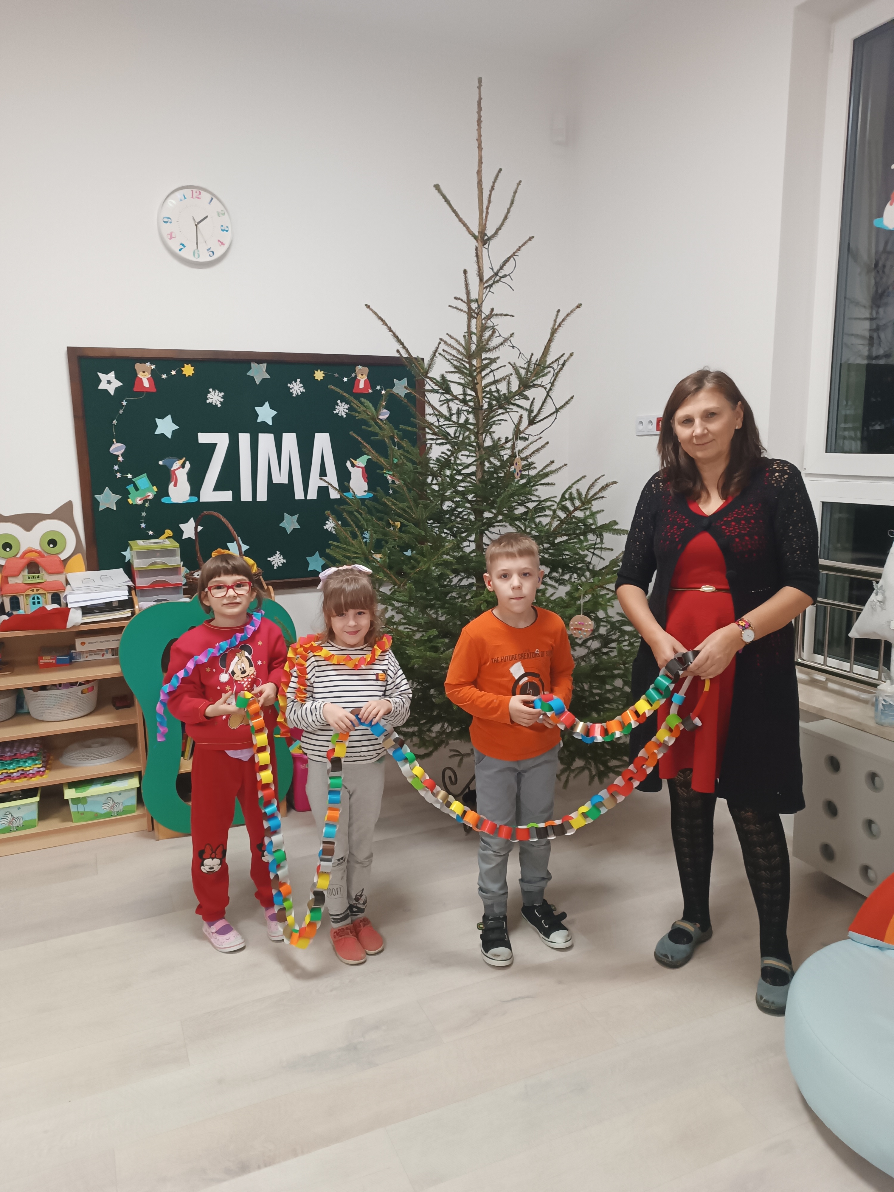 Świąteczny czas, to czas szczególny, kiedy to stajemy się wyjątkową przedszkolną rodziną. Salę ozdabiają piękne, zimowe dekoracje. Po całym przedszkolu unosił się zapach piernikowych ciasteczek. Odwiedził nas Mikołaj i każde dziecko otrzymało wyczekiwany prezent. Razem z Rodzicami wesoło bawiliśmy się w zabawy o tematyce zimowej i ubieraliśmy choinkę w kolorowe tradycyjne łańcuchy. Przegryzaliśmy pierniki i śpiewaliśmy kolędy... Nasze serca wypełniły miłość i radość!