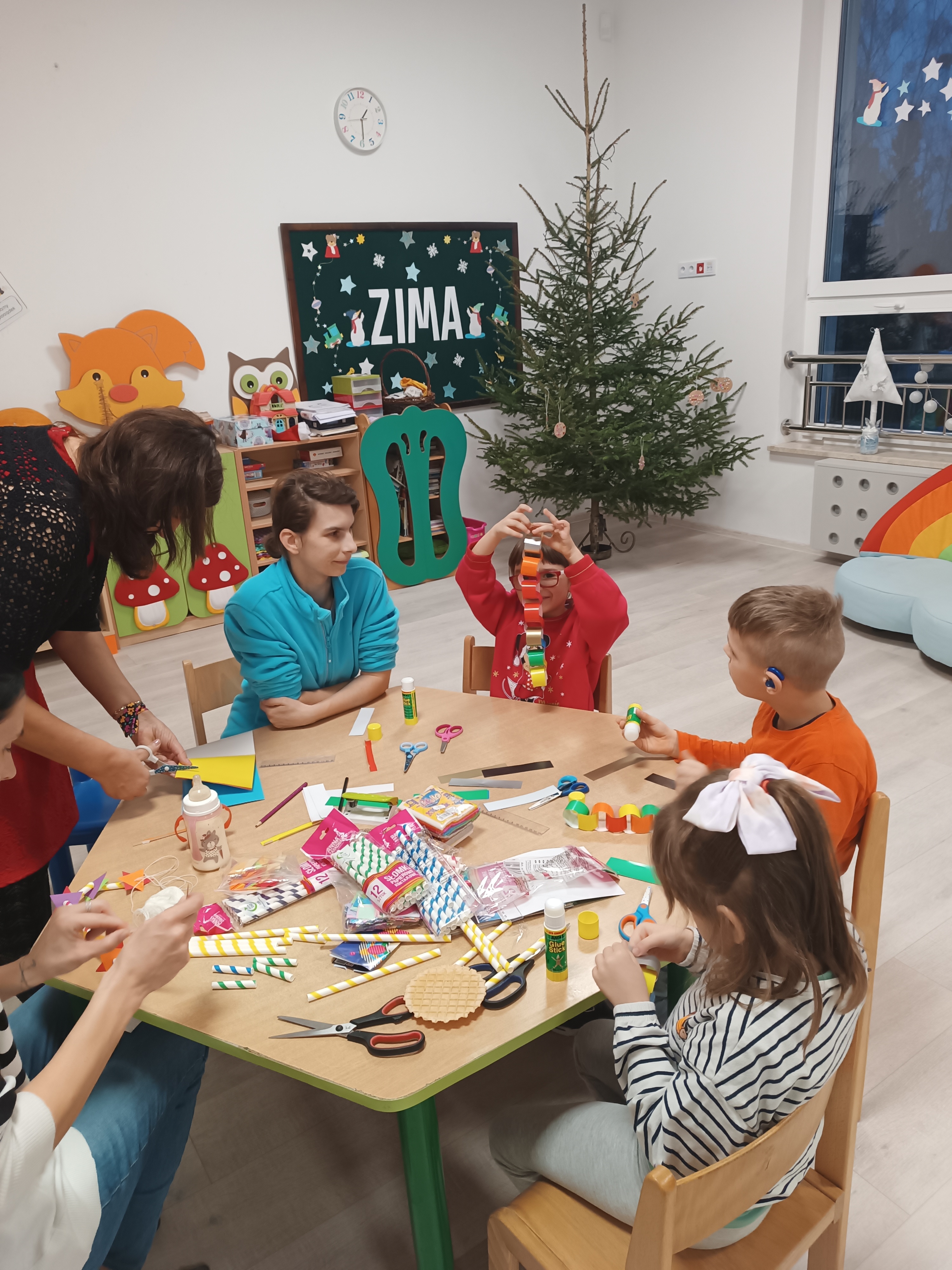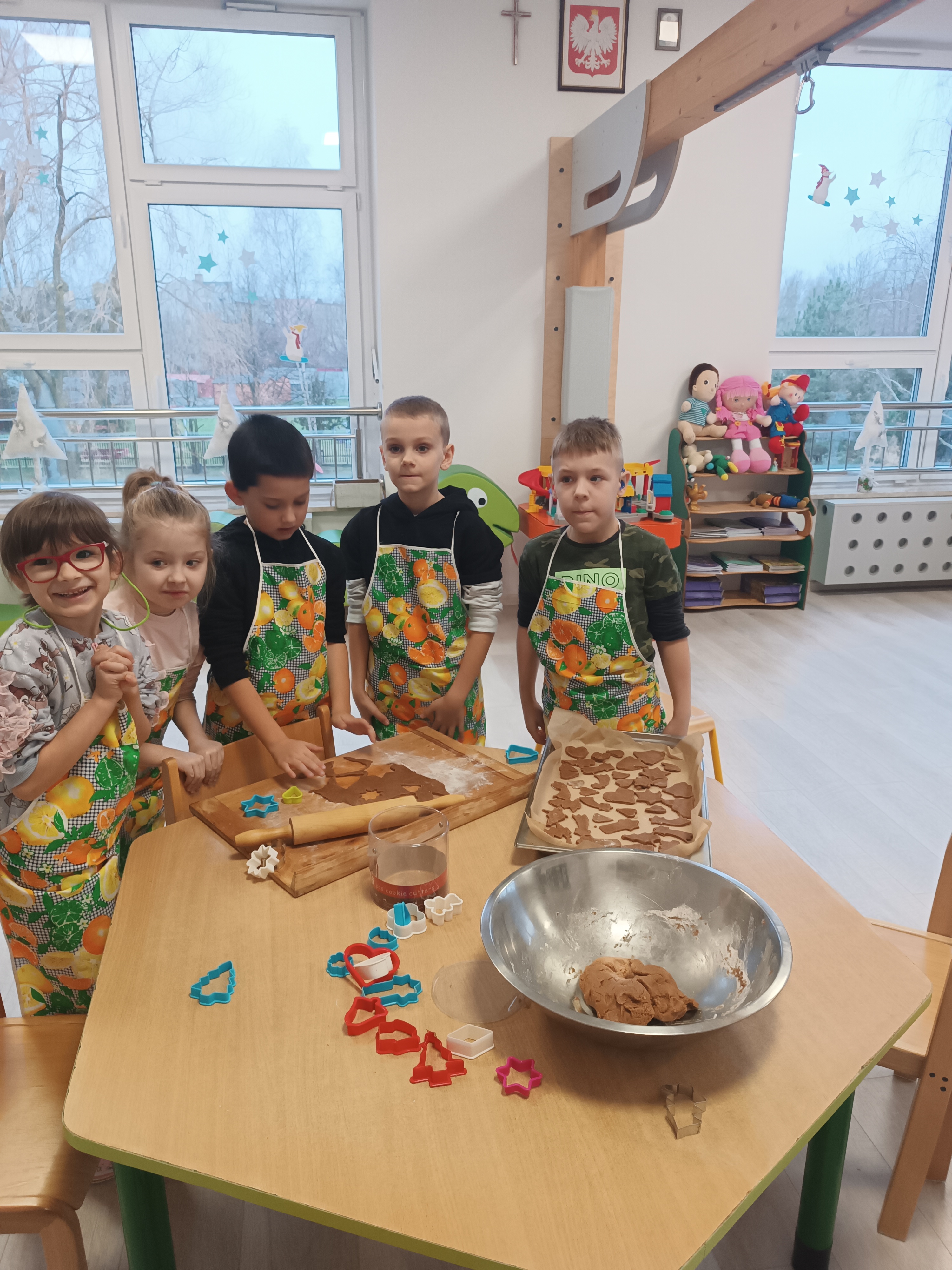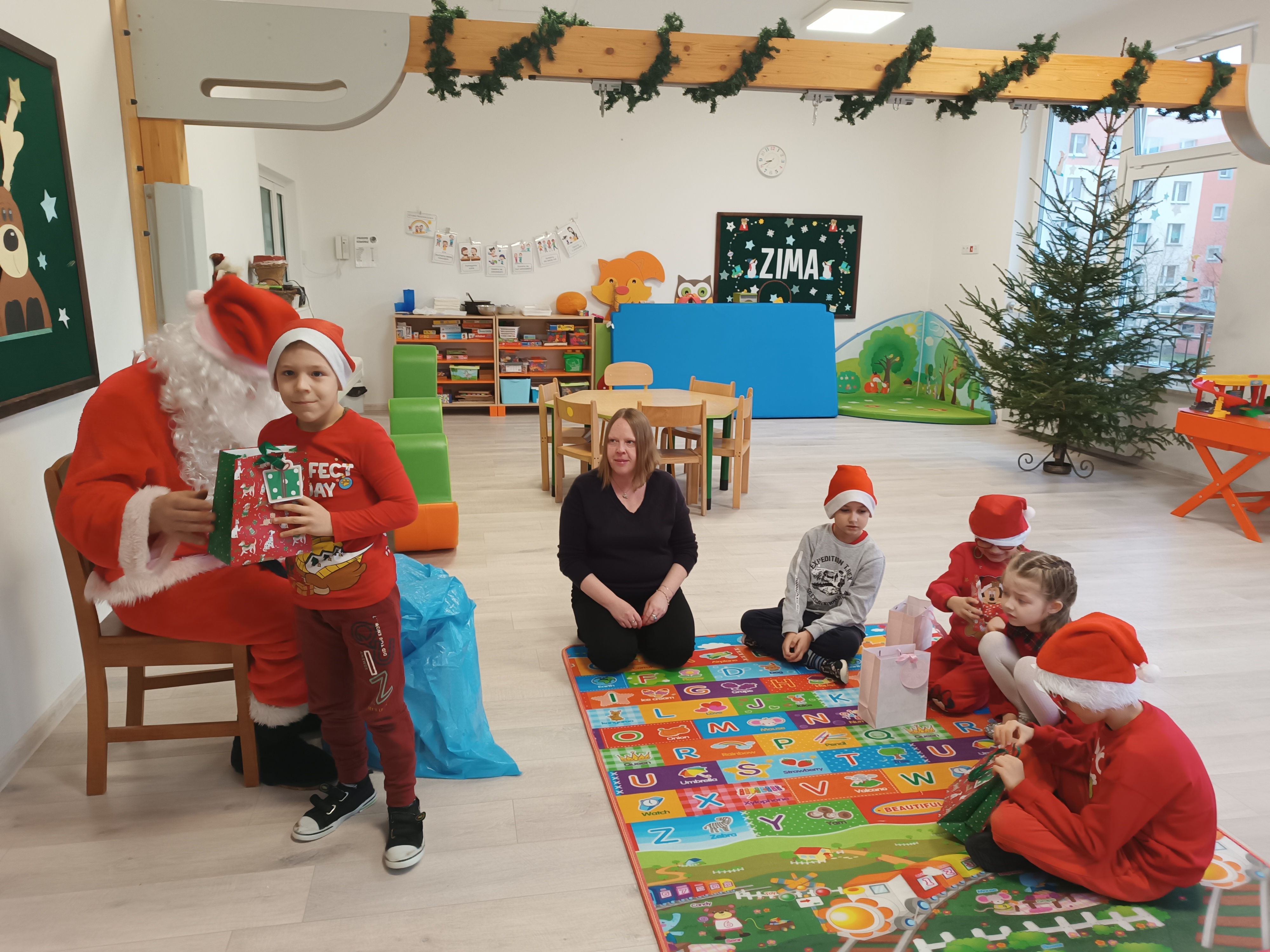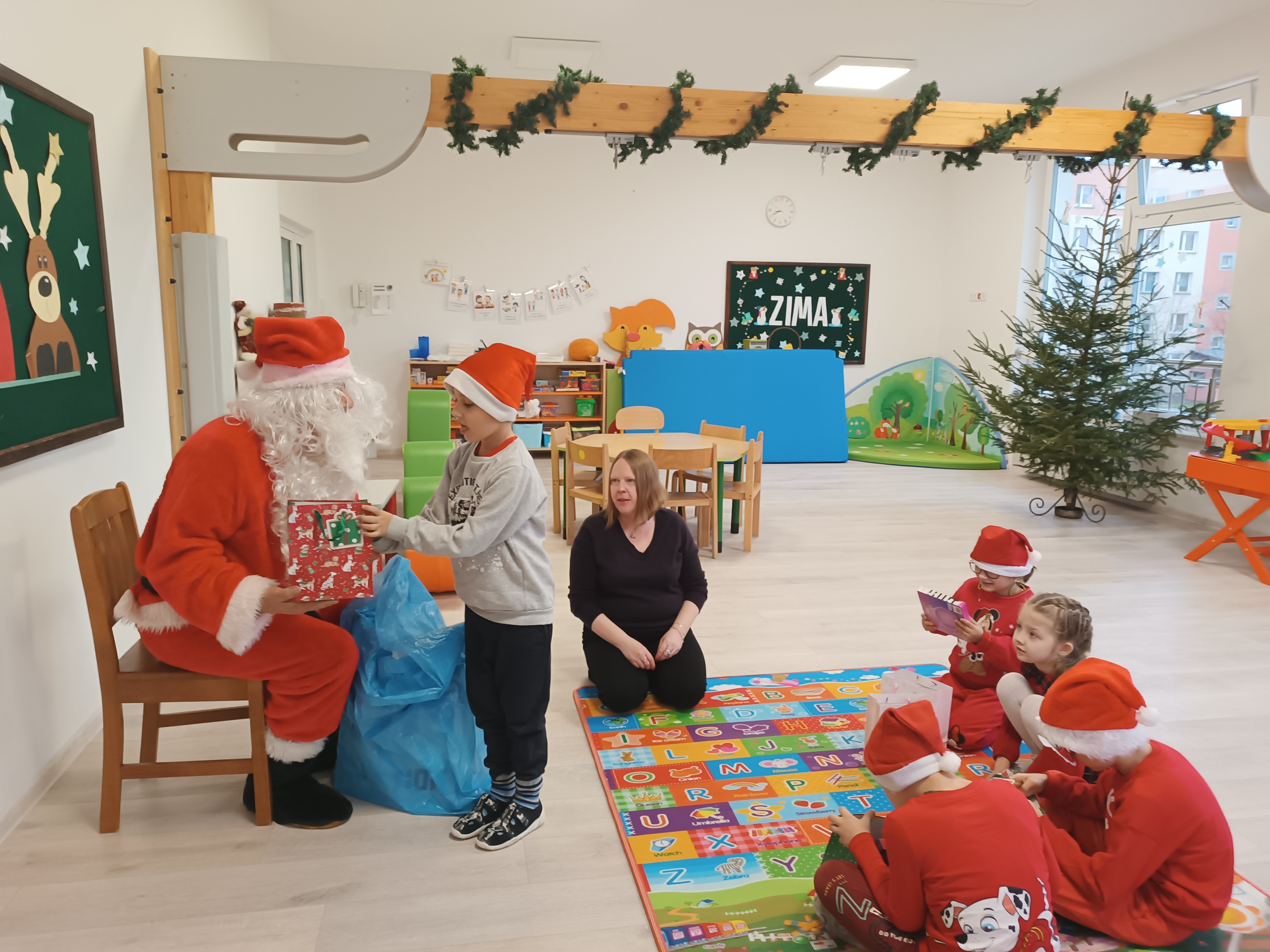 Świąteczny czas, to czas szczególny, kiedy to stajemy się wyjątkową przedszkolną rodziną. Salę ozdabiają piękne, zimowe dekoracje. Po całym przedszkolu unosił się zapach piernikowych ciasteczek. Odwiedził nas Mikołaj i każde dziecko otrzymało wyczekiwany prezent. Razem z Rodzicami wesoło bawiliśmy się w zabawy o tematyce zimowej i ubieraliśmy choinkę w kolorowe tradycyjne łańcuchy. Przegryzaliśmy pierniki i śpiewaliśmy kolędy... Nasze serca wypełniły miłość i radość!